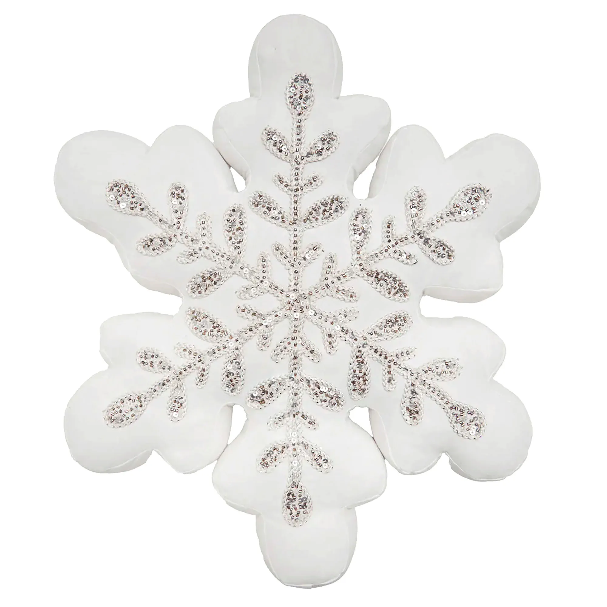 Bring a touch of winter beauty indoors with the Sparkle Snowflake Pillow. With a dimensional, shaped design, the white cotton pillow features a beaded, sequined snowflake applique that shimmers in metallic silver hues. Fill is polyester. Overall, the snowflake-shaped pillow measures 16"x18". Spot clean. Imported.