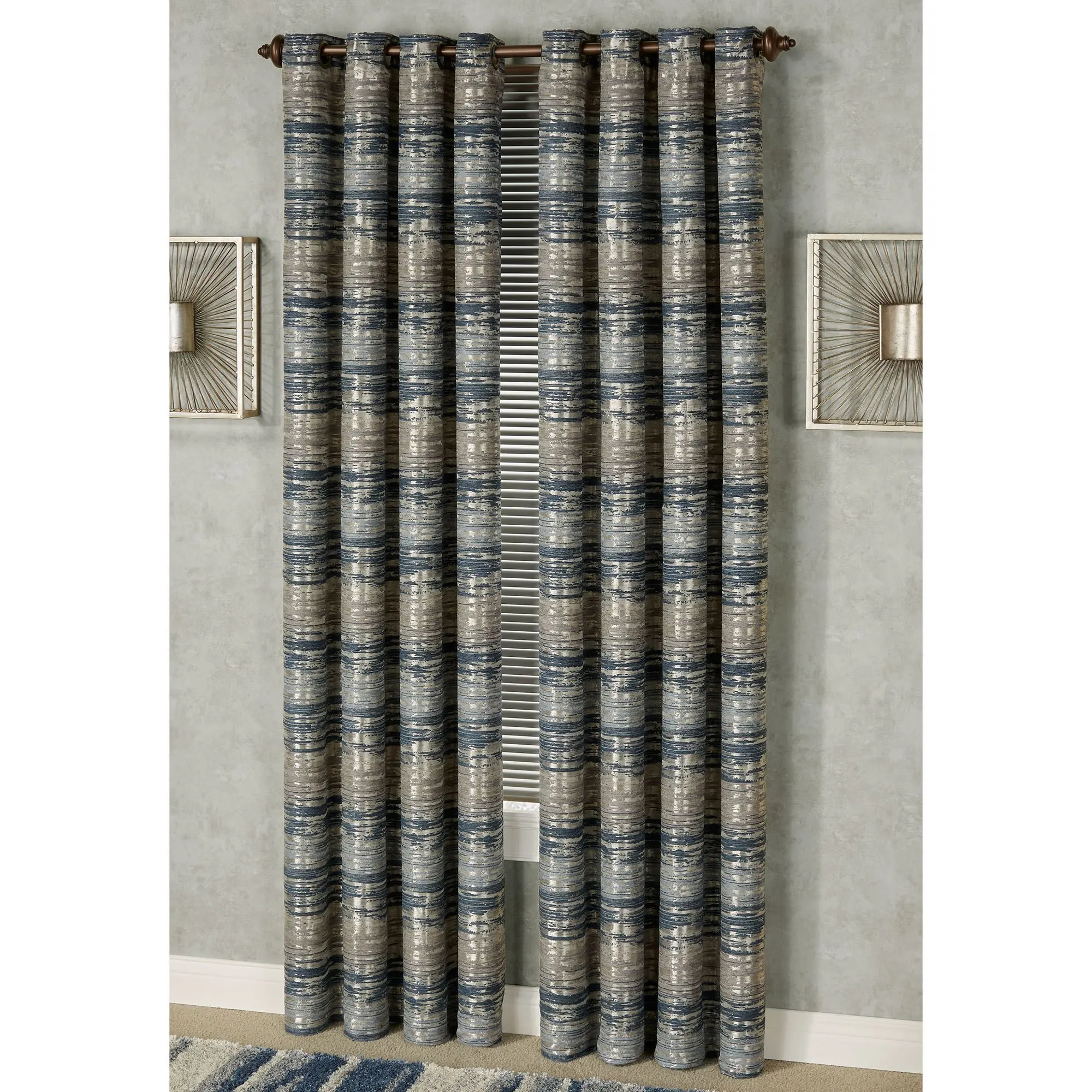 Window Treatment: Wide Grommet Curtain Pair has 1.5" dia. grommets; measures 100"Wx84"L. Grommet Valance has 1.5" dia. grommets; measures 60"Wx18"L. Layered Ascot Valance has a 3" rod pocket; measures 72"Wx24"L.