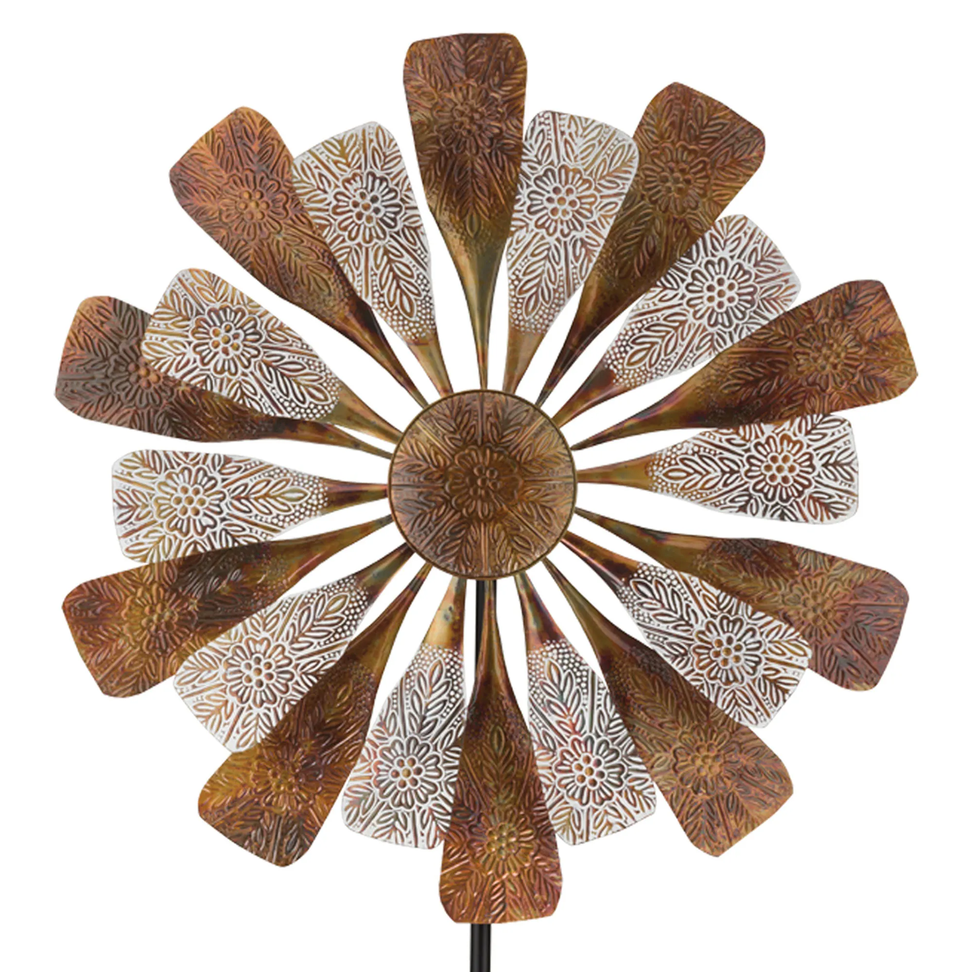 Spinning Floral Outdoor Garden Embossed Metal Wind Spinner Stake