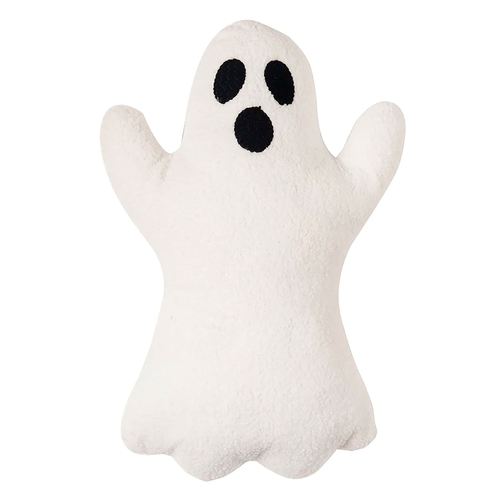 • Ghost-shaped white sherpa pillow