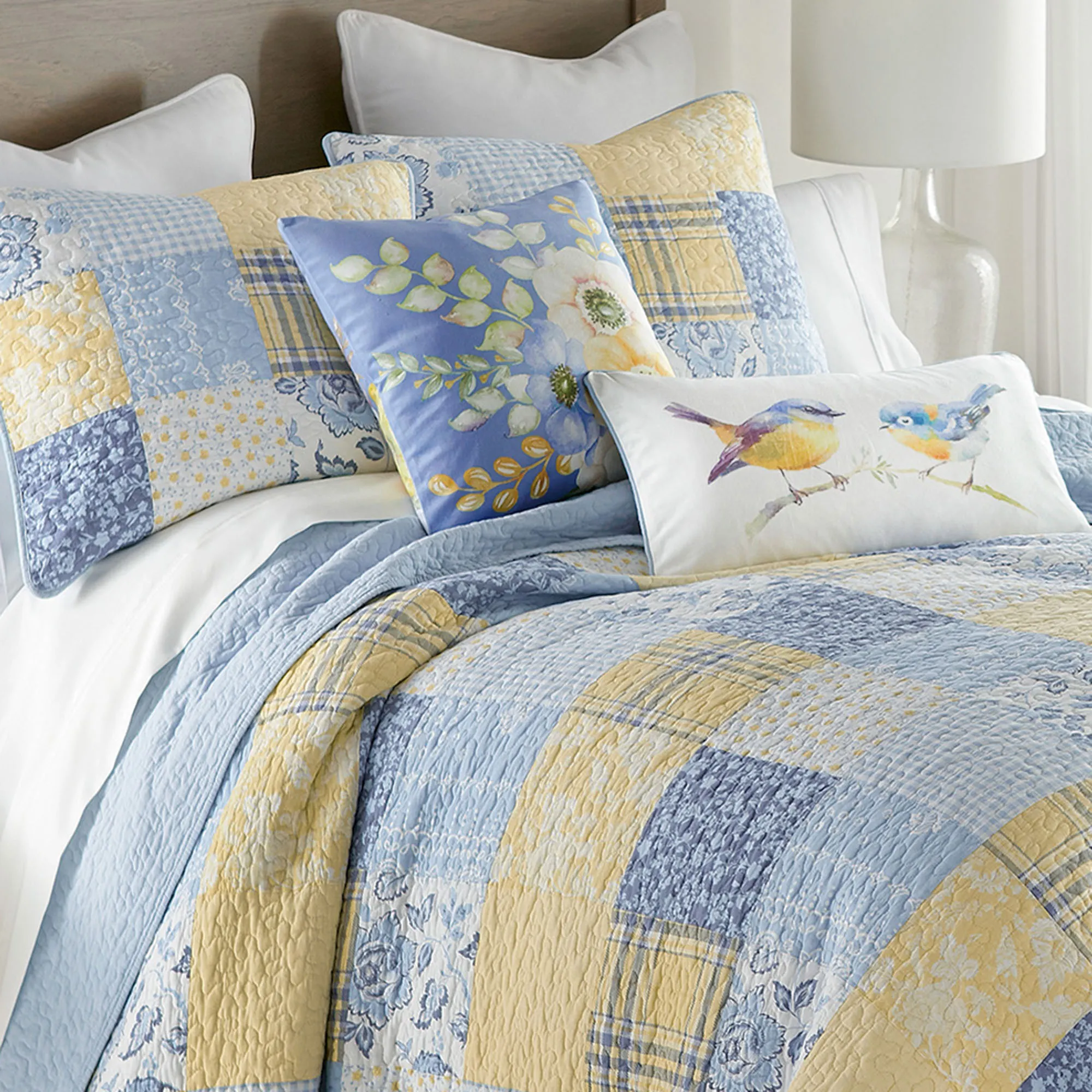Brighten any day with charming Spring Flowers. This pre-washed and preshrunk cotton ensemble, from Your Lifestyle(R) by Donna Sharp(R), features pieced patchwork blocks with mini floral and plaid prints. Colors include shades of blue, butter, banana, denim, pale country blue, and honey gold.