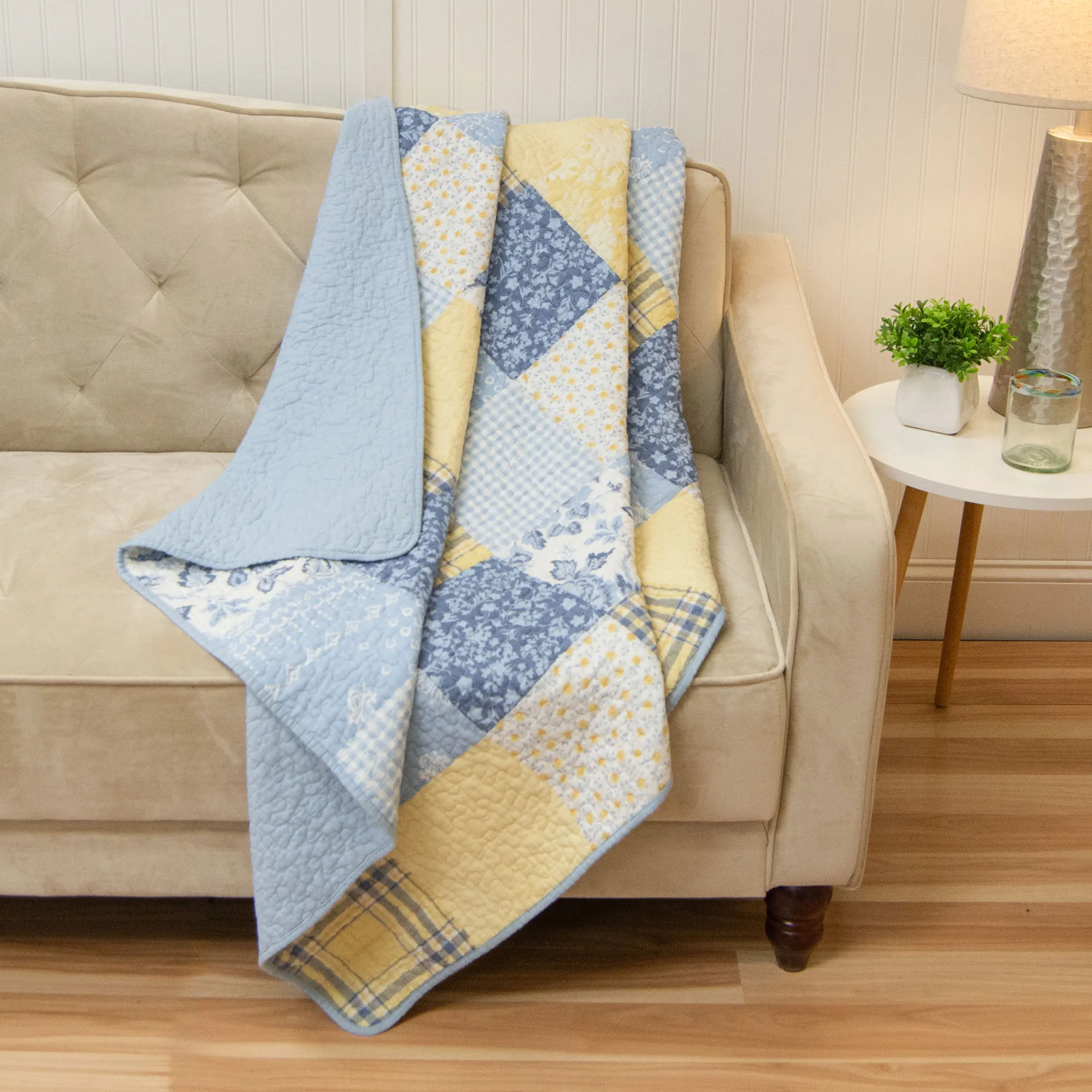 Spring Flowers Patchwork Throw Blanket Blue 50 x 60