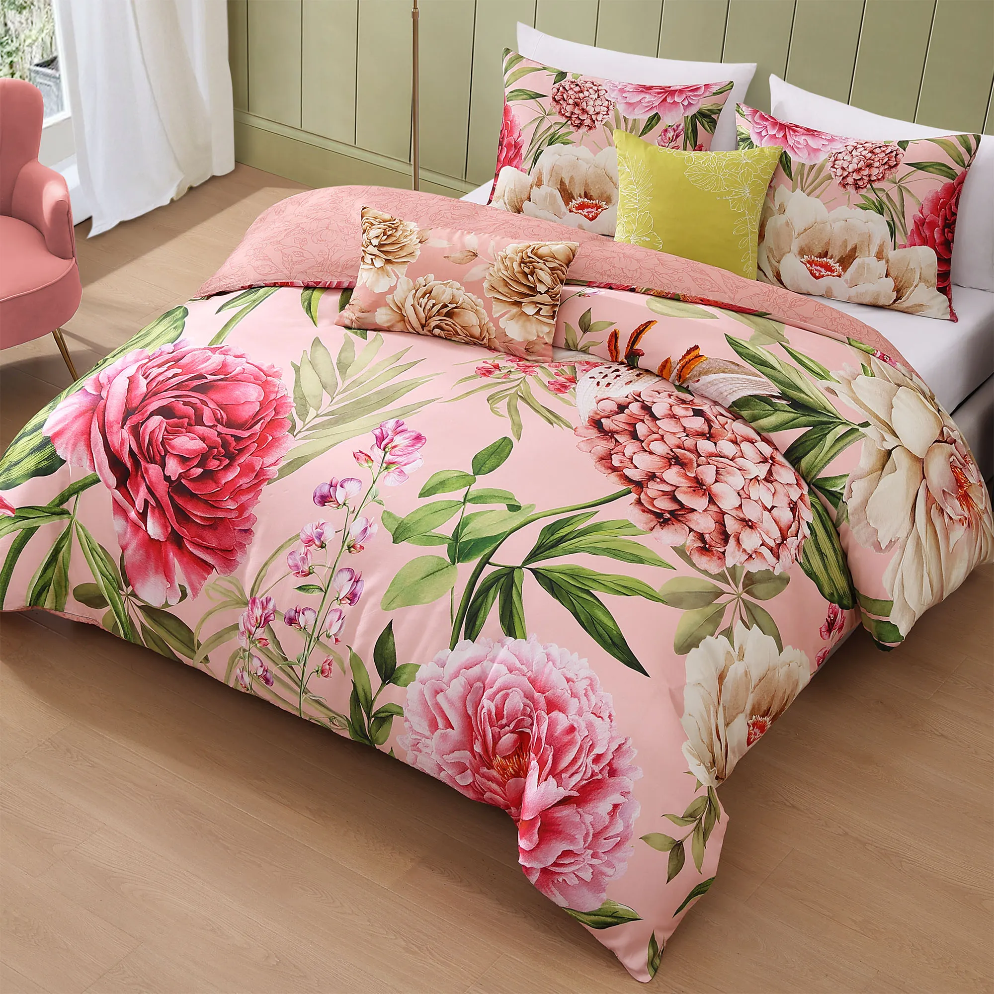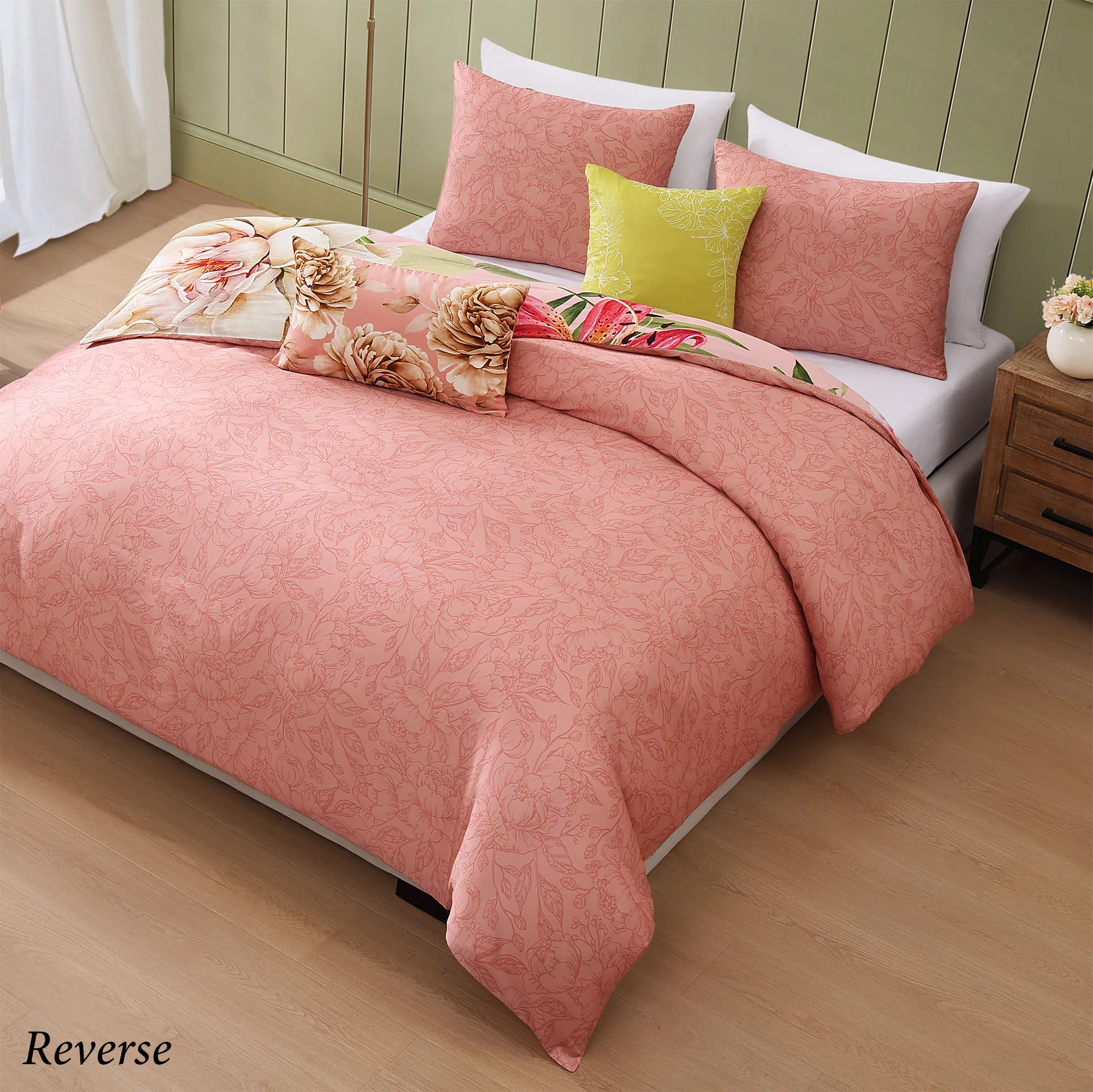 Spring Forever Reversible Pink Flower Blossom 5 pc Comforter Bed Set