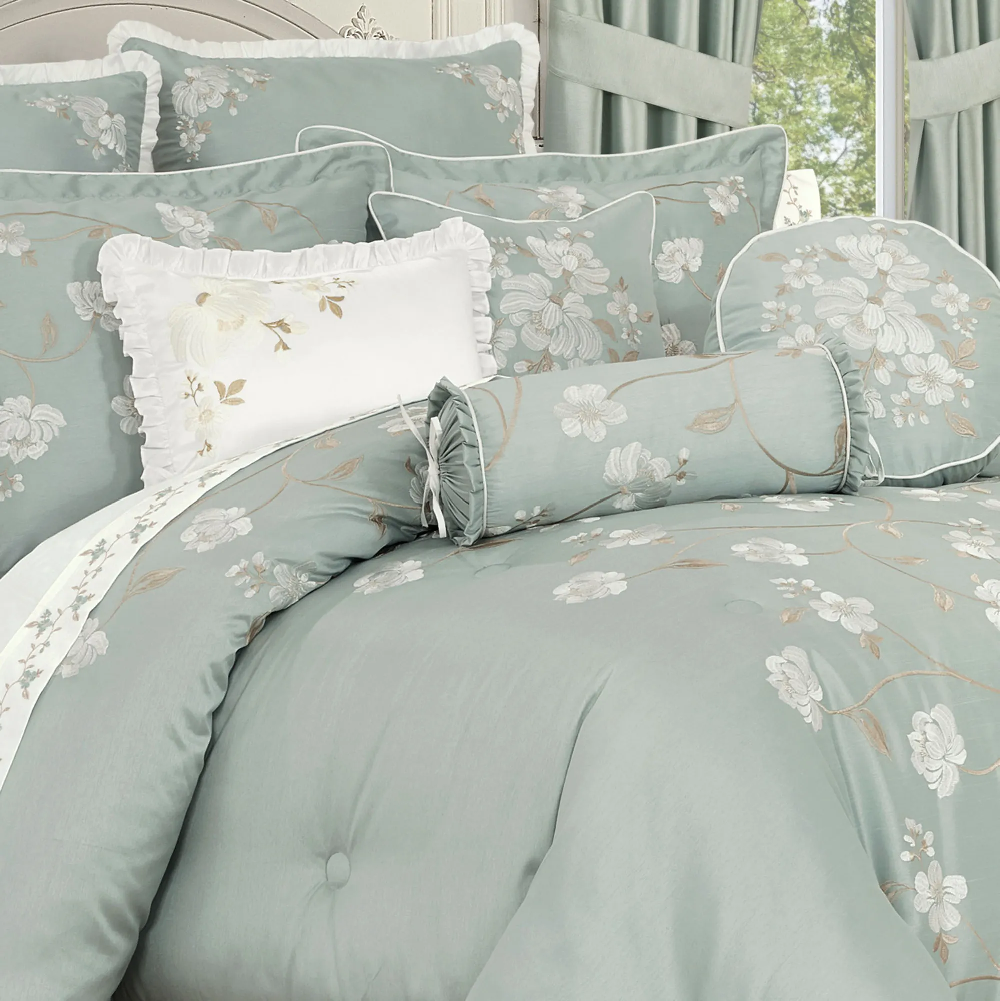 Spring Garden Aqua Mist Embroidered Floral Comforter Bedding by Royal Court