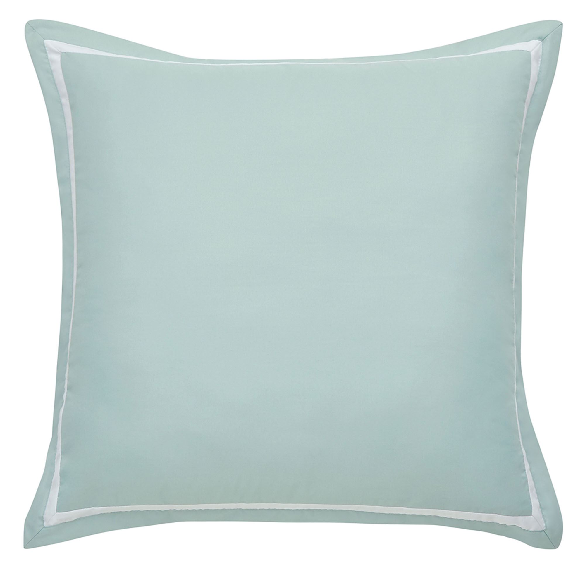 Flanged European Sham is spa with a white frame; zipper closure.