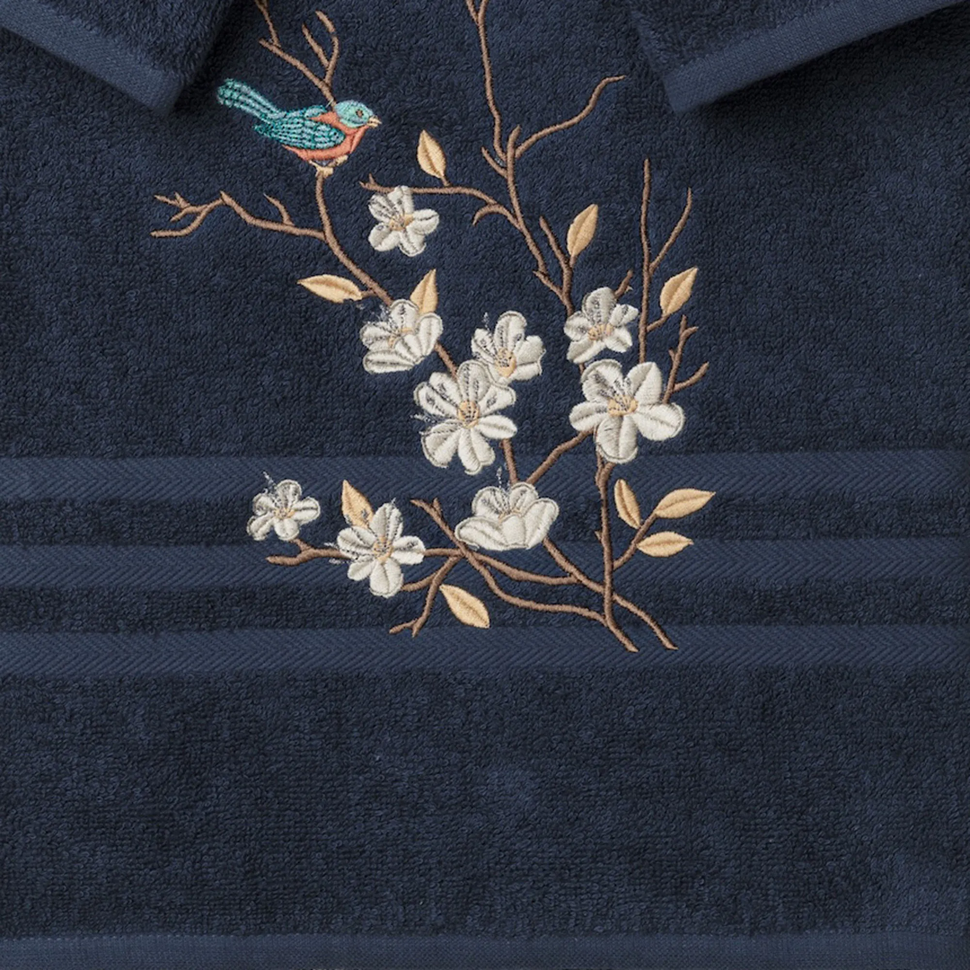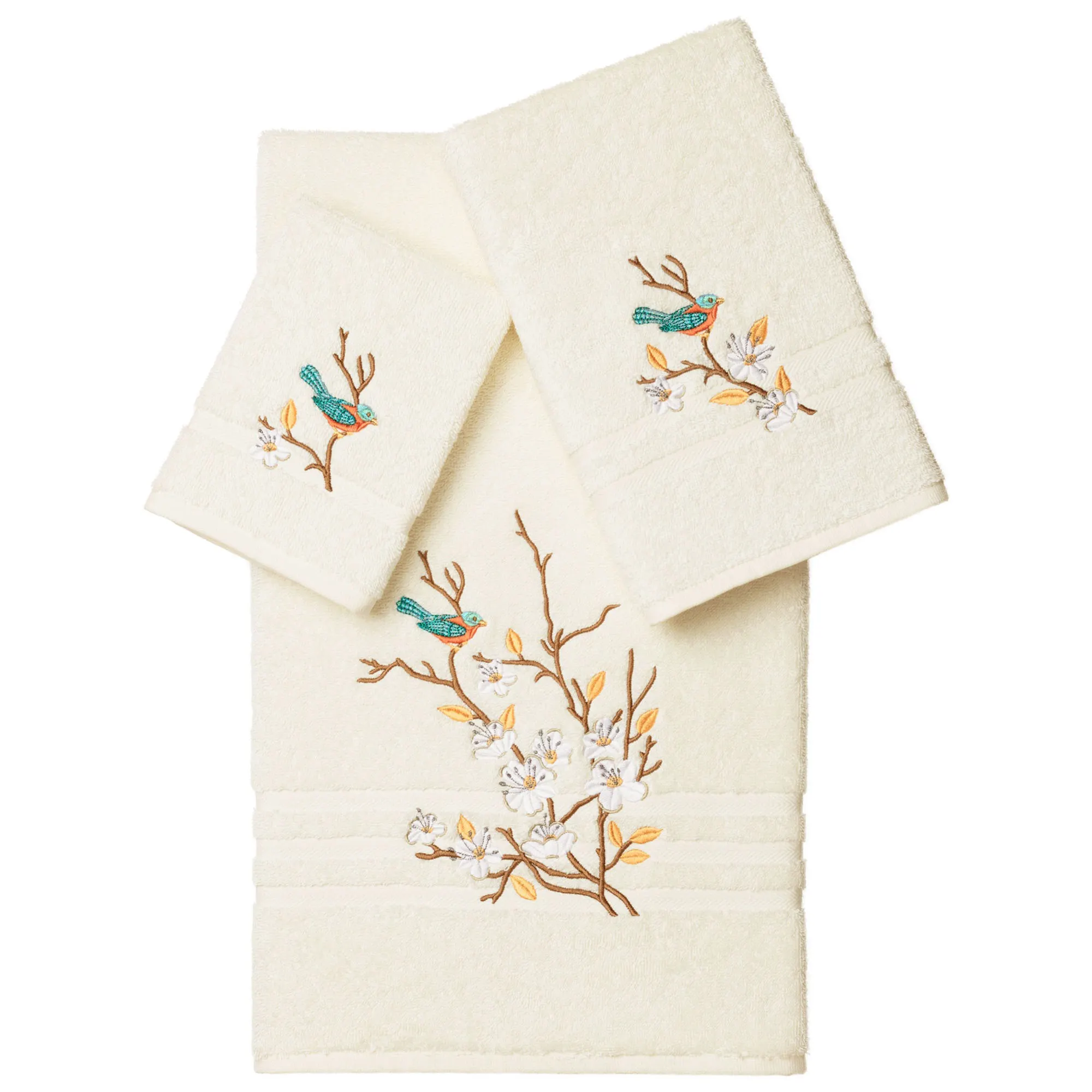 500 GSM Spring Time Embroidered Bird and Cherry Blossoms Turkish Cotton Bath Towel Set