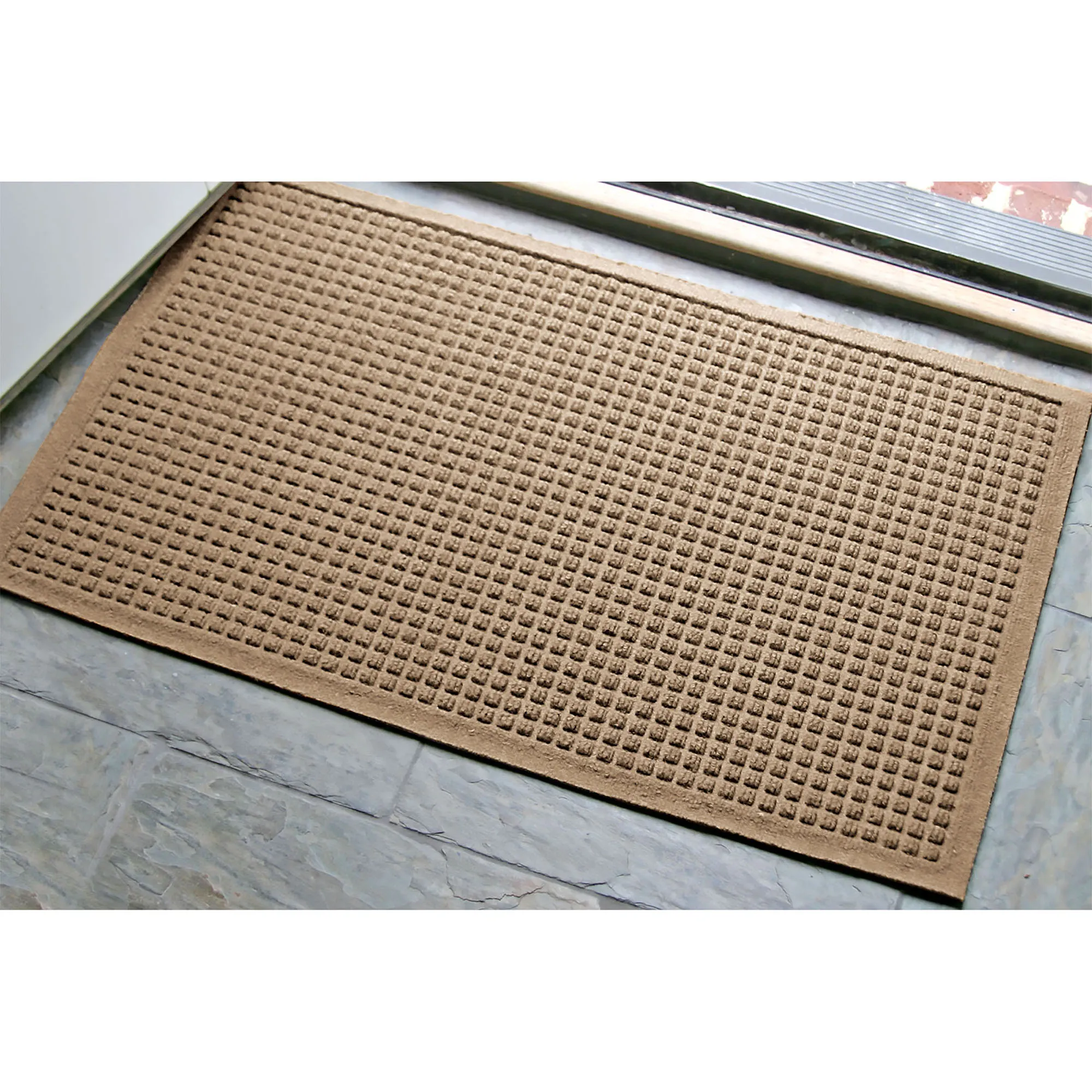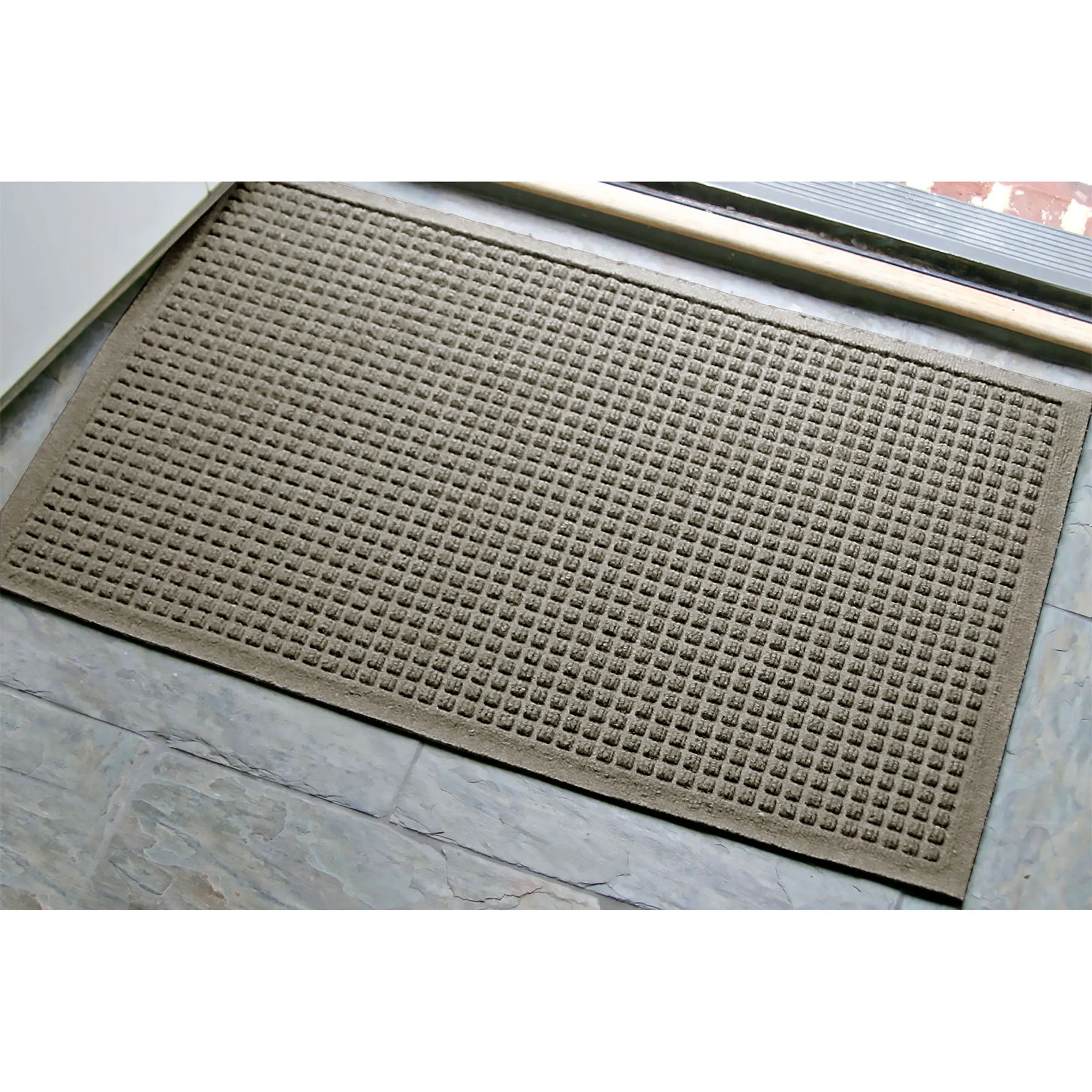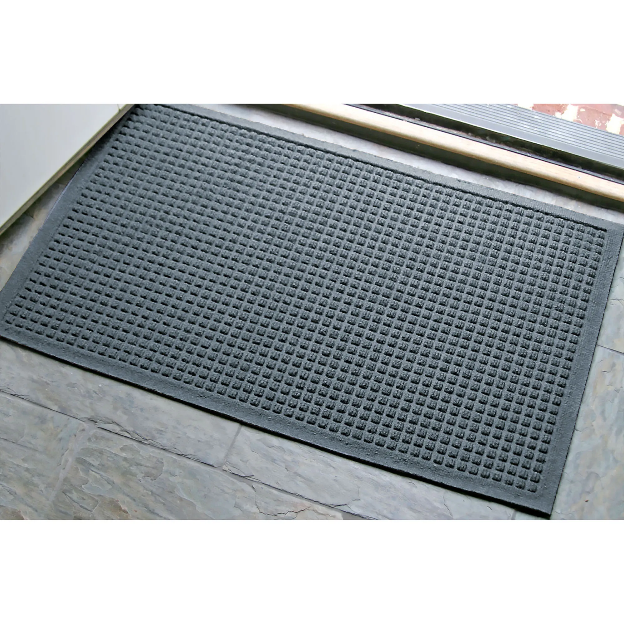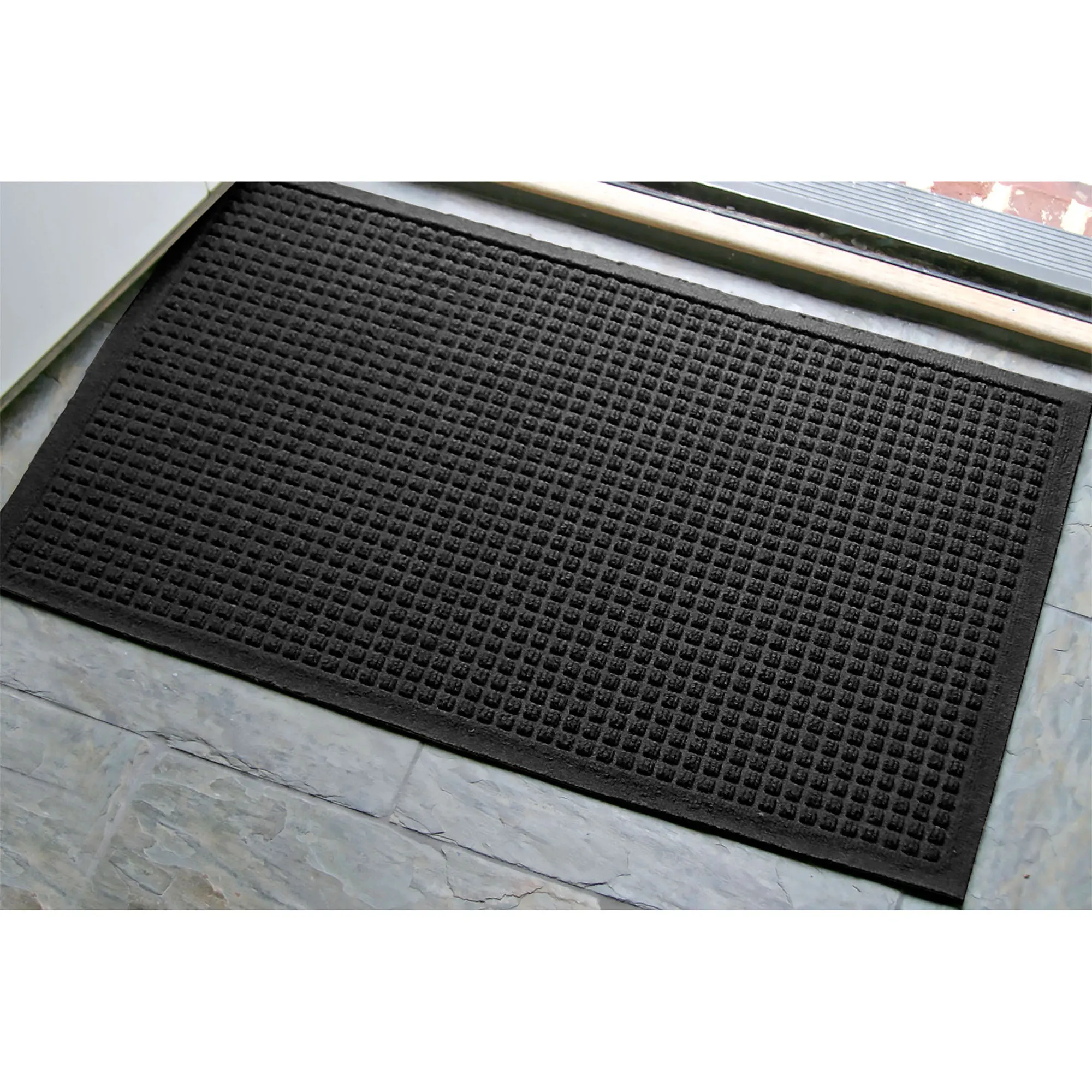 The Squares Indoor/Outdoor Doormat adds classic style and convenience to your entryway with simplistic square motifs. The antistatic PET polyester fiber floor accent has a nonskid SBR rubber backing that is slip-resistant and certified by the National Floor Safety Institute. The WaterHog(R) exclusive Water Dam border keeps dirt and water on the mat and not your floor. The premium-grade mat is mildew-, mold-, and rot-resistant. Specify Dark Green, Burgundy, Charcoal, Dark Brown, Gray, Khaki, Navy, or Slate Blue. Doormat is 35"x23". Indoor use or outdoor use year round. Hose off to clean.