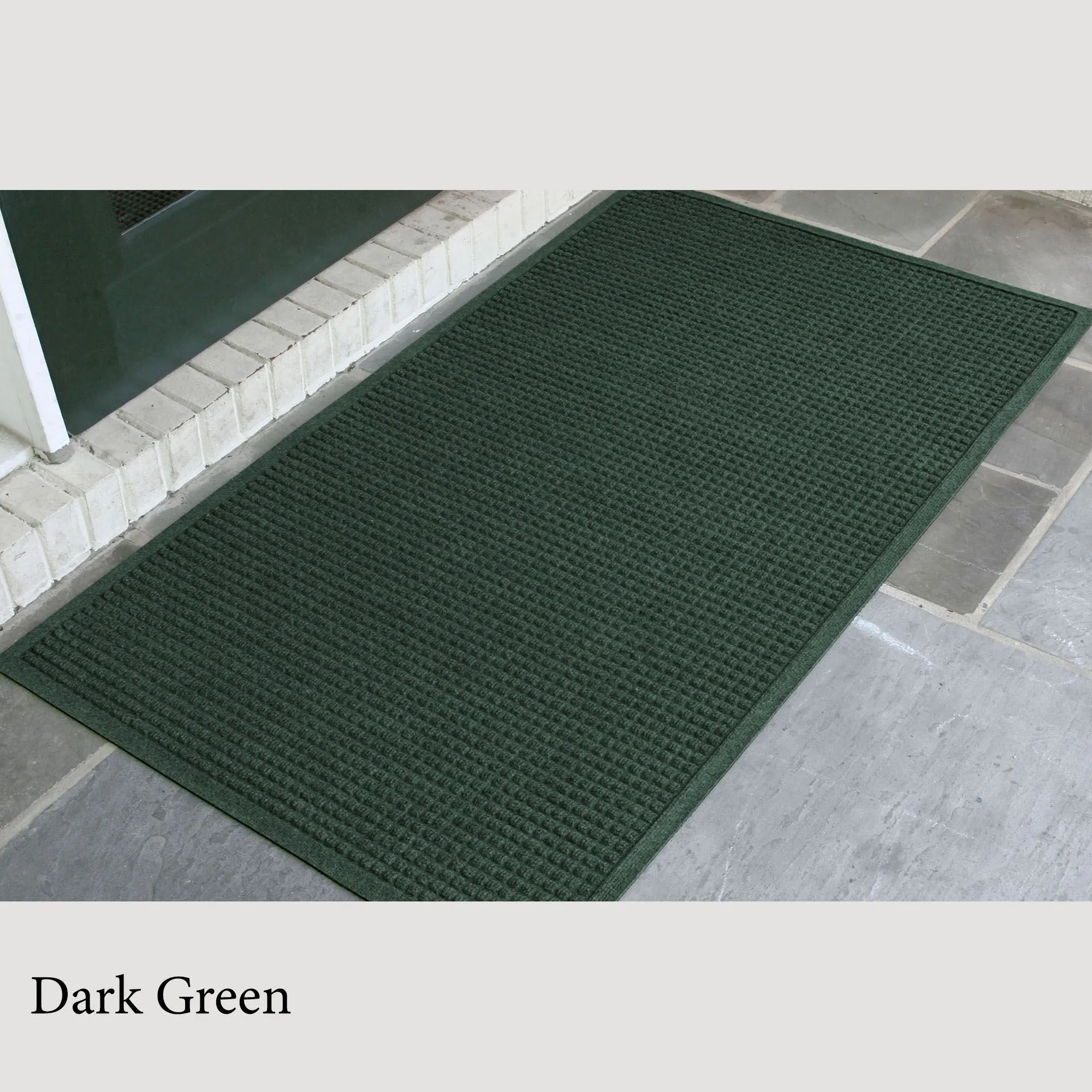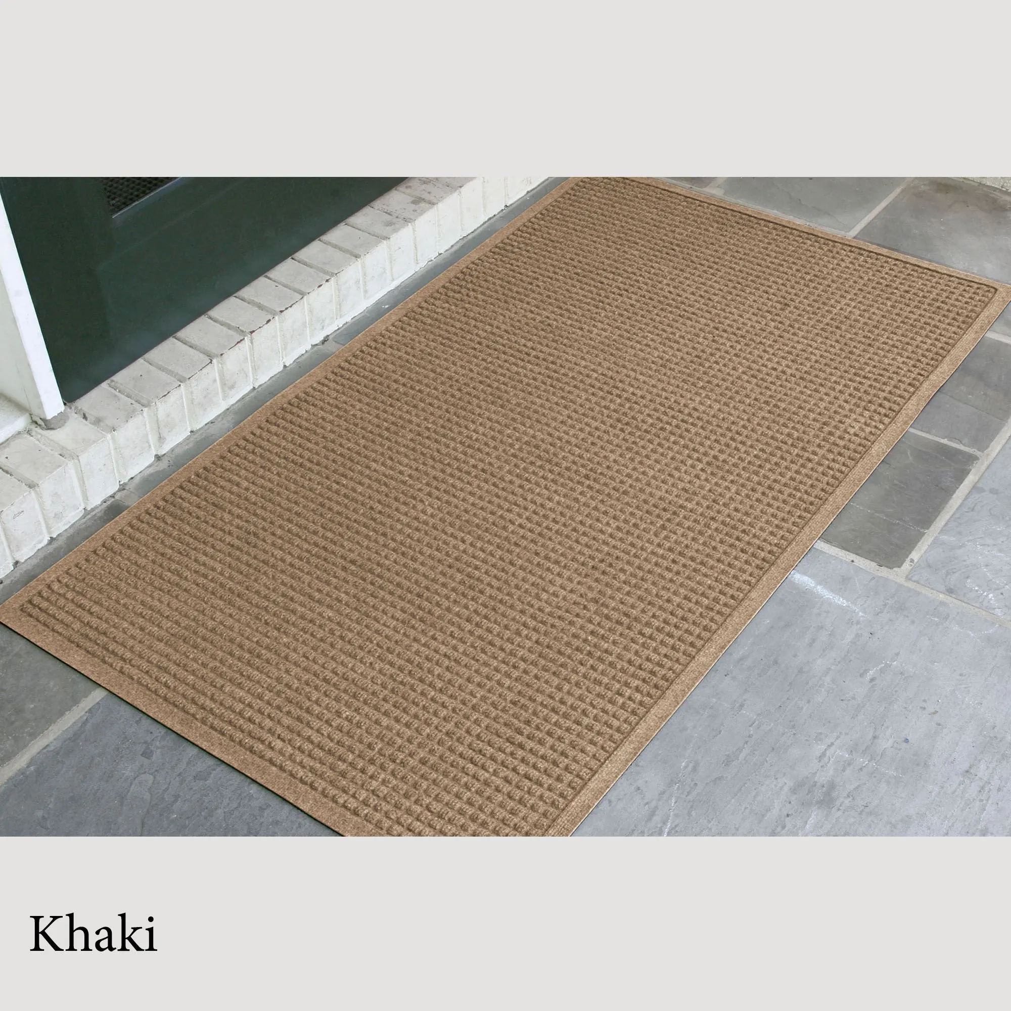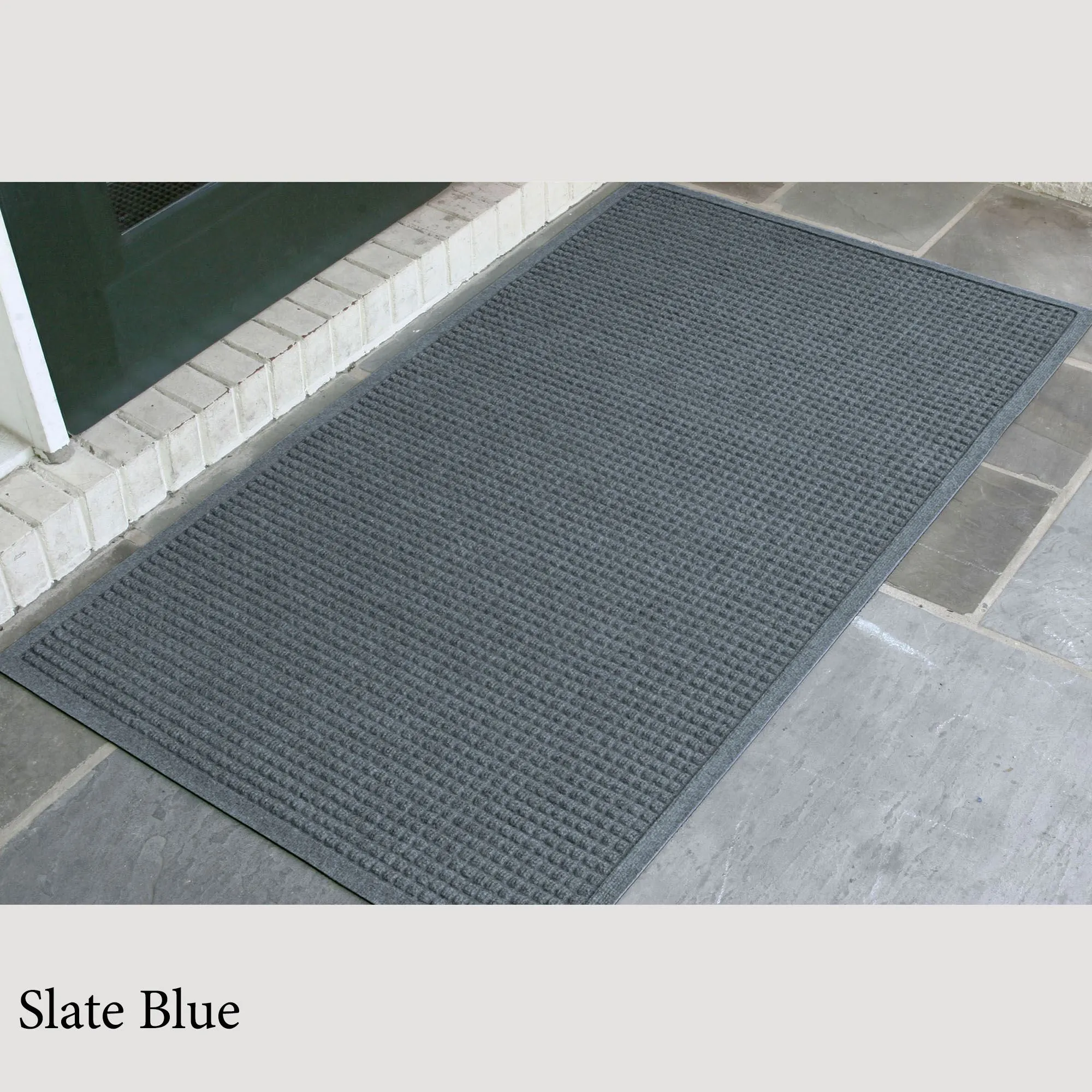 The Squares Indoor/Outdoor Estates Doormat adds classic style and convenience to your entryway with simplistic square motifs. The antistatic PET polyester fiber floor accent has a nonskid SBR rubber backing that is slip-resistant and certified by the National Floor Safety Institute. The WaterHog(R) exclusive Water Dam border keeps dirt and water on the mat and not your floor. The premium-grade mat is mildew-, mold-, and rot-resistant. Specify Charcoal, Burgundy, Dark Brown, Dark Green, Gray, Khaki, Navy, or Slate Blue. Estates doormat is 60"x36". Indoor use or outdoor use year round. Hose off to clean.