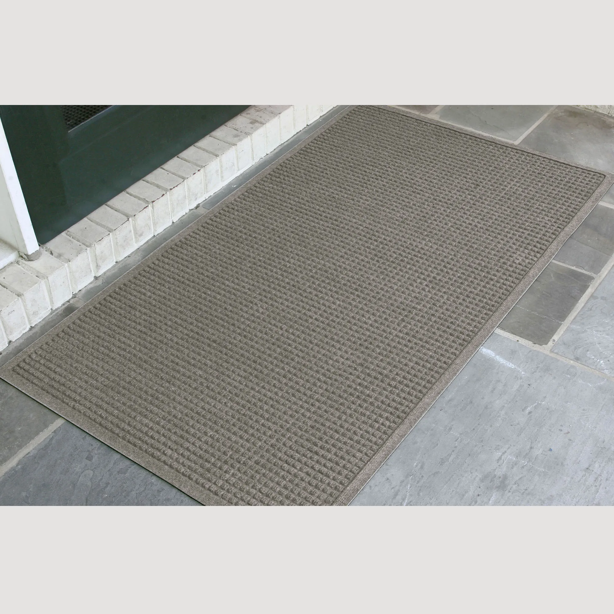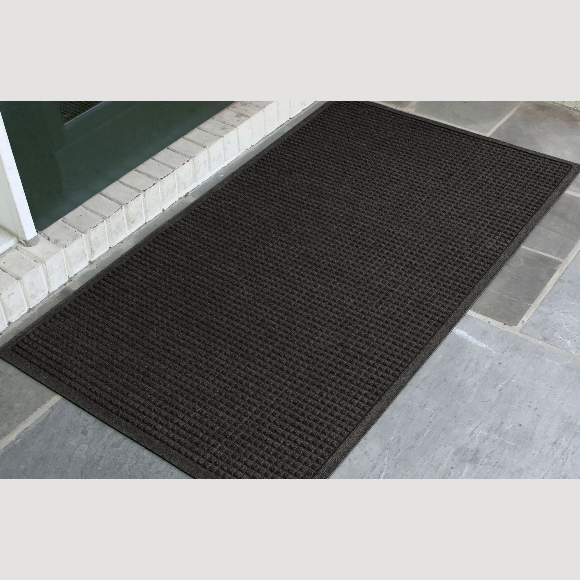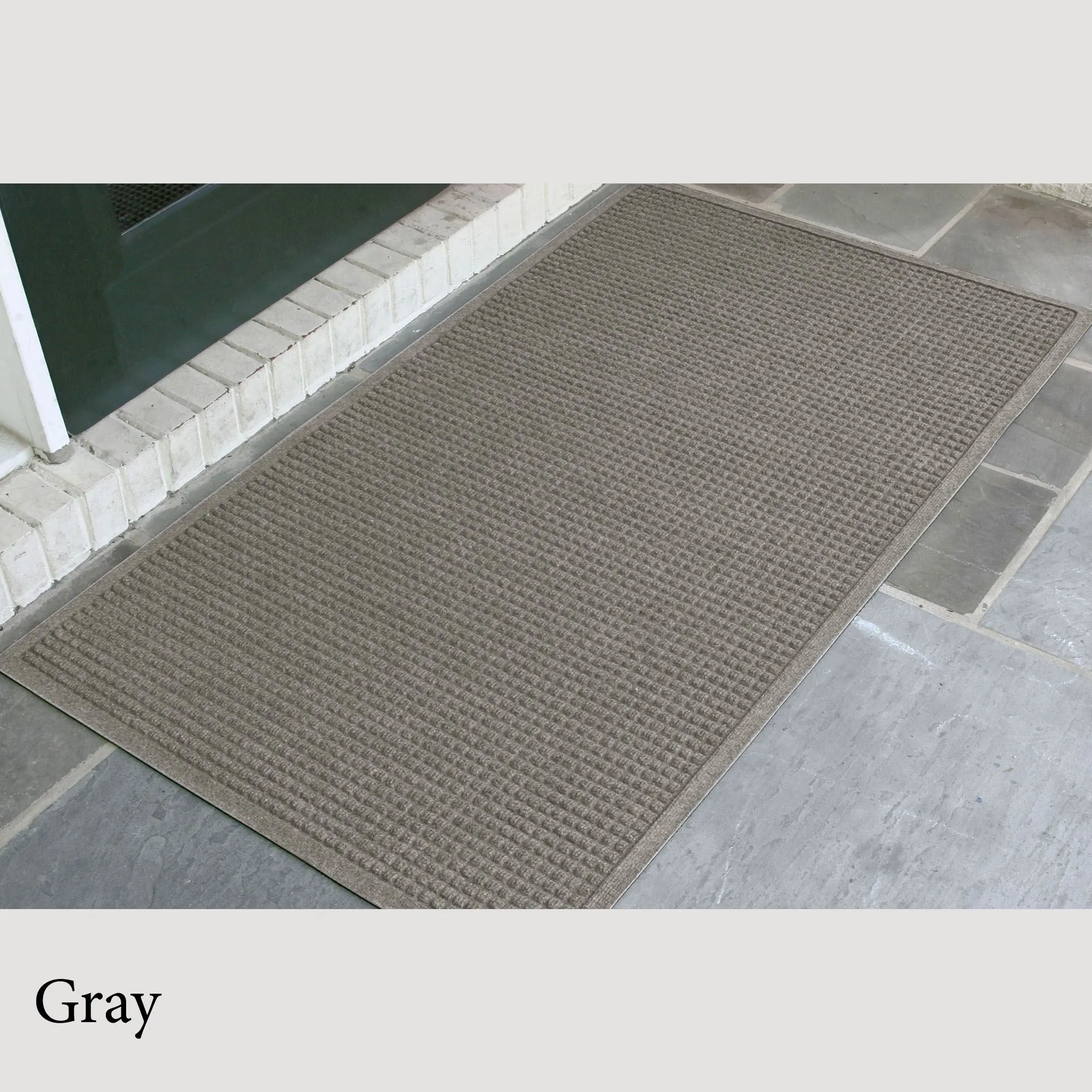 The Squares Indoor/Outdoor Estates Doormat adds classic style and convenience to your entryway with simplistic square motifs. The antistatic PET polyester fiber floor accent has a nonskid SBR rubber backing that is slip-resistant and certified by the National Floor Safety Institute. The WaterHog(R) exclusive Water Dam border keeps dirt and water on the mat and not your floor. The premium-grade mat is mildew-, mold-, and rot-resistant. Specify Charcoal, Burgundy, Dark Brown, Dark Green, Gray, Khaki, Navy, or Slate Blue. Estates doormat is 60"x36". Indoor use or outdoor use year round. Hose off to clean.