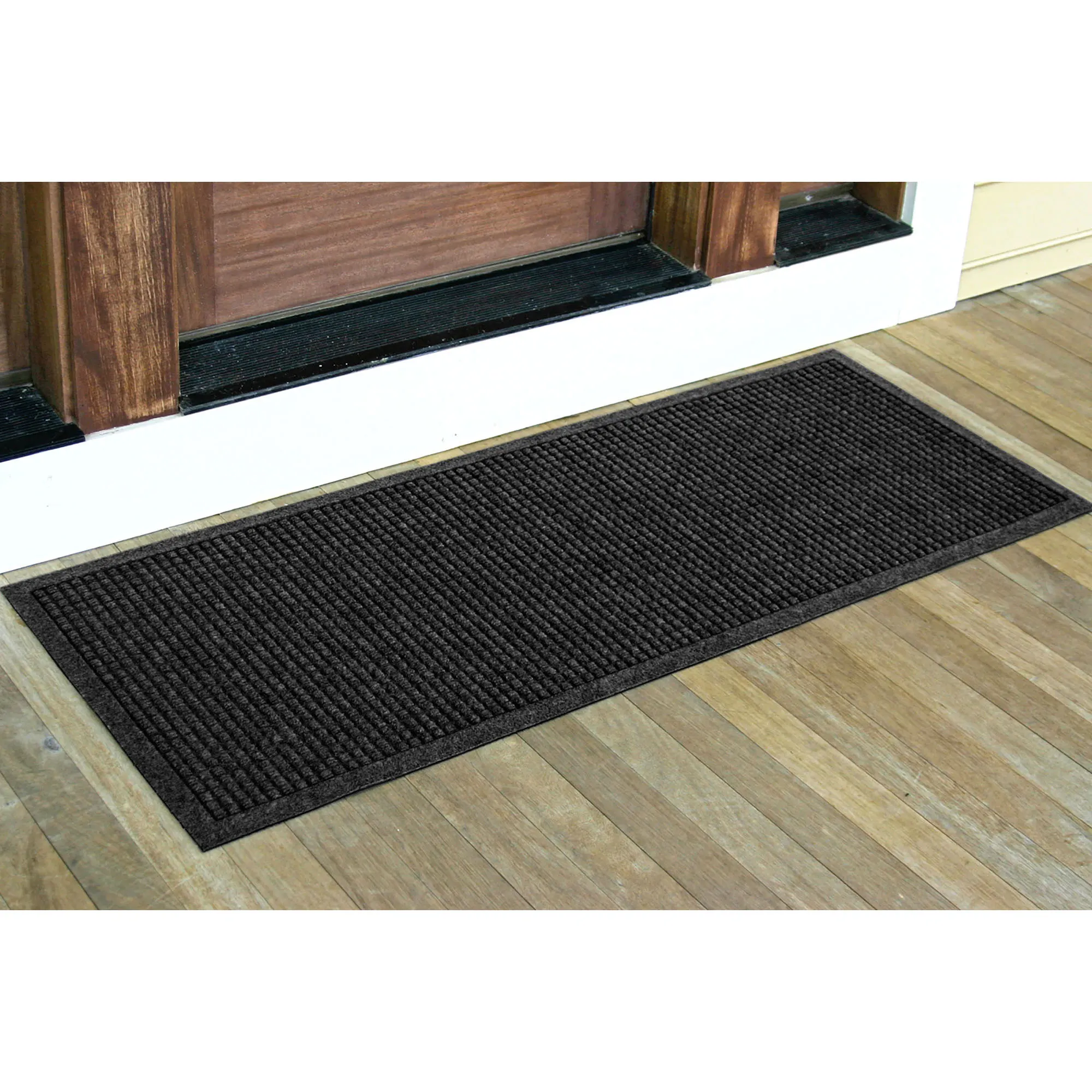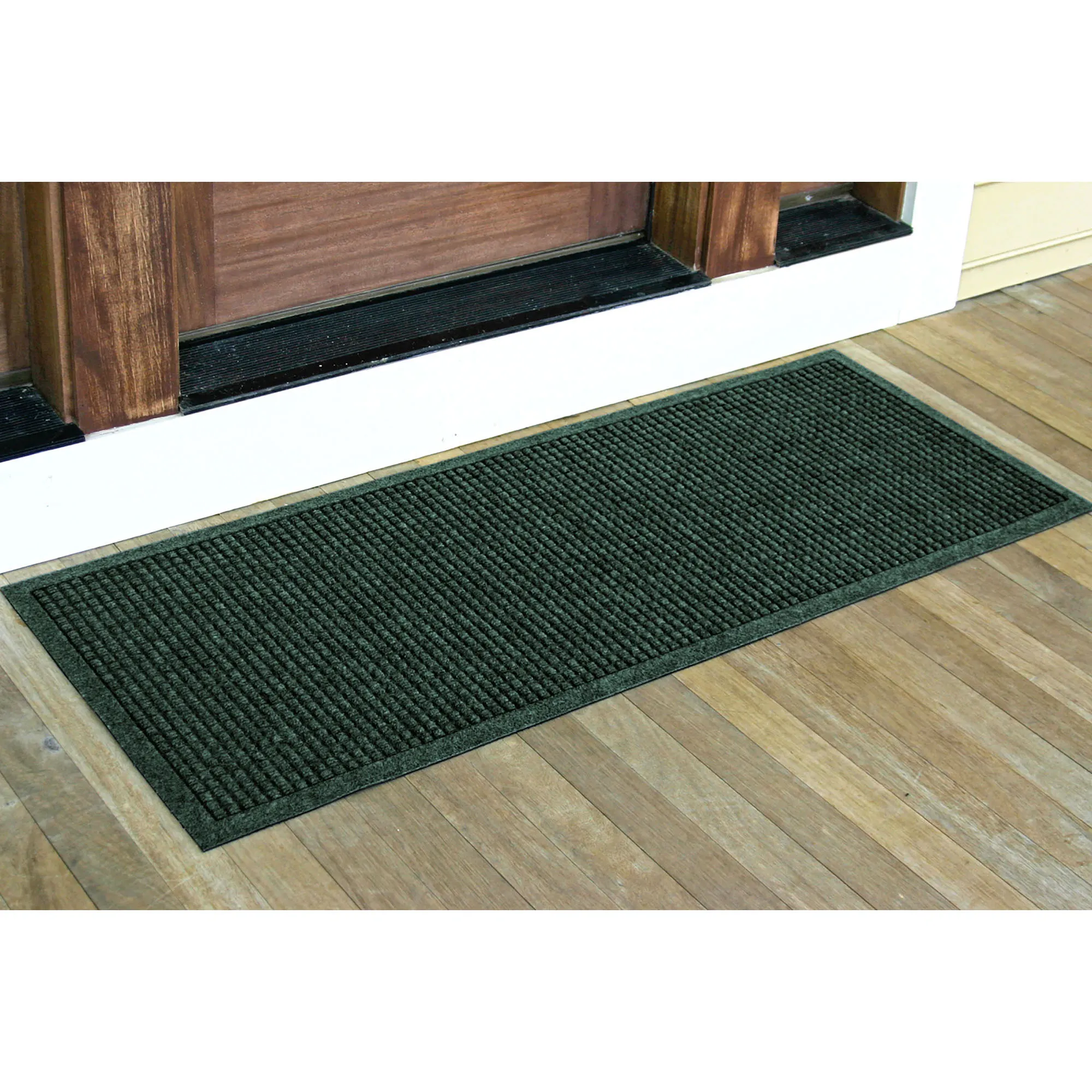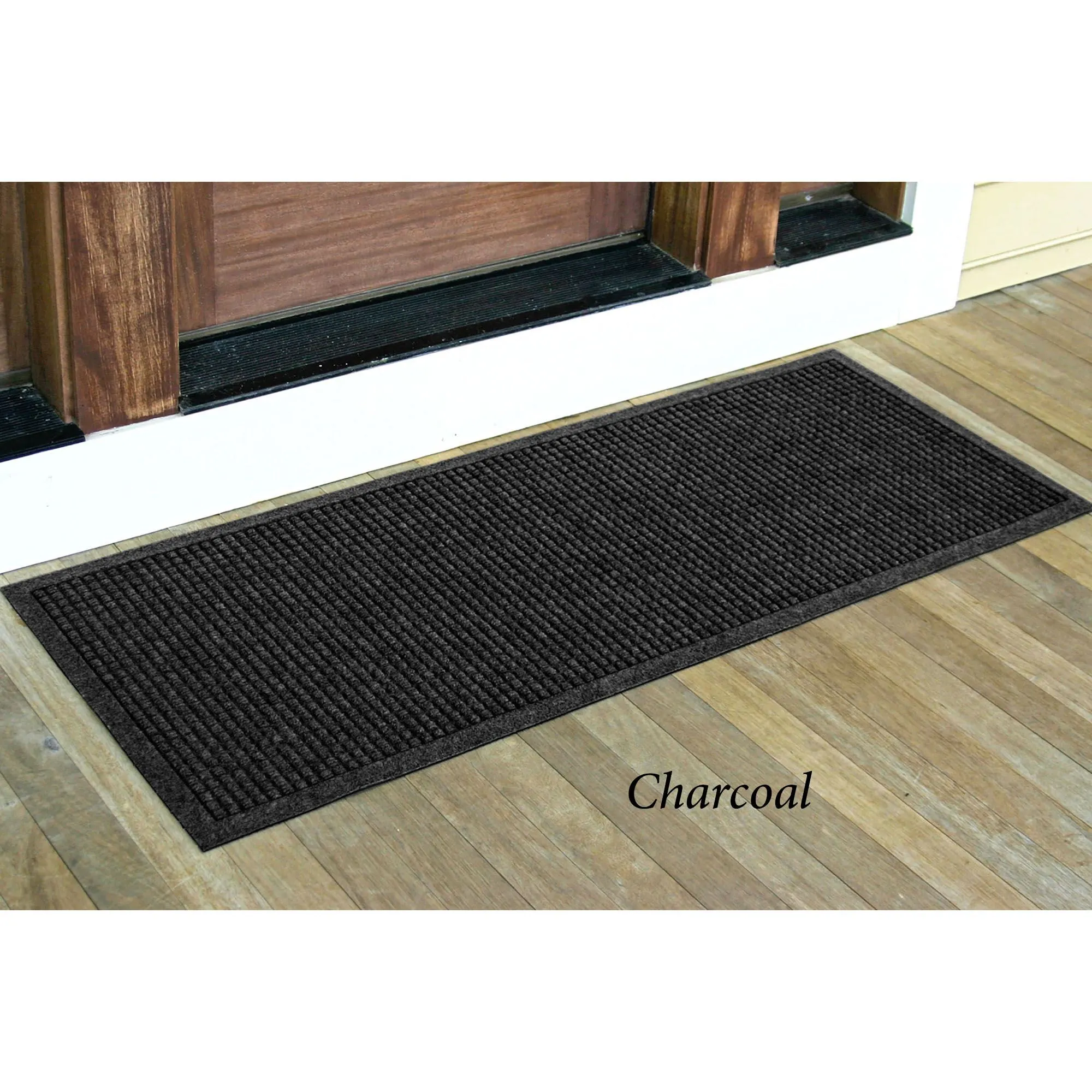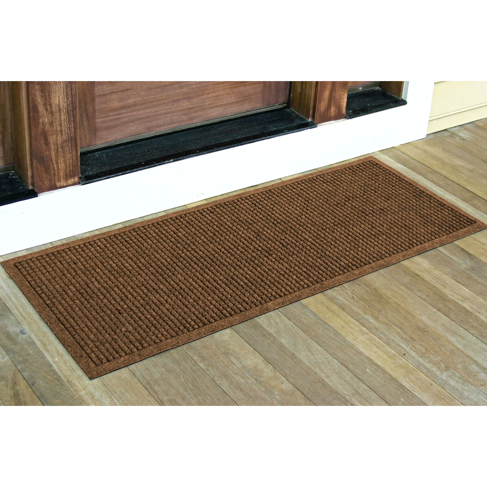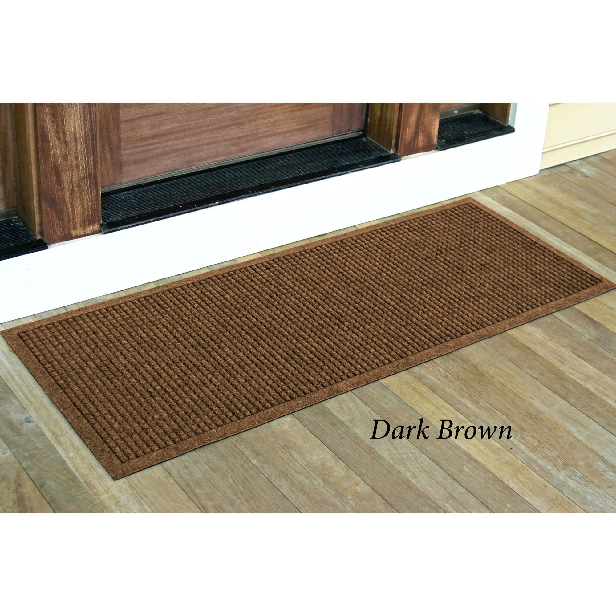 The Squares Indoor/Outdoor Runner Mat adds classic style and convenience to your entryway with simplistic square motifs. The antistatic PET polyester fiber floor accent has a nonskid SBR rubber backing that is slip-resistant and certified by the National Floor Safety Institute. The WaterHog(R) exclusive Water Dam border keeps dirt and water on the mat and not your floor. The premium-grade mat is mildew-, mold-, and rot-resistant. Specify Khaki, Burgundy, Charcoal, Dark Brown, Dark Green, Gray, Navy, or Slate Blue. Runner is 60"x22". Indoor use or outdoor use year round. Hose off to clean.