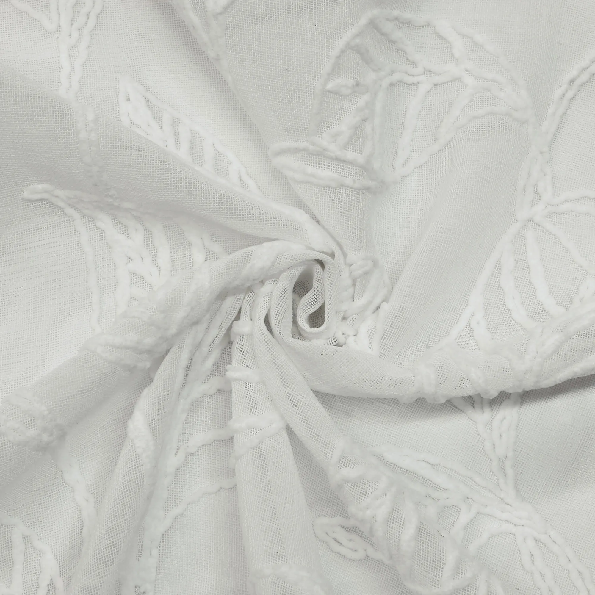 Delicate embroidered leaves add a beautiful touch to the Stellata Curtain Panel. In a tone-on-tone off-white design, the window panel features a sheer polyester design with richly textured chenille foliage. Sold individually, each 52"Wx84"L window panel hangs via 1.5" dia. brushed silver metal grommets. Machine washable. Imported.