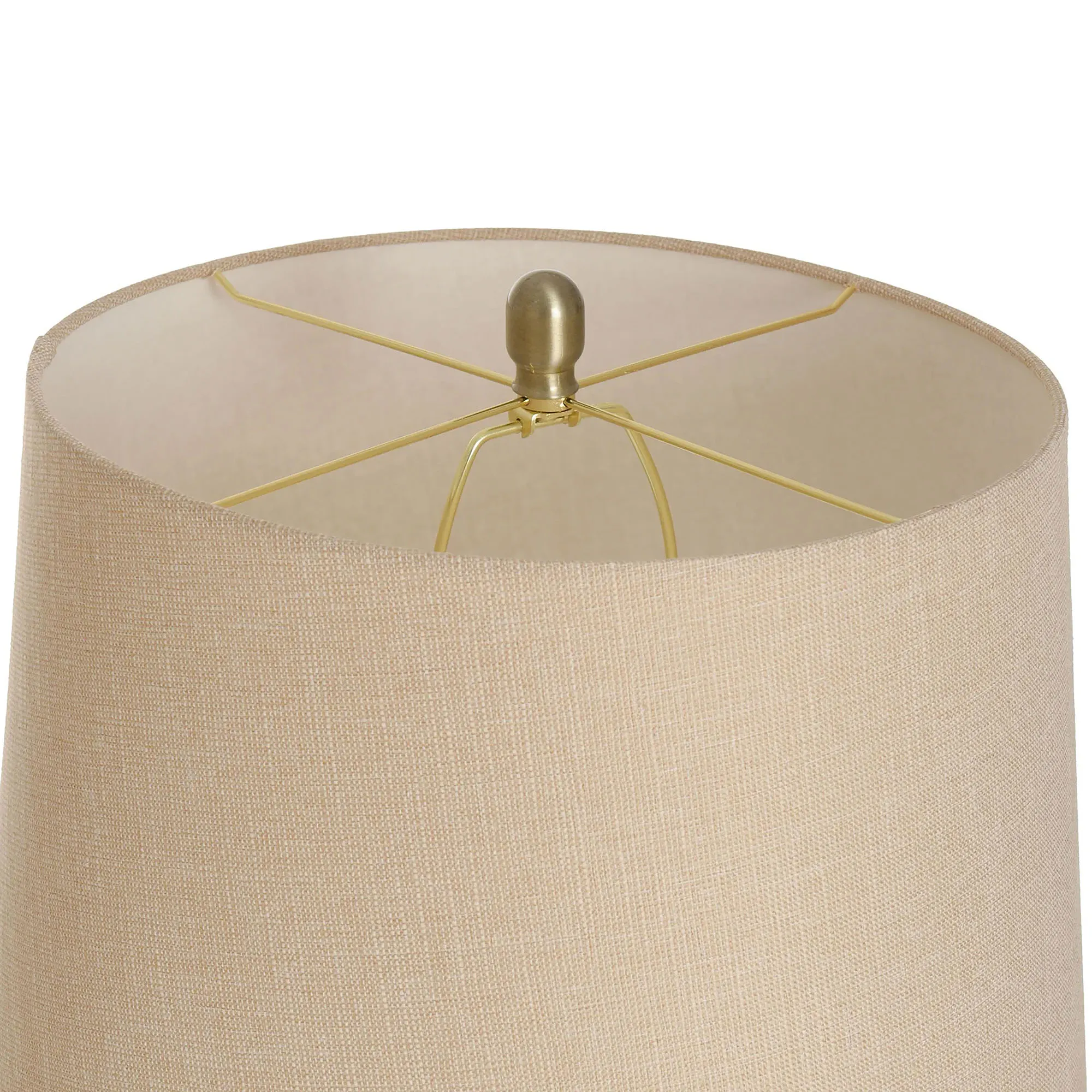 The Stockton Table Lamp is steel, glass, and cotton/polyester.
