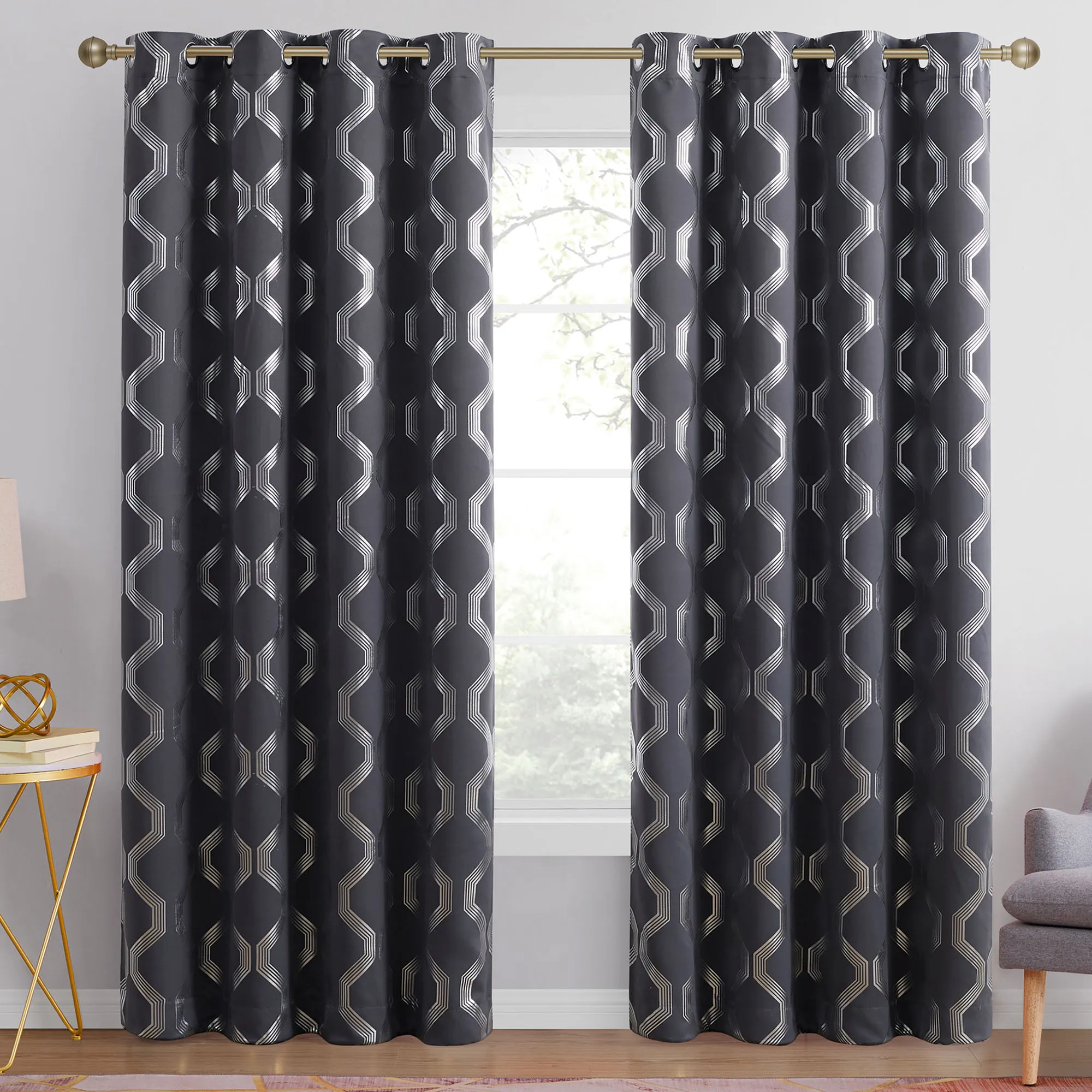 Sullivan Geometric Room Darkening Wide Grommet Curtains