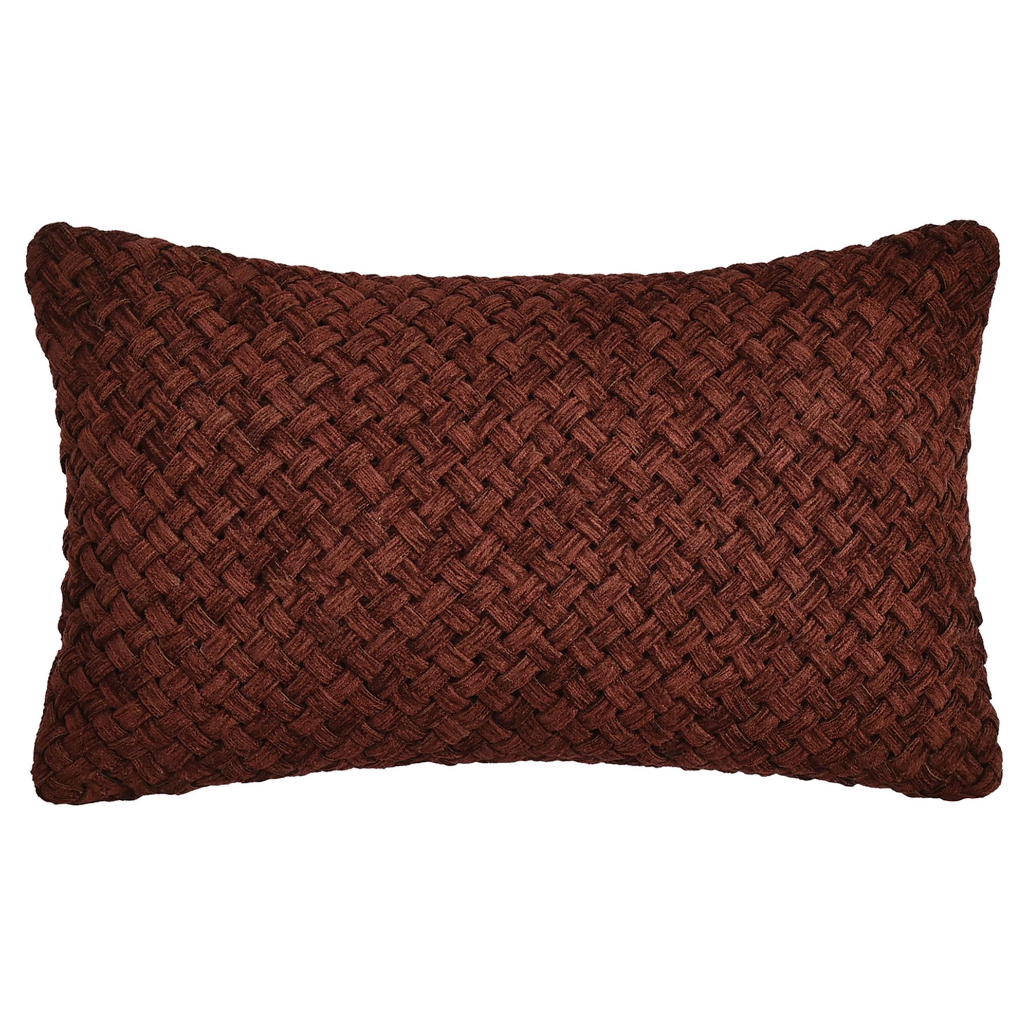 Pillows: Spot clean. Flanged 18" Square is vegan leather with a stitched crisscross design and mini-flange edges. The tailored Embroidered 18" Square is vegan leather with an embroidered contemporary wavy stripe design. Jumbo Rectangle is vegan leather with a striped center band, a 2" side gusset, and piped edges. The handmade Accent Rectangle has an intricate braided pleat design in burnt sienna with tailored edges. Piped 20" Square has stripes.
