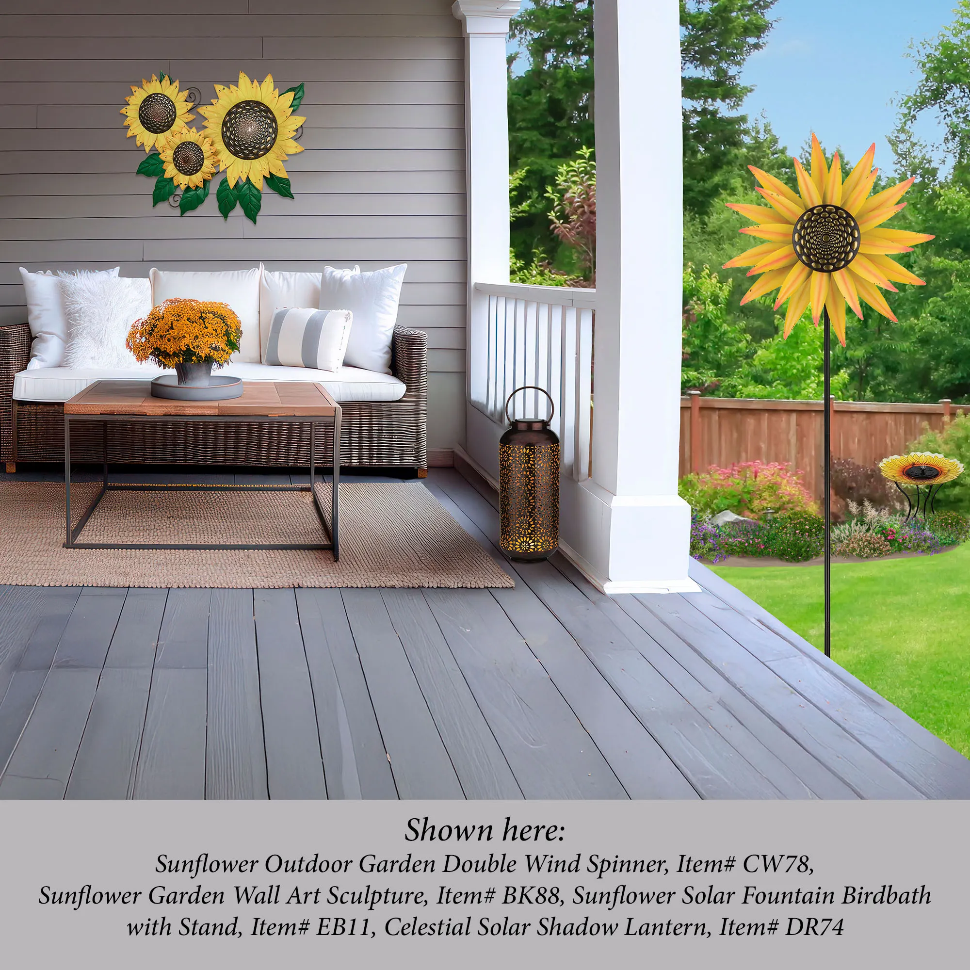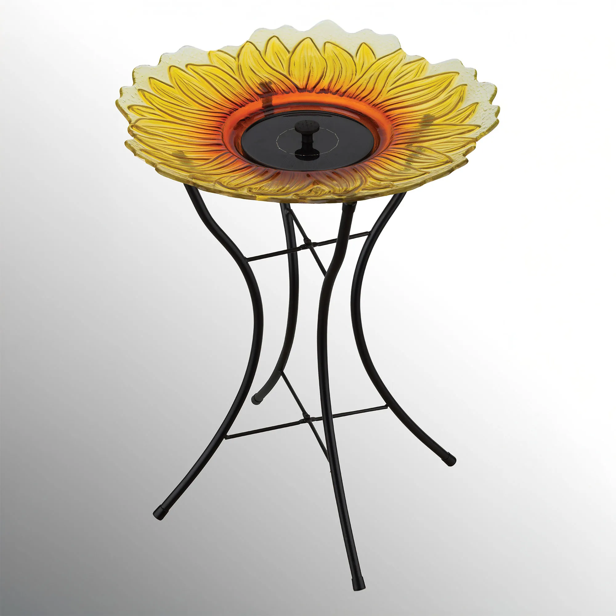 Yellow Sunflower Outdoor Solar Powered Fountain Birdbath Art Glass Bowl with Metal Stand