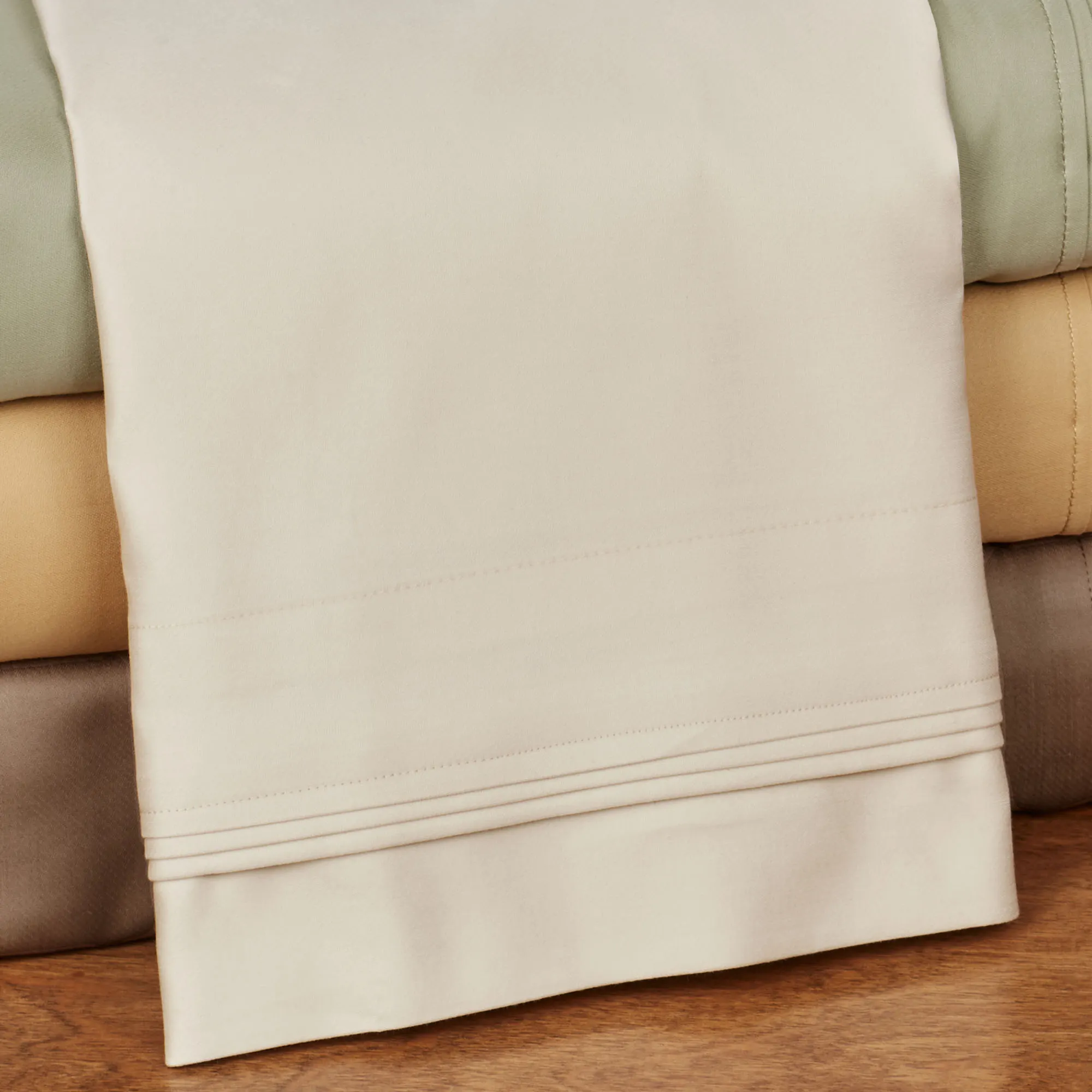 • Flat sheet and pillowcases have a 4" pleated hem
