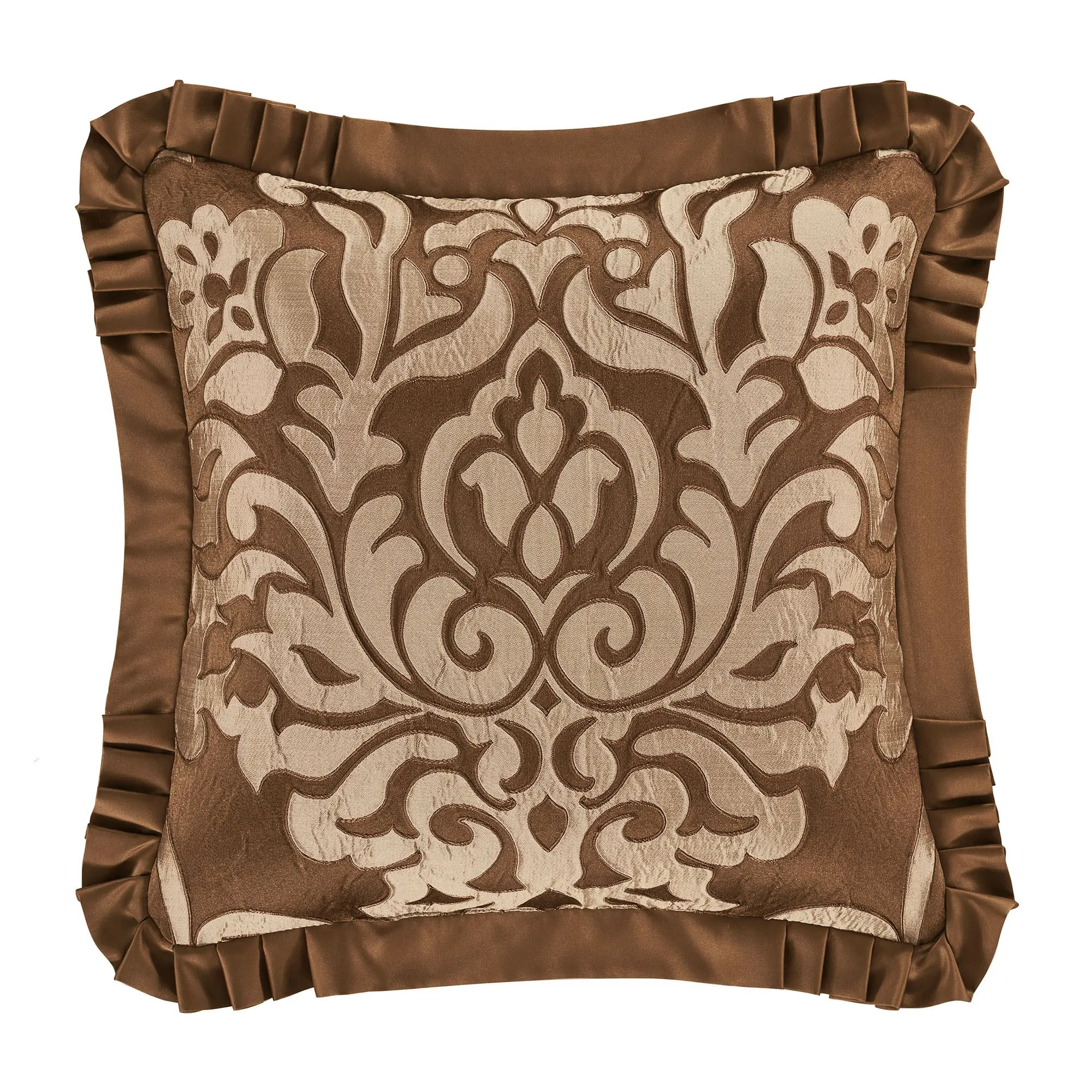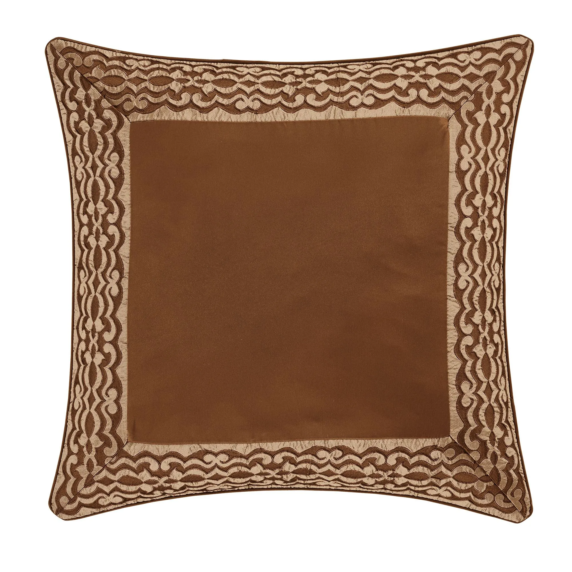 Chocolate European Sham is pieced with scrolls and has mitred corners, piping, and a zipper closure.