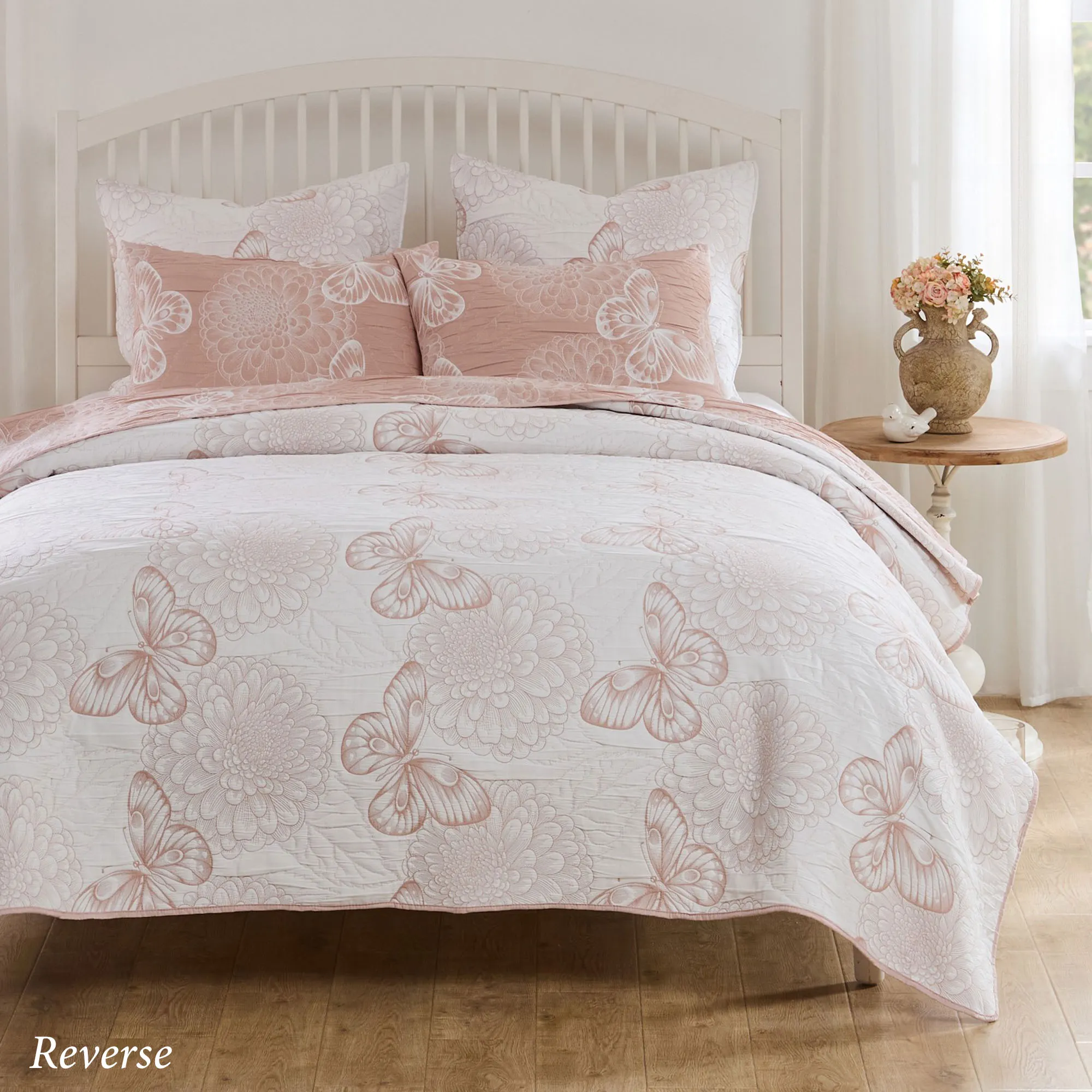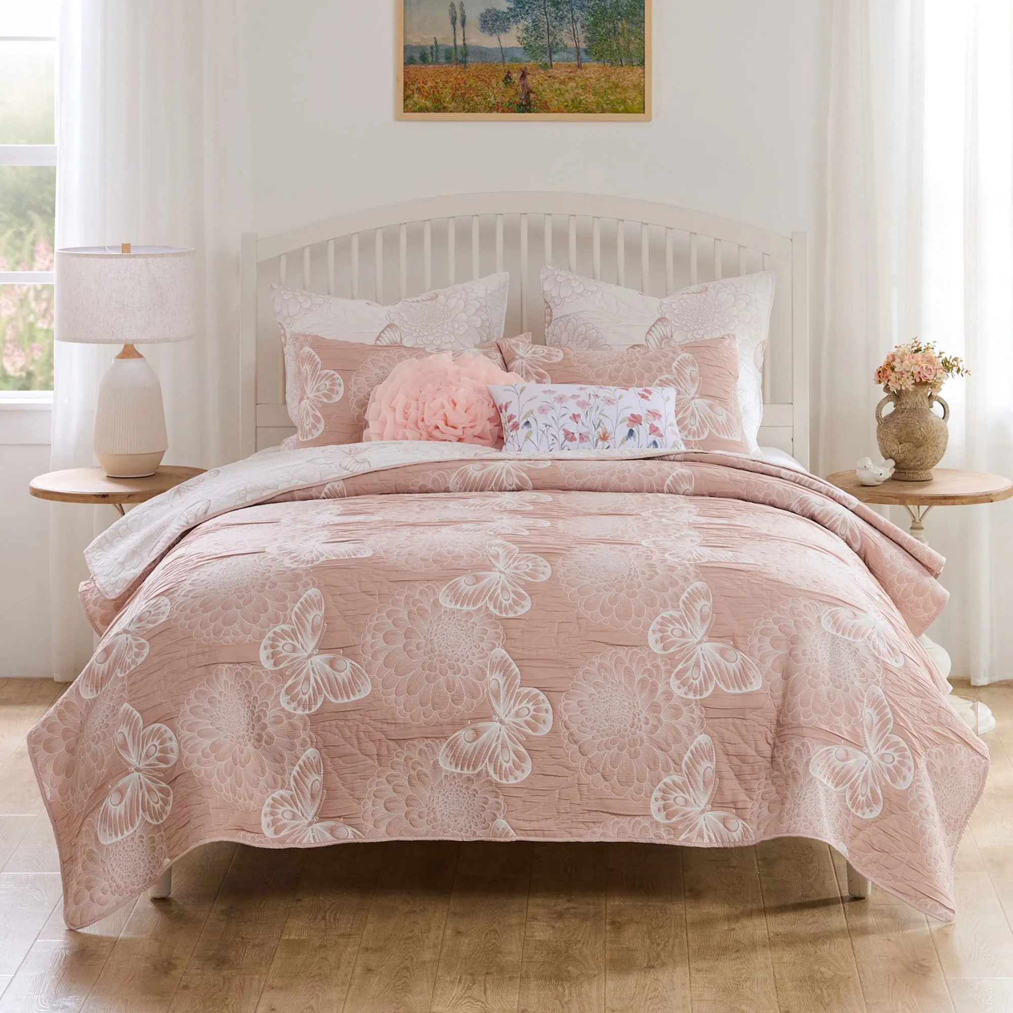 Sweet Mariposa Blush Pink Matelasse Butterfly Mini Coverlet Set Bedding