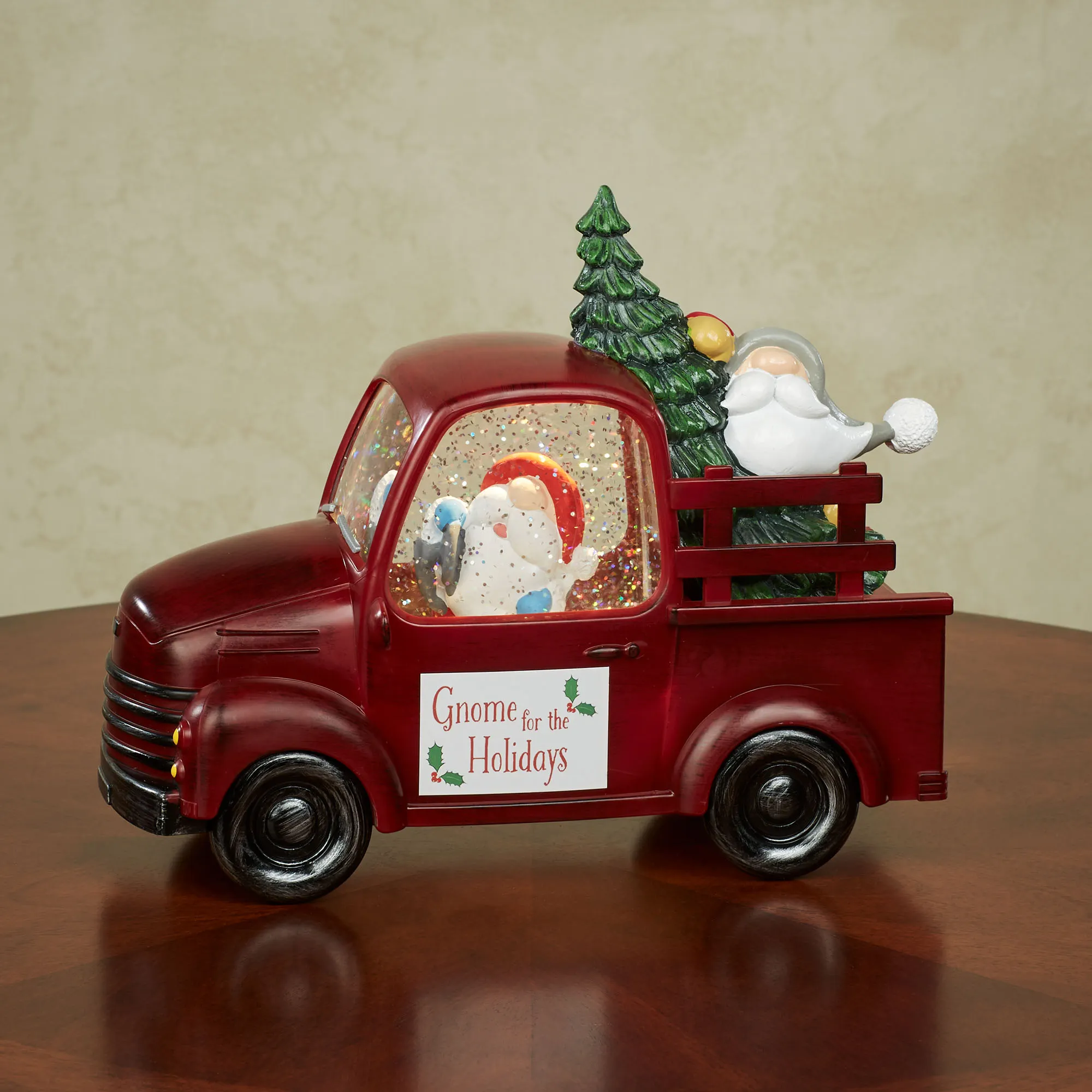 Glitter Swirl Red Truck with Gnomes LED Lighted Table Accent by Roman