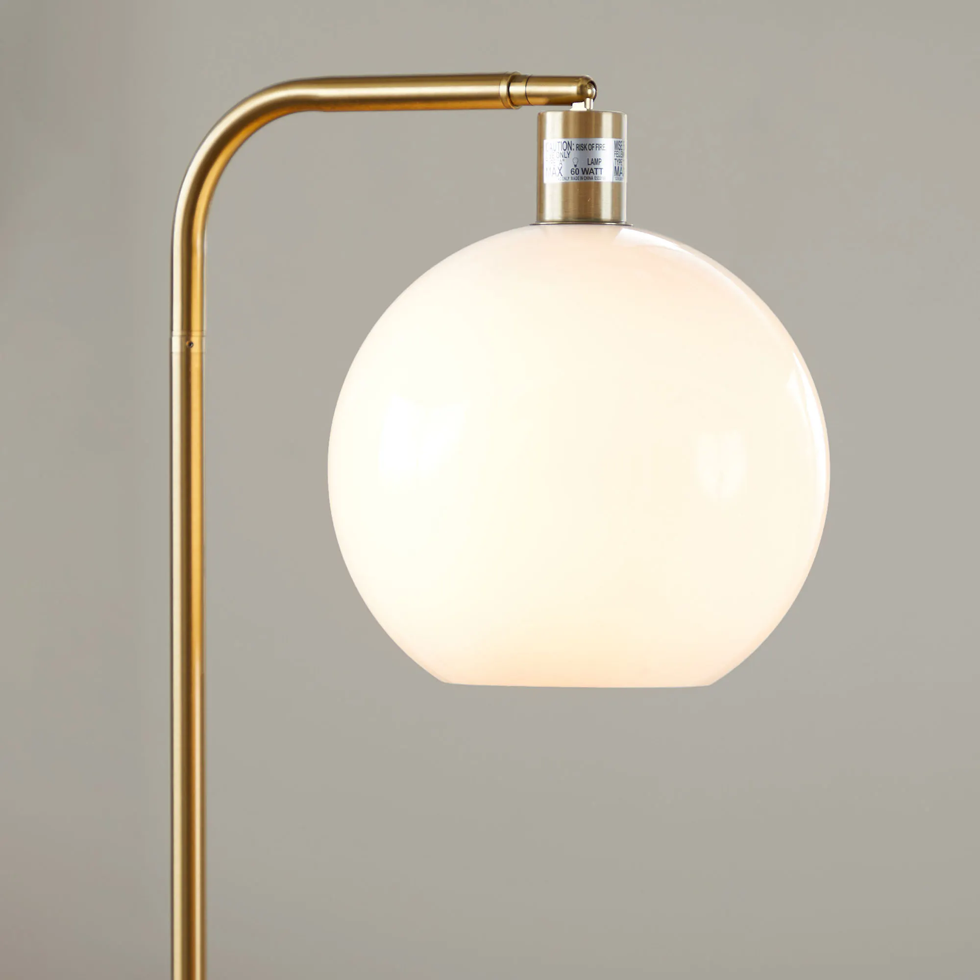 Symbol Gold Metal Modern Floor Lamp with Table and Globe Shade