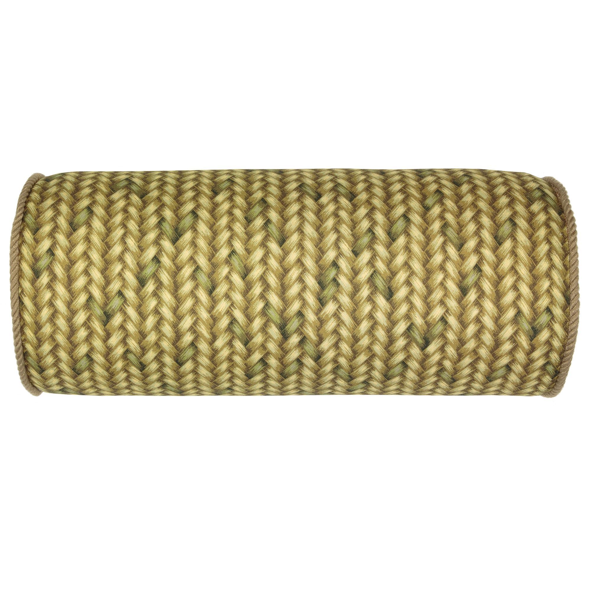Pillows: Spot clean. Neckroll is basket weave with twist cording ends. Piped Square is olive with piped edges. Flanged Rectangle is ember glow; French back closure. Pieced Rectangle has a tropical flora center, basket weave sides, and twist cording accenting and edges; reverses to all-over topical flora.