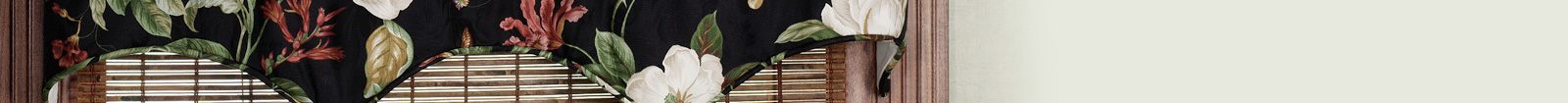 Enhance a particular room with the motifs featured on a tailored window valance. Stripes and stylized leaves lend mod appeal to contemporary valances, perfect for the bedroom. Bathroom valances with a coastal theme, meanwhile, portray seashells, starfish and other aquatic emblems for a touch of serenity. Go for rustic allure with cottage valances, or show off beautiful blossoms with a few of our floral valances. For a rugged aesthetic, add Southwest valances. Palm trees and exotic flowers make popular prints for tropical window toppers. Jacobean florals and damask designs adorn traditional valances, while chevron, paisley and textured patterns grant a transitional aura to your surroundings.