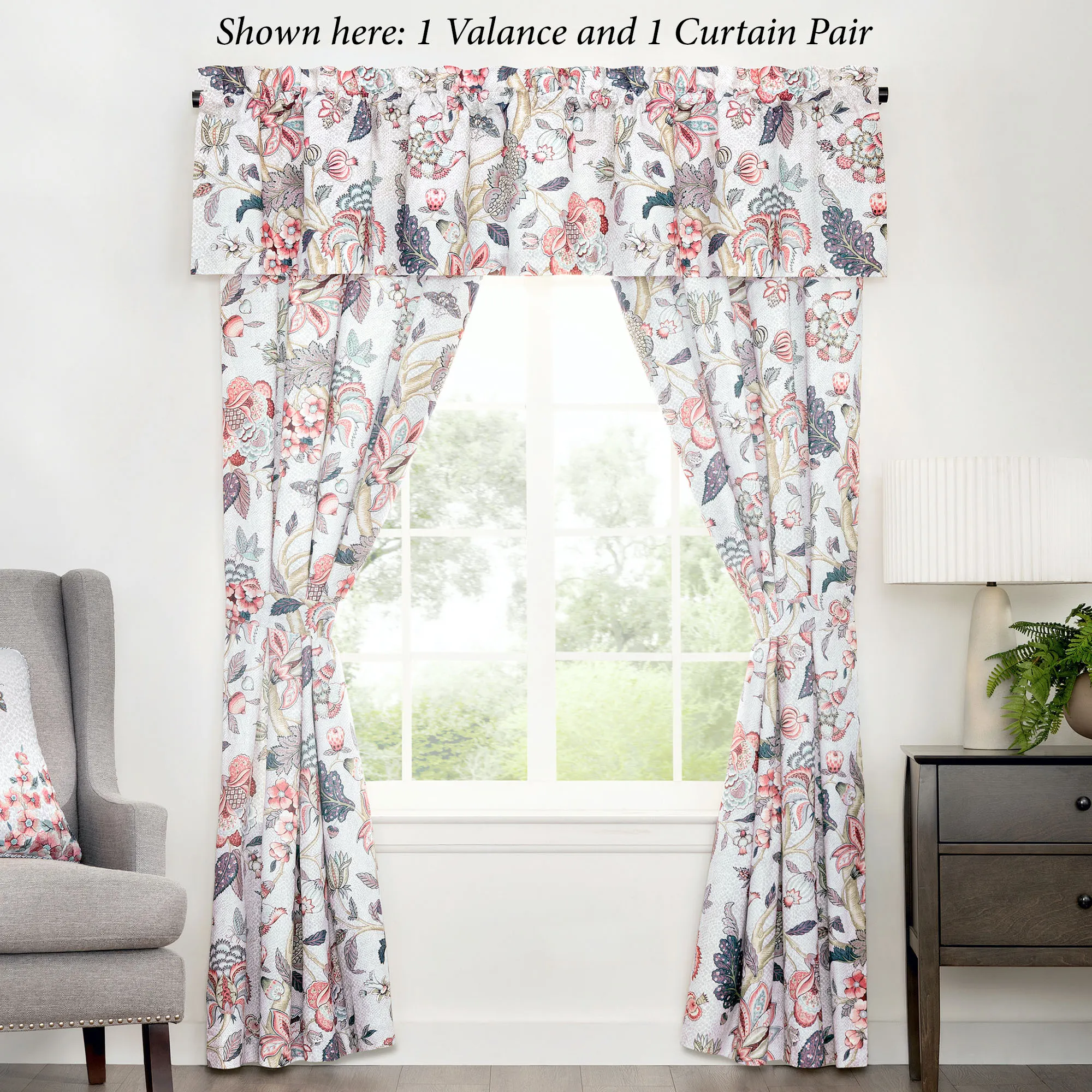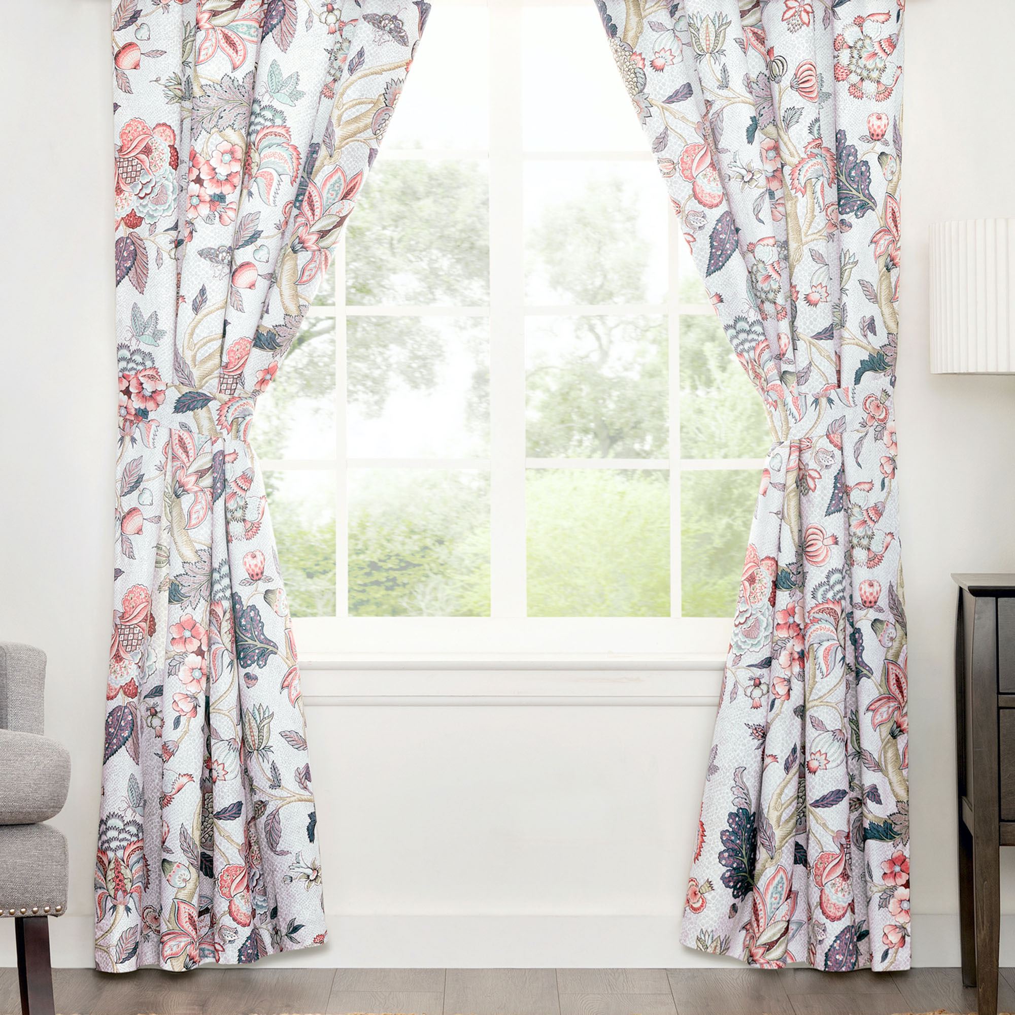 Tailored, lined Window Treatment has Jacobean motifs on a subtle animal print pattern and 3" rod pockets. Wide Curtain Pair includes tiebacks. Valance is also available.