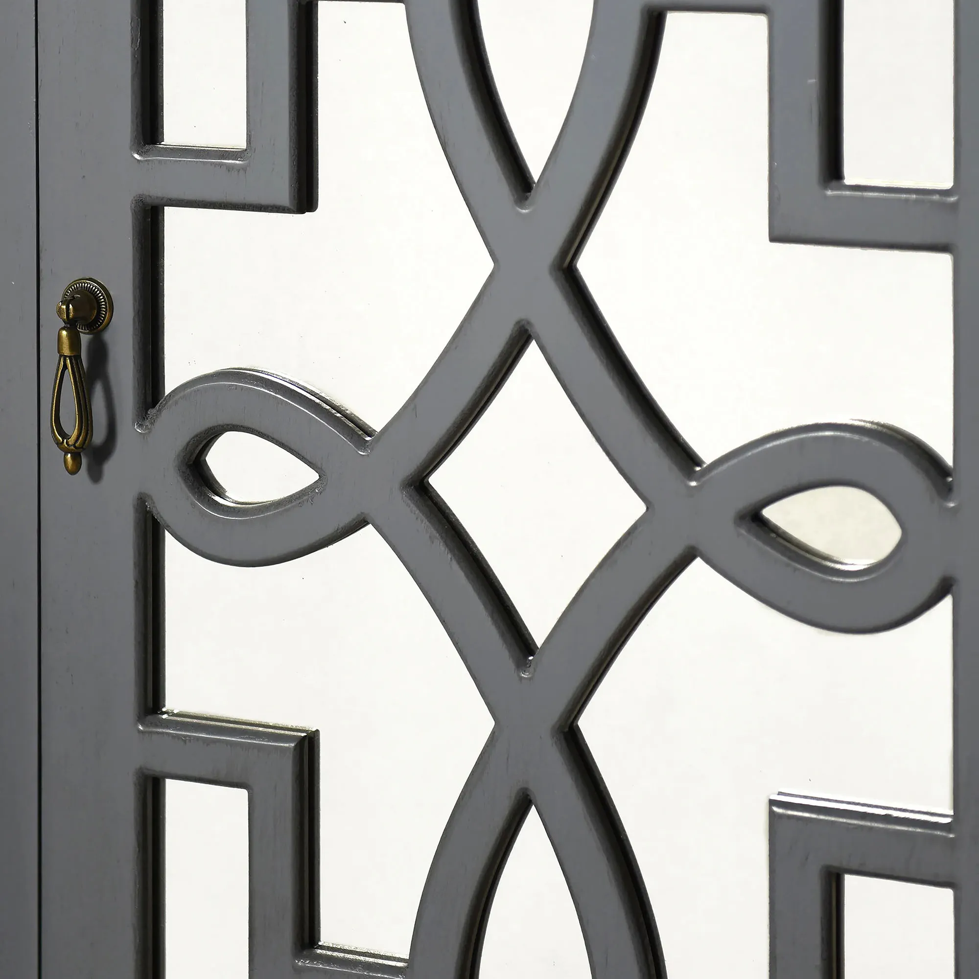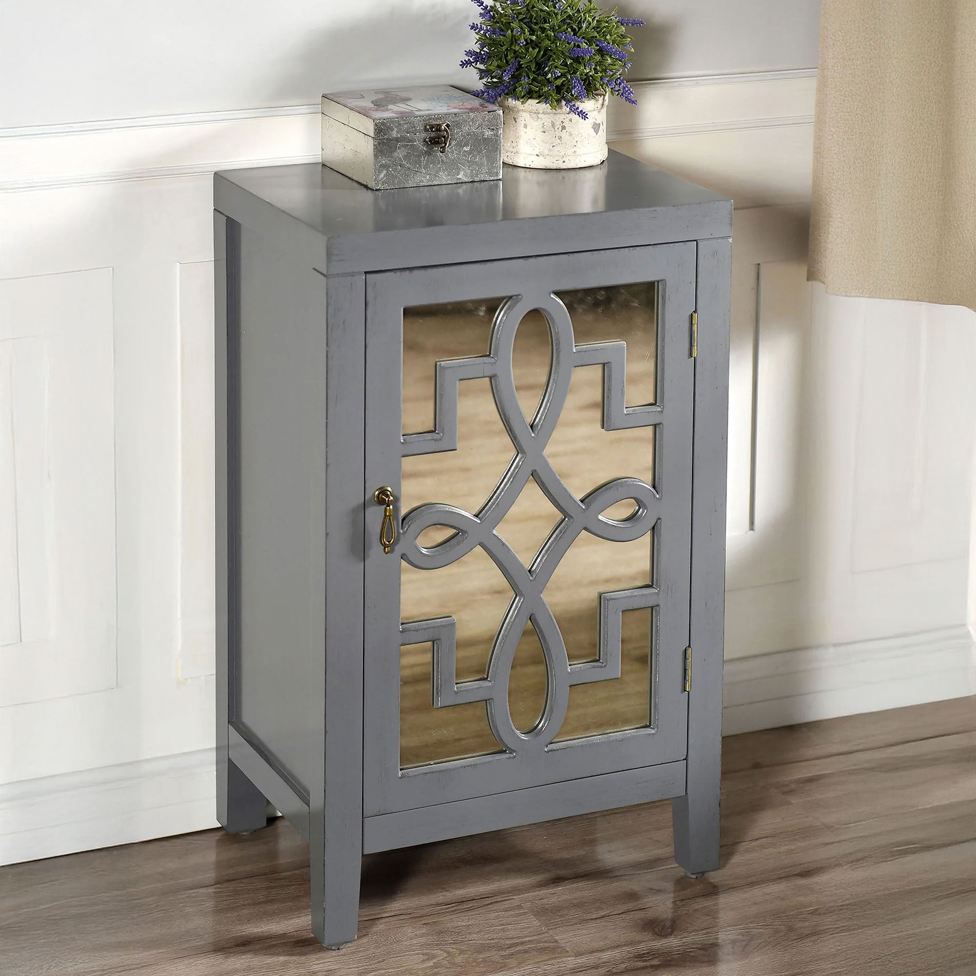 Taya Handpainted Gray Wooden Mirrored Side Table Storage Cabinet