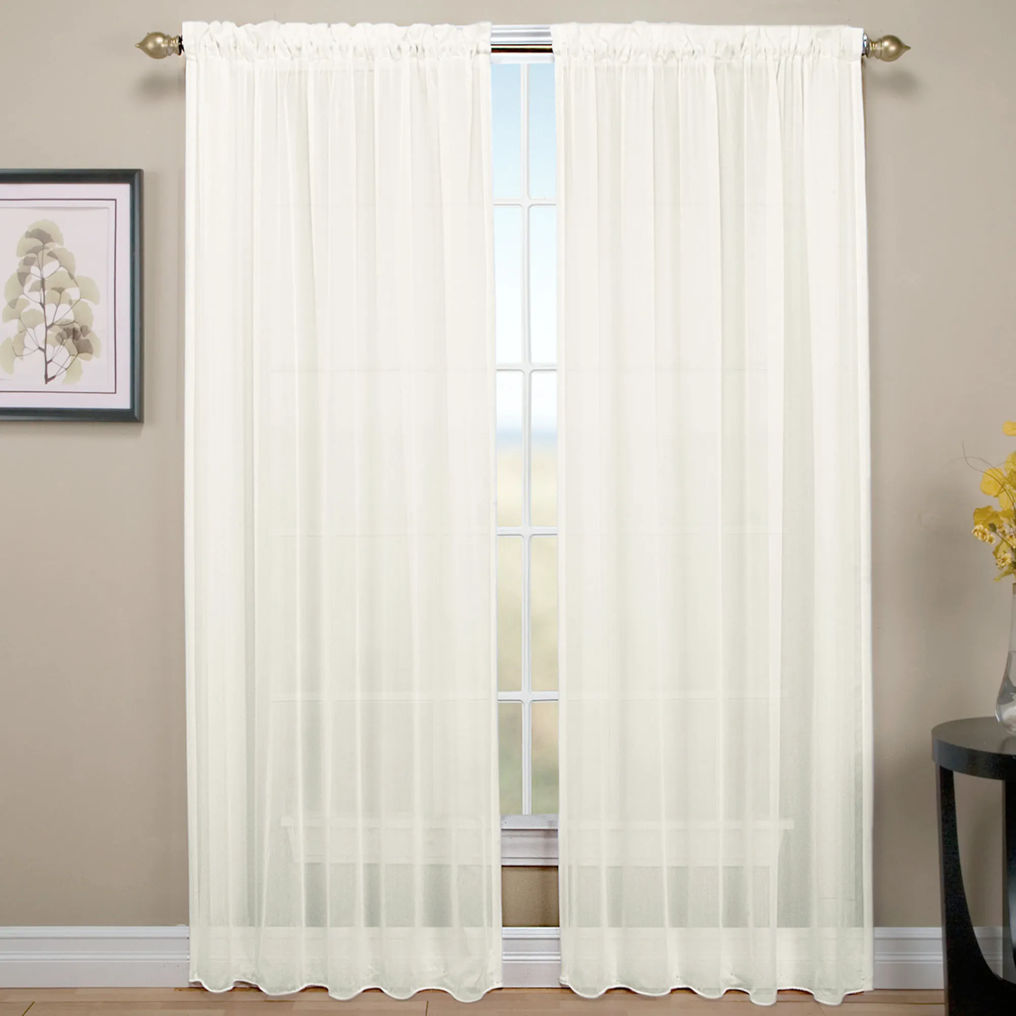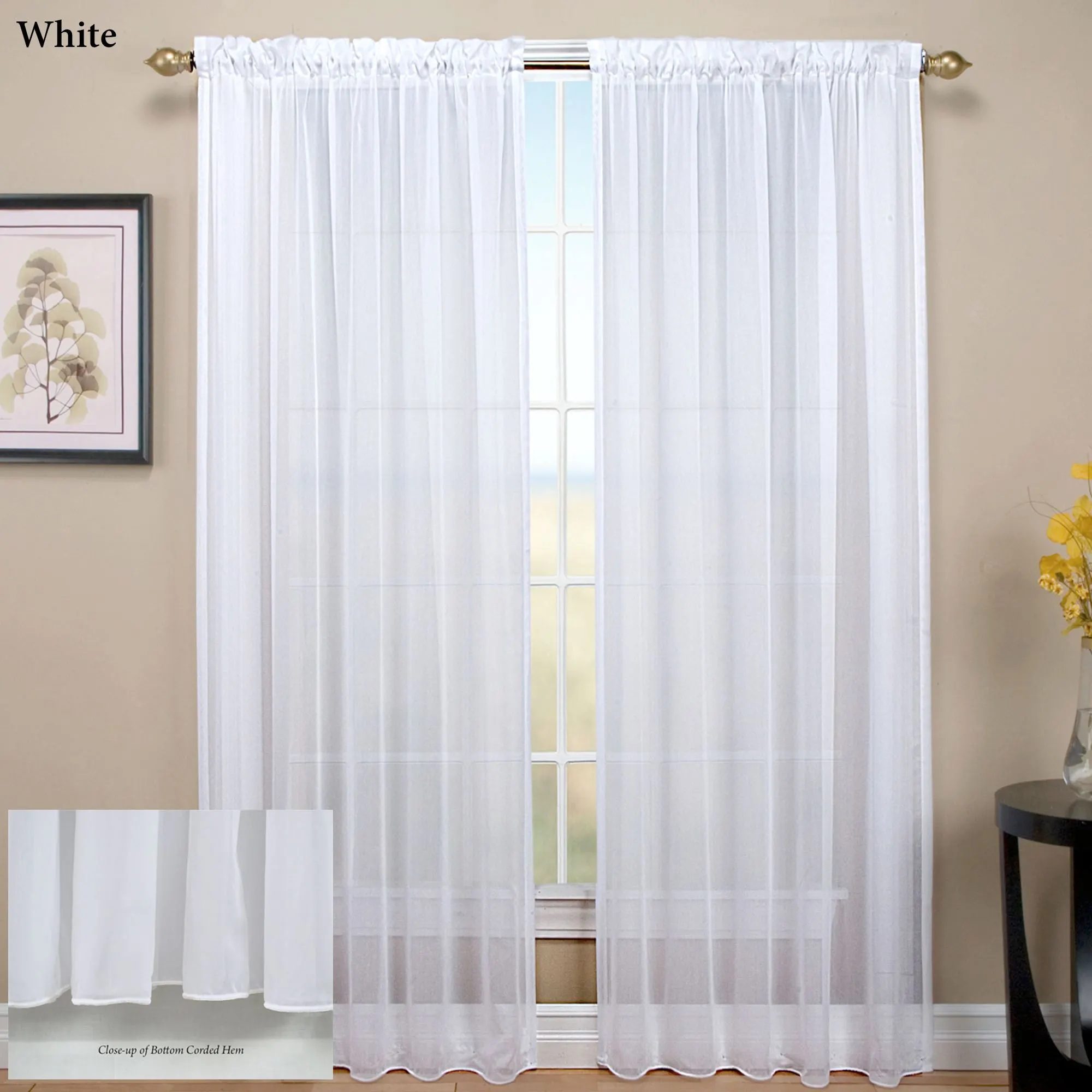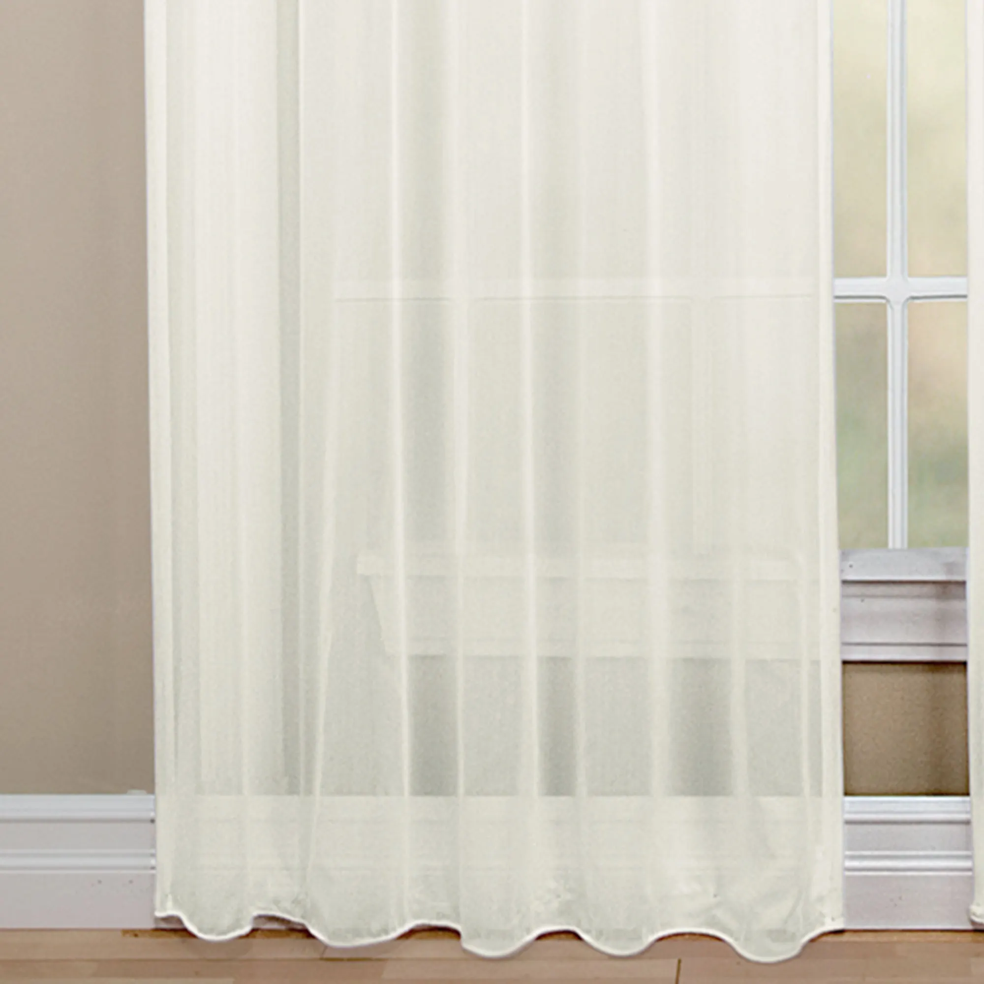 The Tergaline Rod Pocket Sheer Curtain Panel offers a beautiful flowing accent for your view. Each solid color, polyester panel provides sheer coverage trimmed in a corded hem to create lovely folds and drapes. A two-way pocket lines the top of each, with a 1.75" rod pocket and a header option or 3" rod pocket with no header option. Specify Curtain Panel, 54"W; or Wide Panel, 108"W. Wide Panel can also be used as an indoor patio panel. Machine washable. Imported.