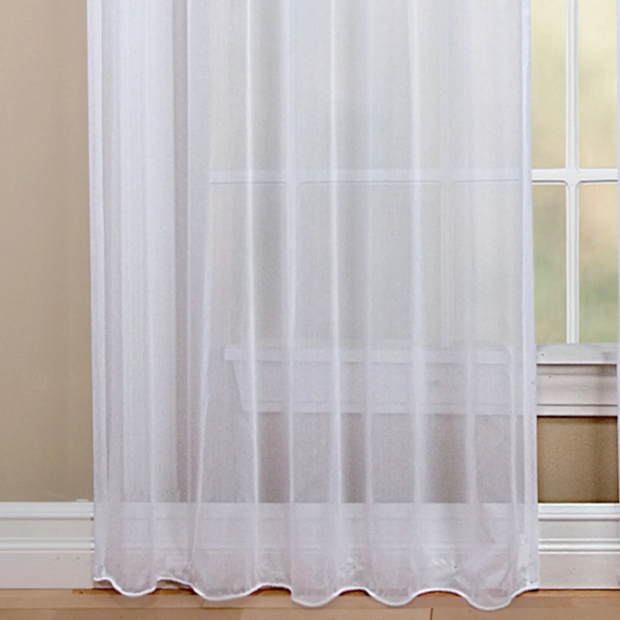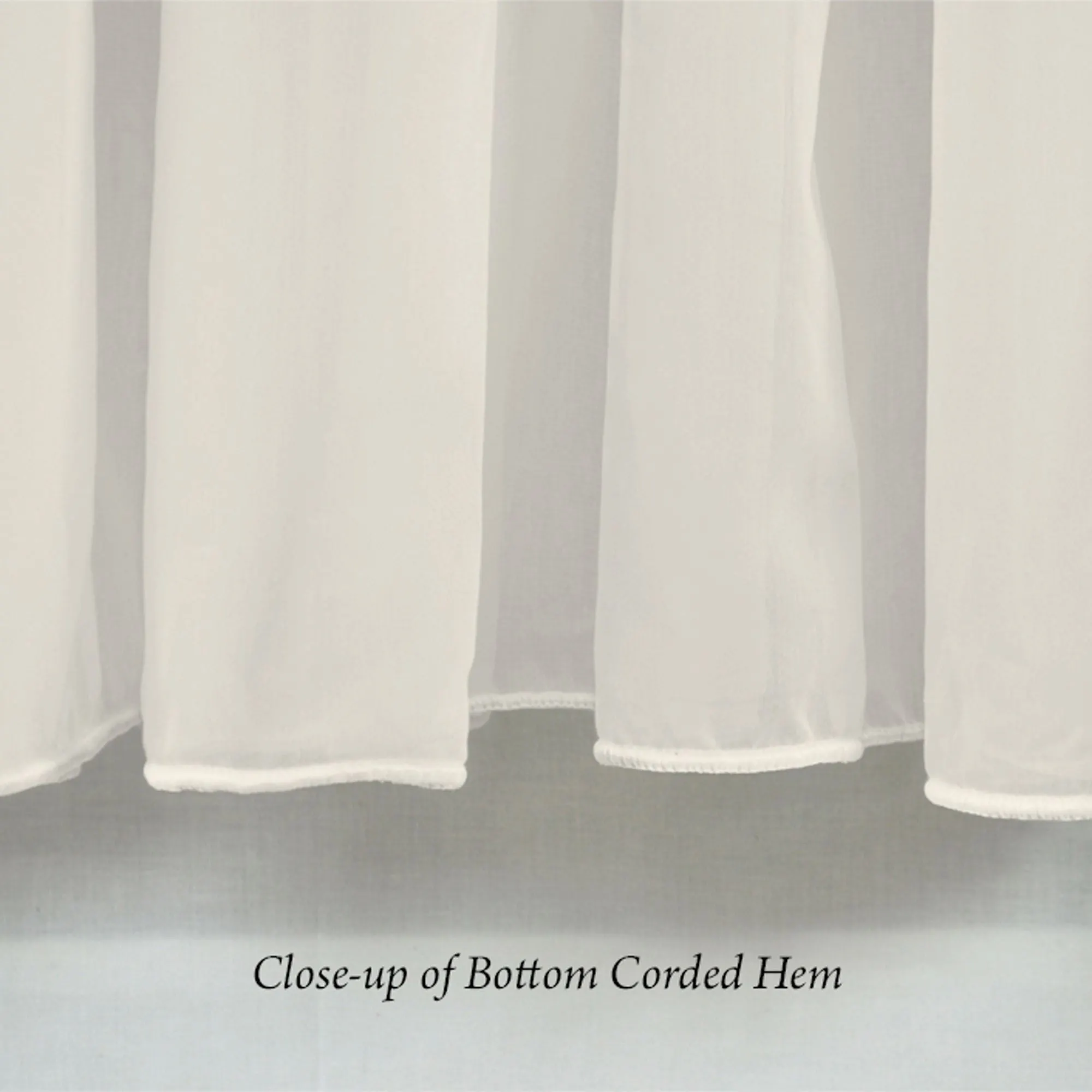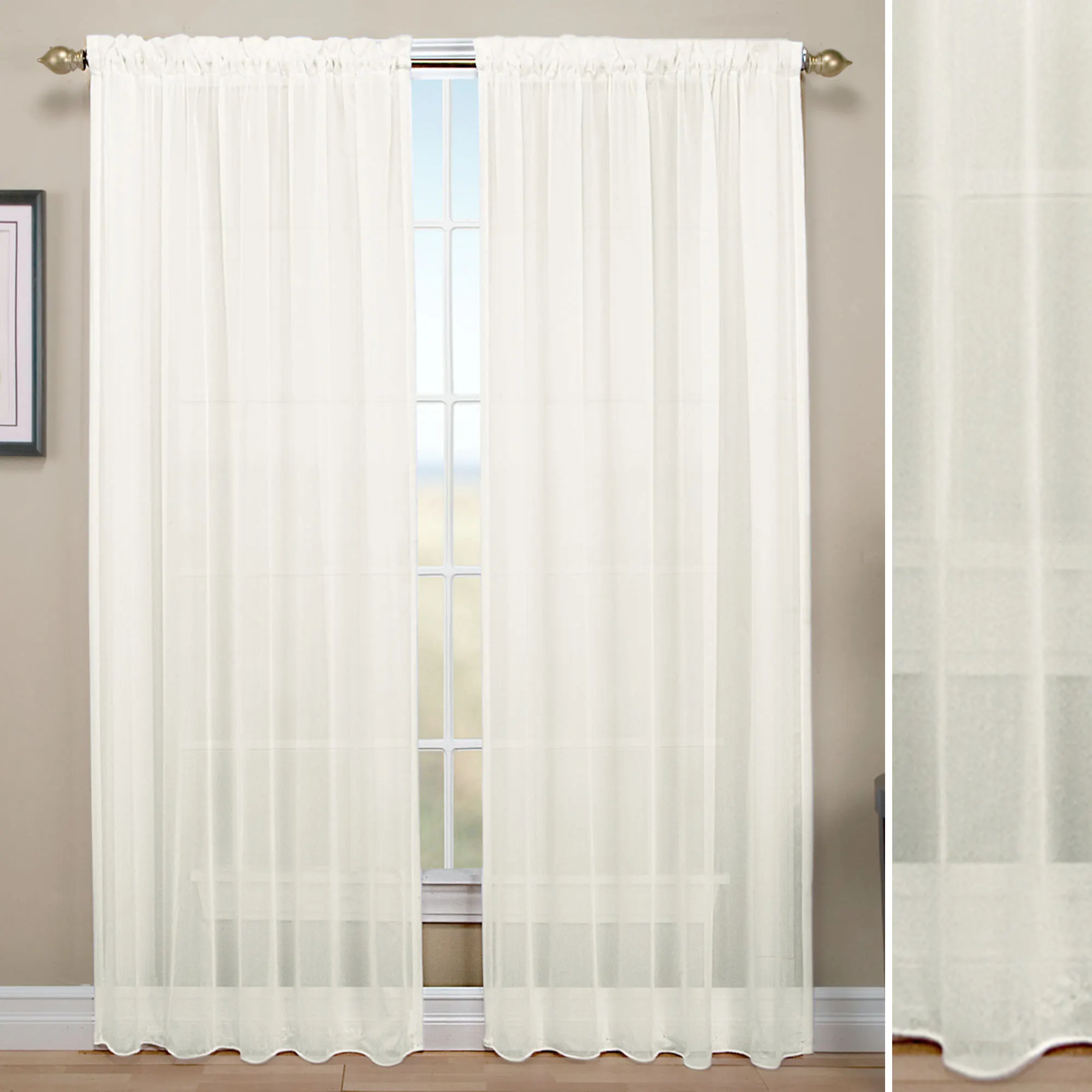 The Tergaline Rod Pocket Sheer Curtain Panel offers a beautiful flowing accent for your view. Each solid color, polyester panel provides sheer coverage trimmed in a corded hem to create lovely folds and drapes. A two-way pocket lines the top of each, with a 1.75" rod pocket and a header option or 3" rod pocket with no header option. Specify Curtain Panel, 54"W; or Wide Panel, 108"W. Wide Panel can also be used as an indoor patio panel. Machine washable. Imported.