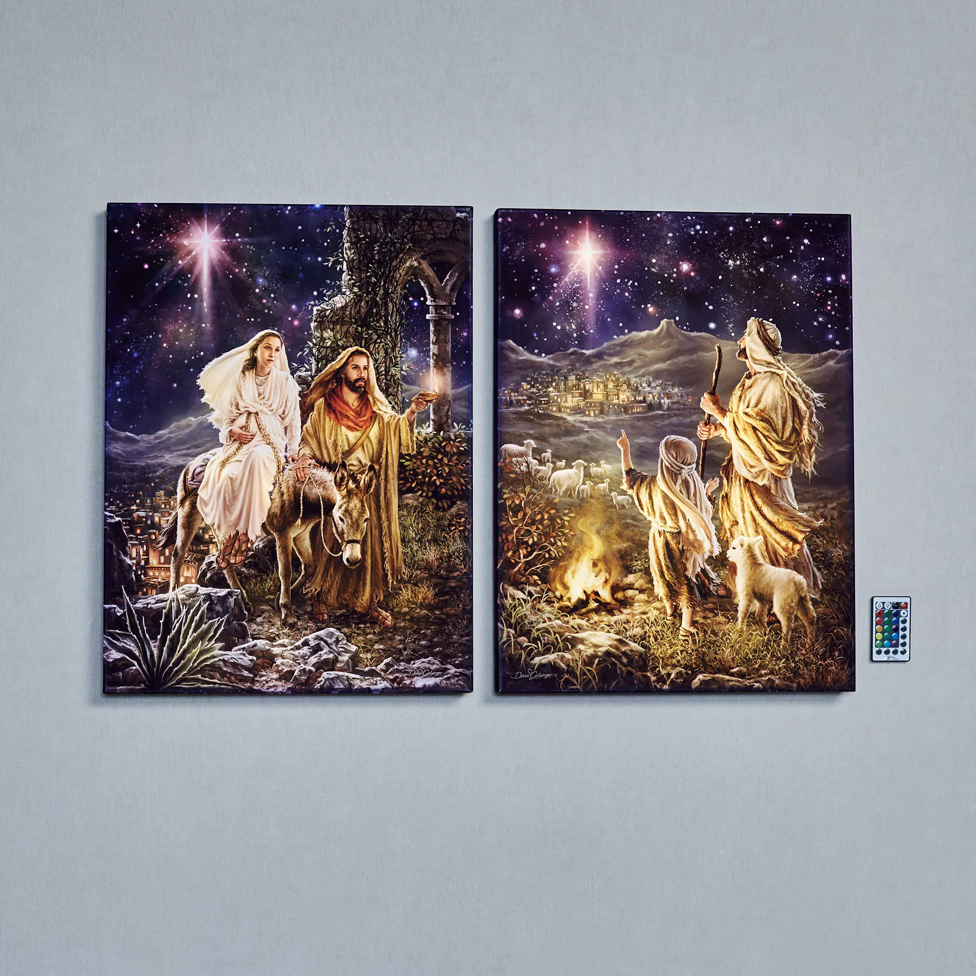 Dona Gelsinger The Journey to the King Religious Christmas LED Lighted Wall Art Set by Glow Decor