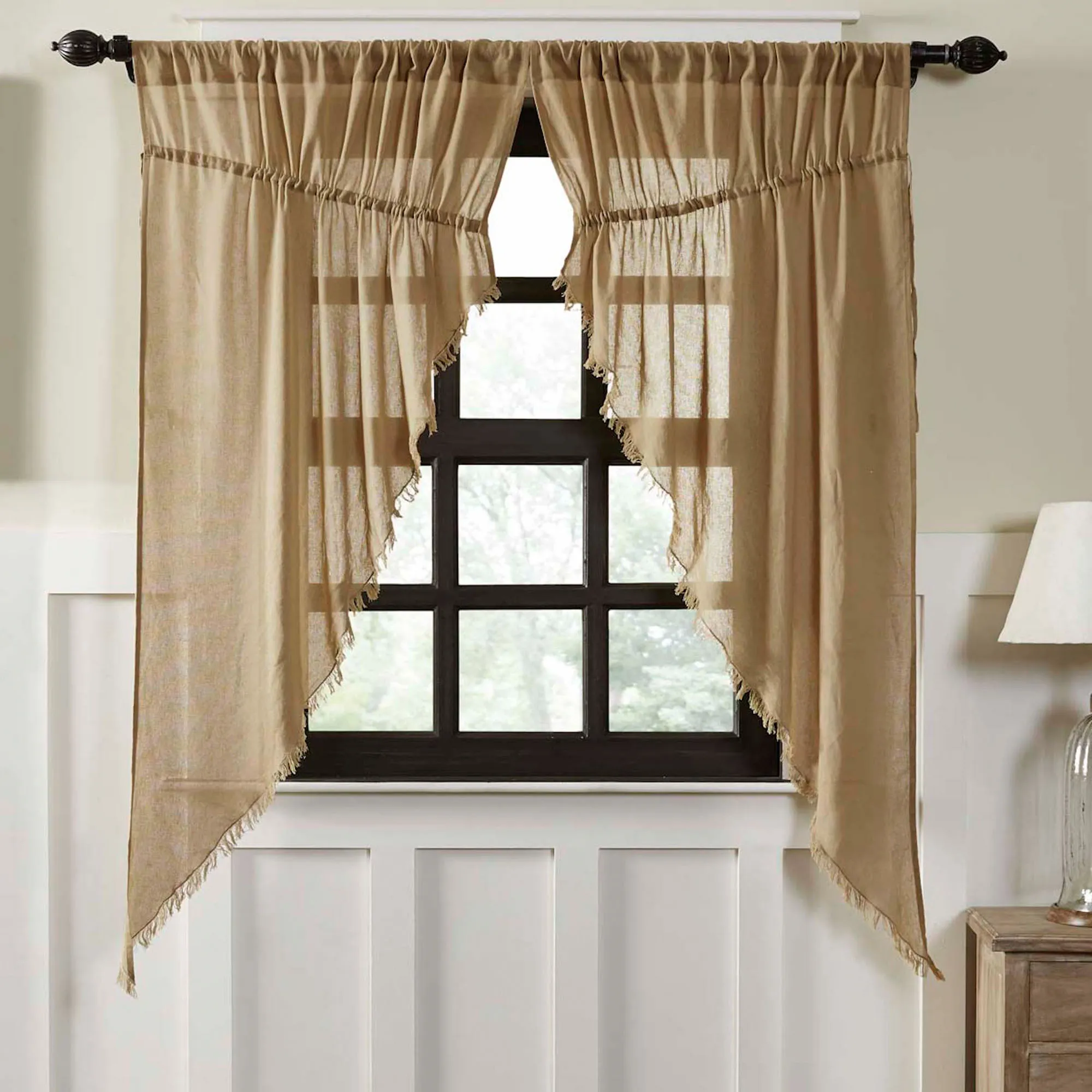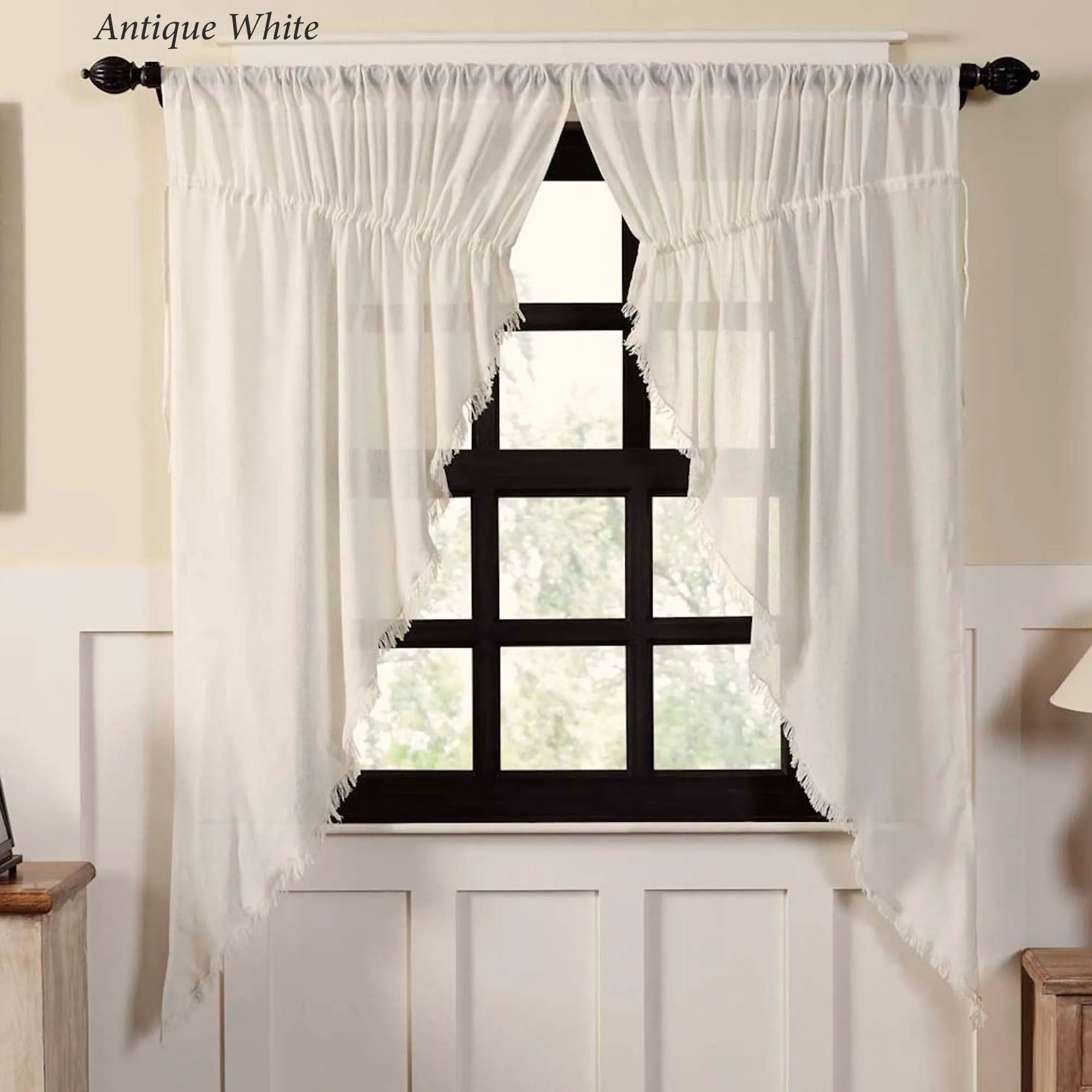 Rustic with a relaxed elegance, the Tipton Semi-Sheer Prairie Curtains decorate with farmhouse charm. This solid color, semi-sheer window treatment is made with a lightweight cotton tobacco cloth and has fringe. Rod pocket is 3.25". Curtains are sold as a pair; the prairie curtain pair is 72"W. Hand wash. Imported. The curtain pair width is the total width of two panels together.