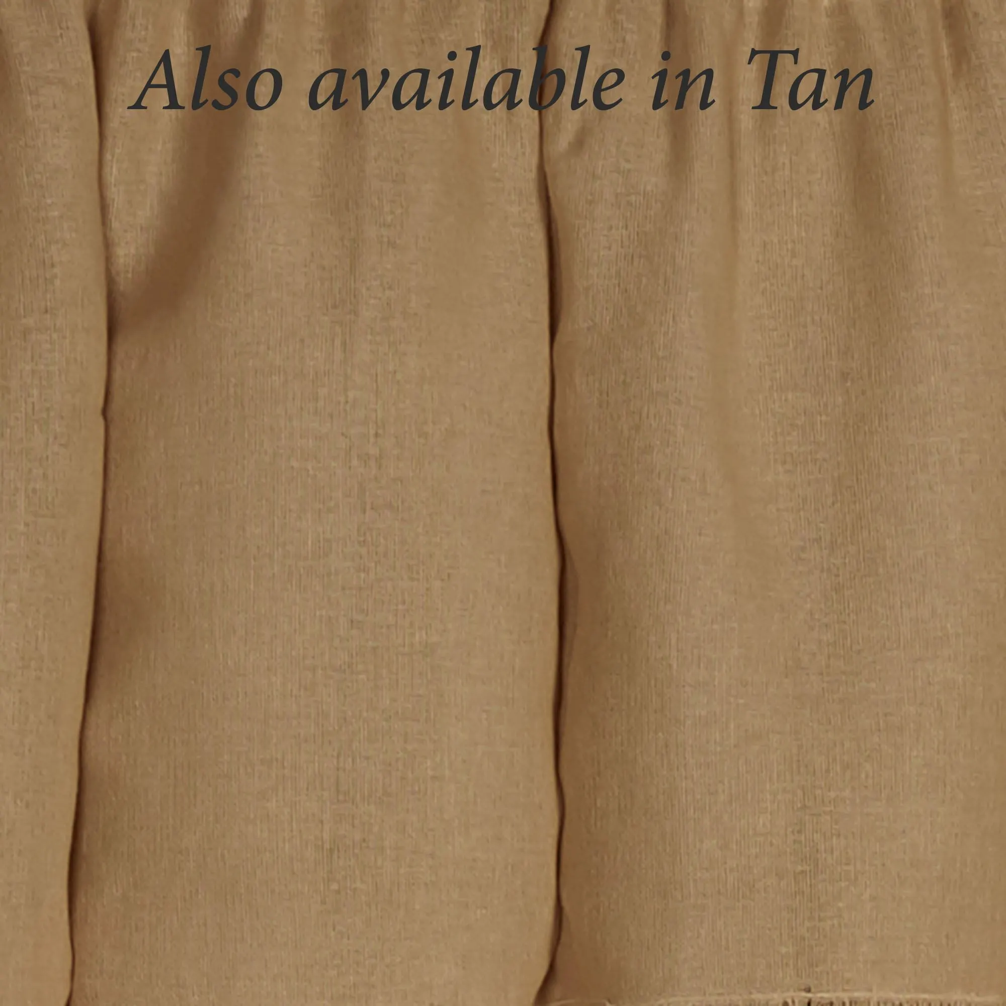 Rustic with a relaxed elegance, the Tipton Semi-Sheer Tier Window Treatment decorates with farmhouse charm. This solid color, semi-sheer window treatment is made with a lightweight cotton tobacco cloth and has fringe. Choose Tailored Tier Pair, Swag Valance Pair, Tailored Valance, or Prairie Swag Valance Pair. Rod pocket is 3.25". Click on the Sizes tab for other measurements. Hand wash. Imported.