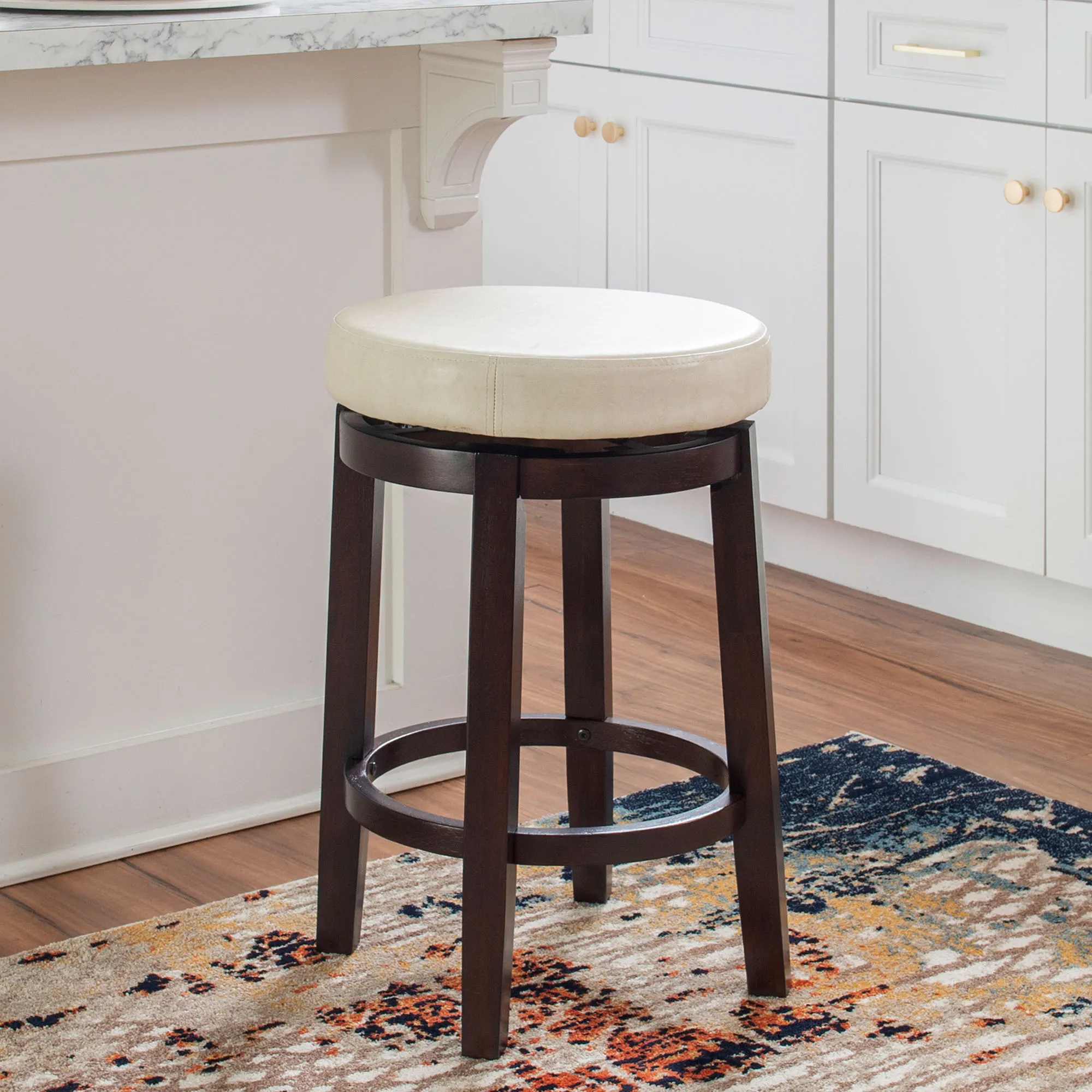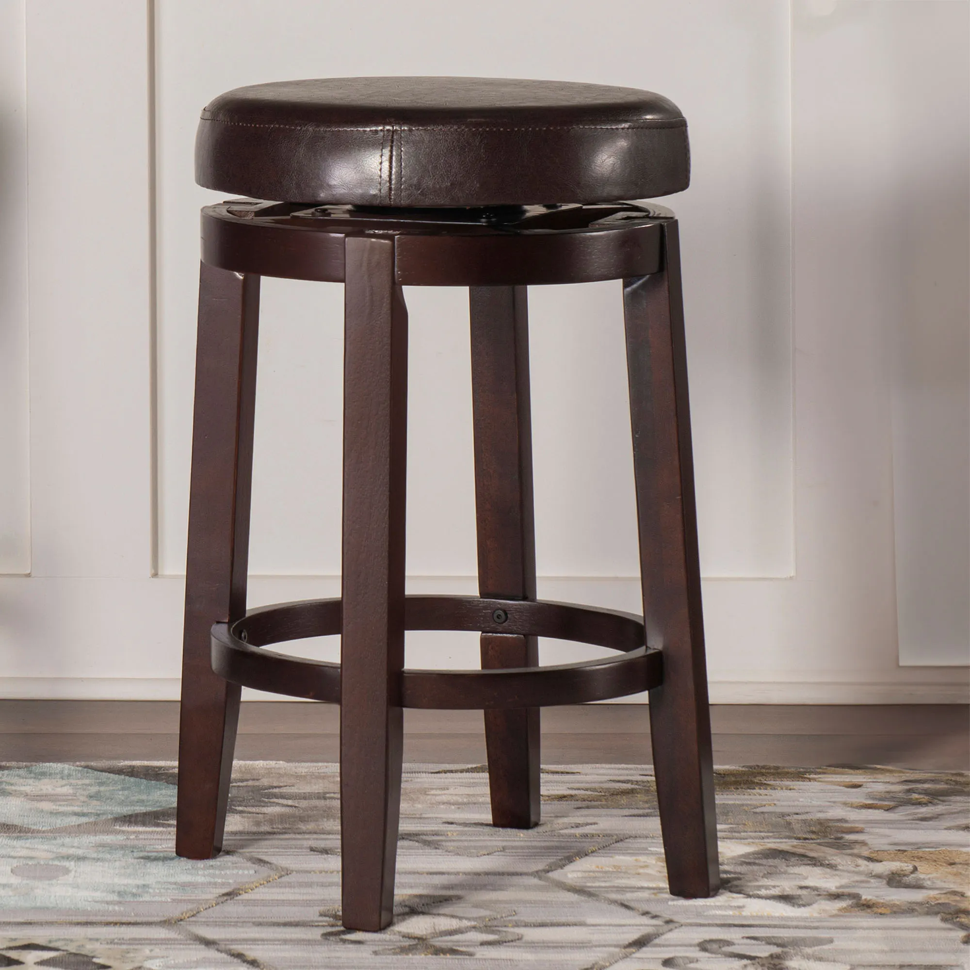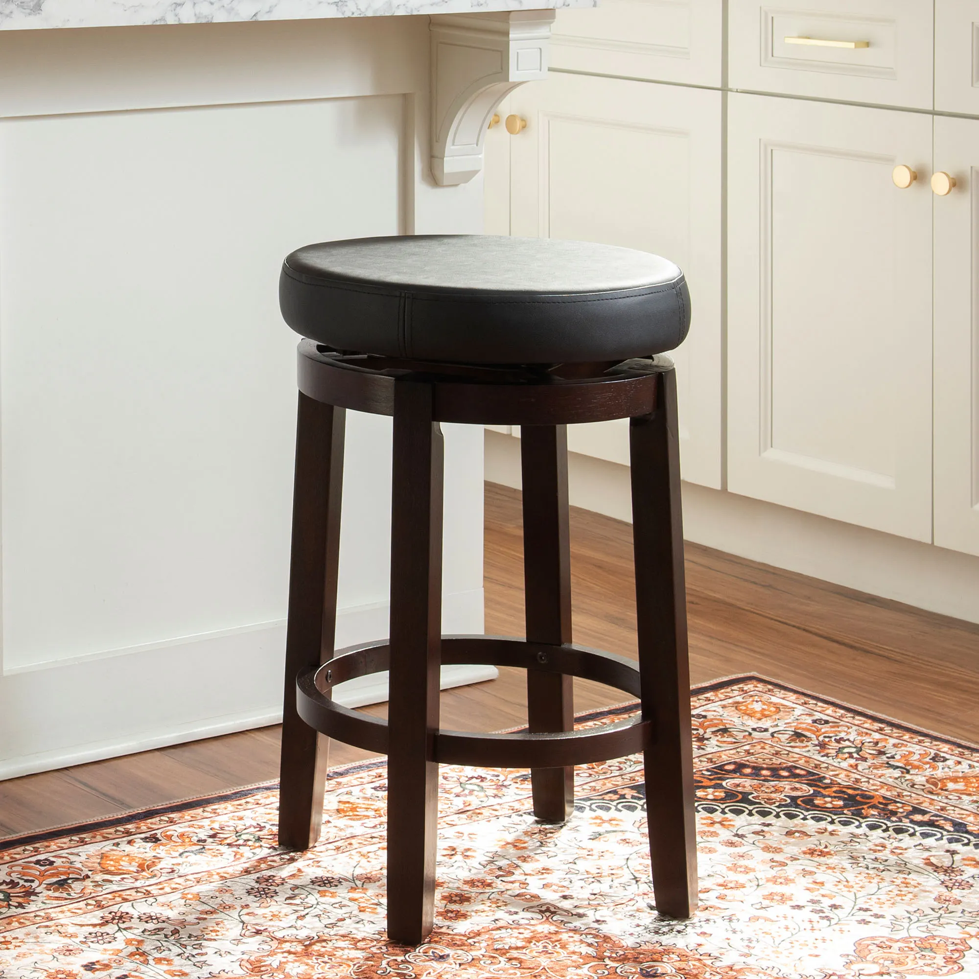 Tobias Autumn Cherry Wood Backless Kitchen Counter Swivel Stool with Faux Leather Seat