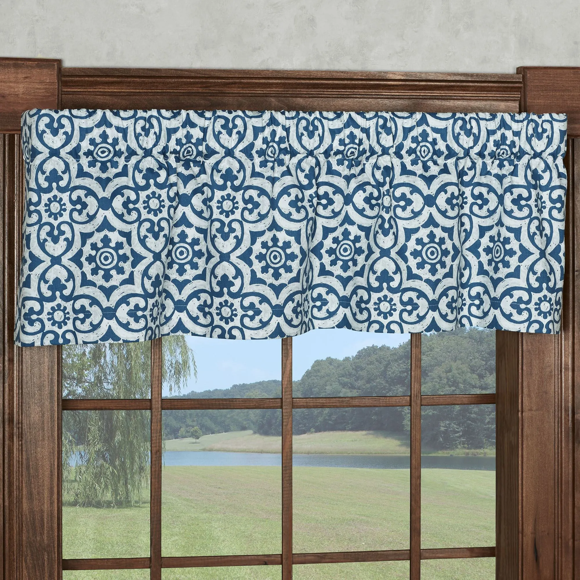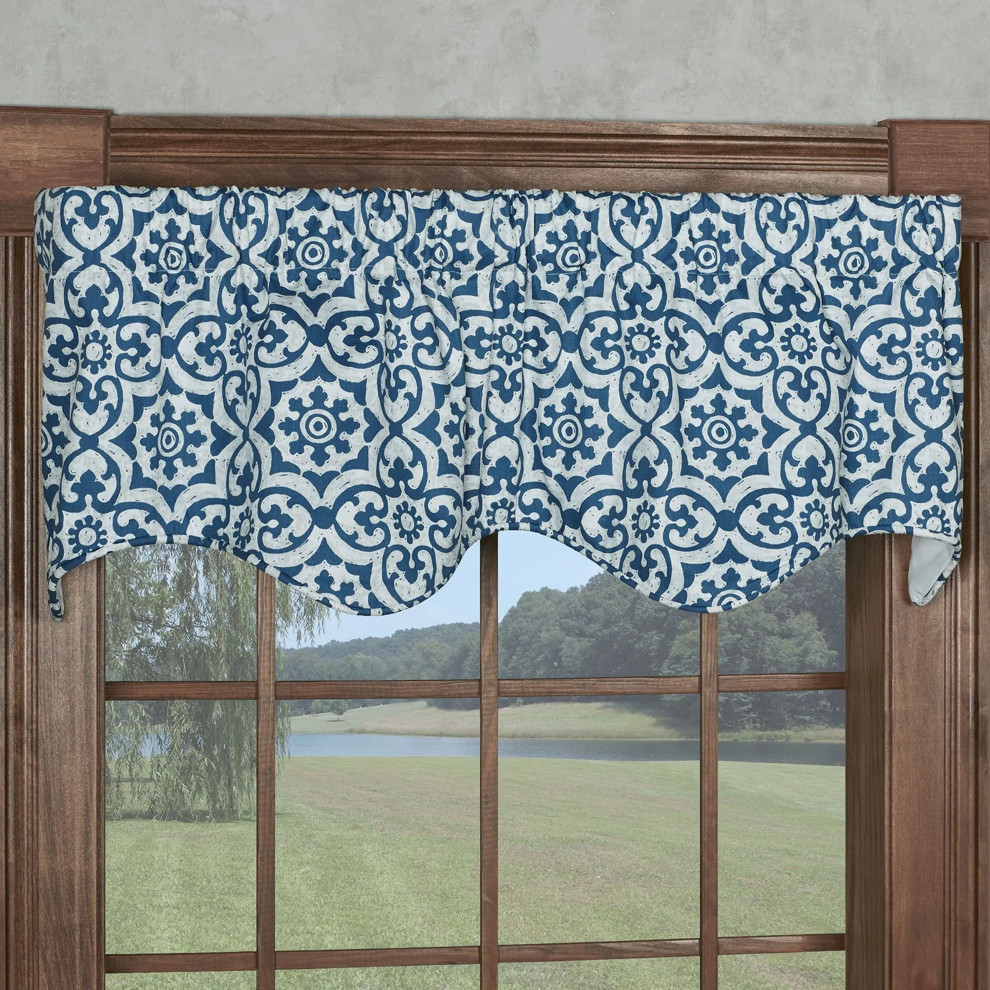Torrence Navy Blue Medallion Tier Window Treatment