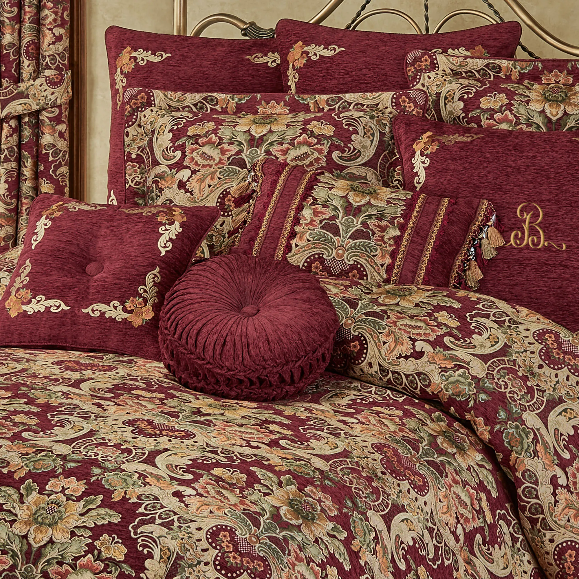 Tosca Jacobean Floral Burgundy Comforter Set Luxury Bedding