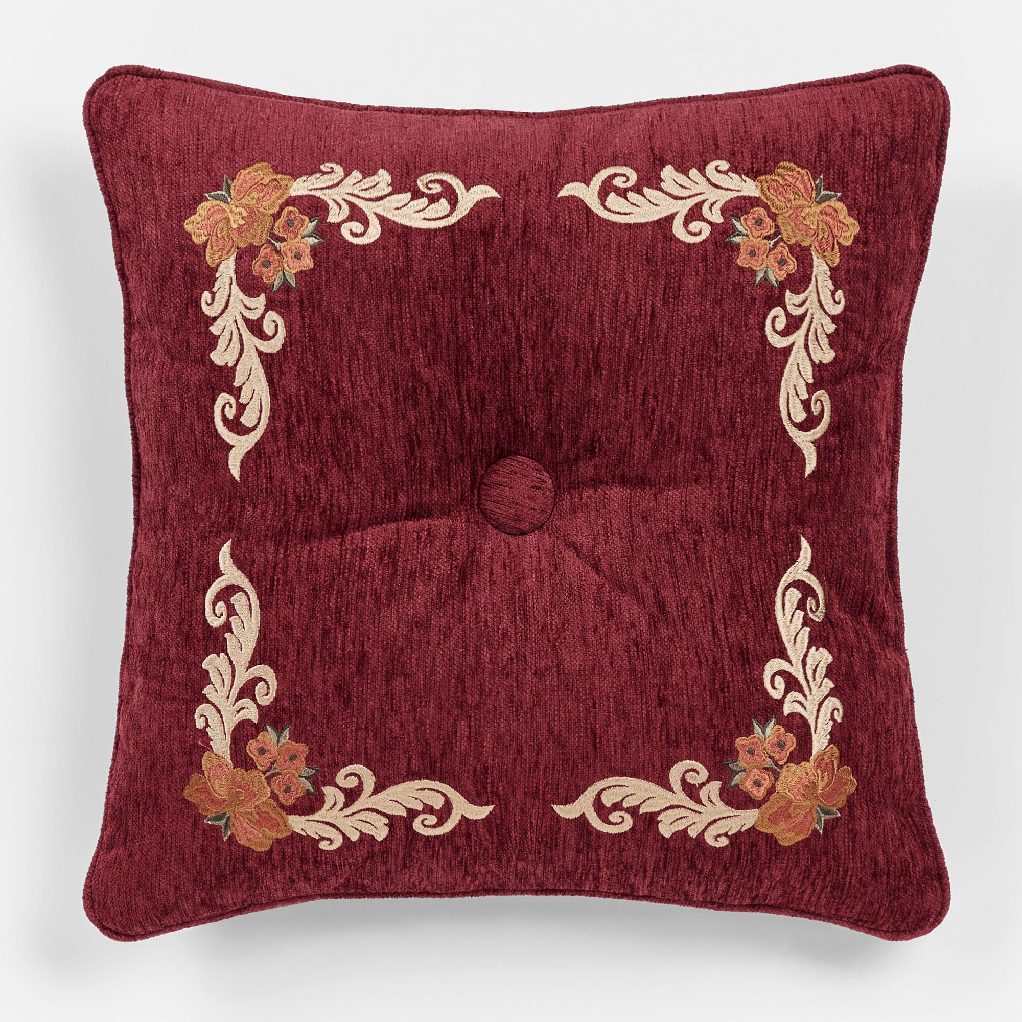 Tosca Tufted Embroidered Pillow Burgundy 18" Square