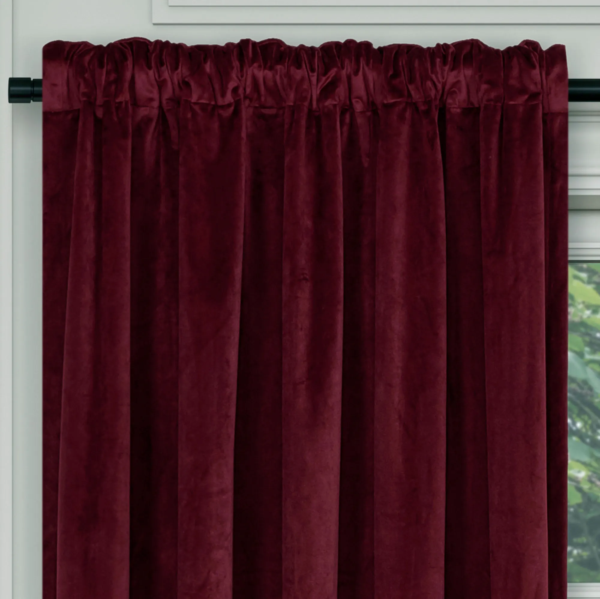 • Solid burgundy curtain panel