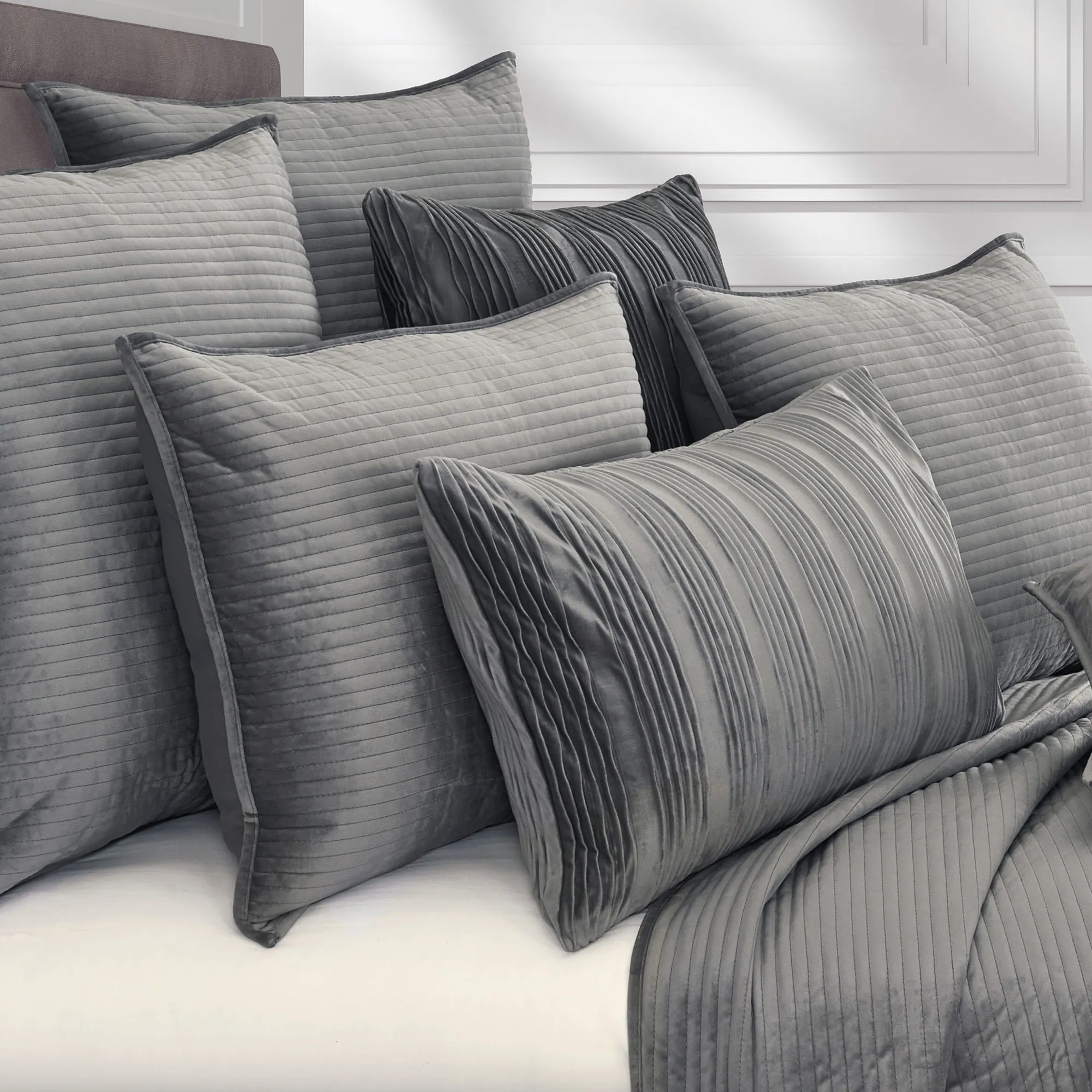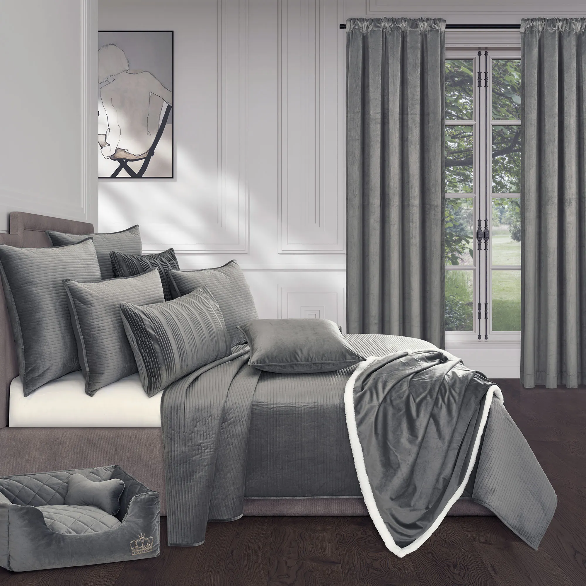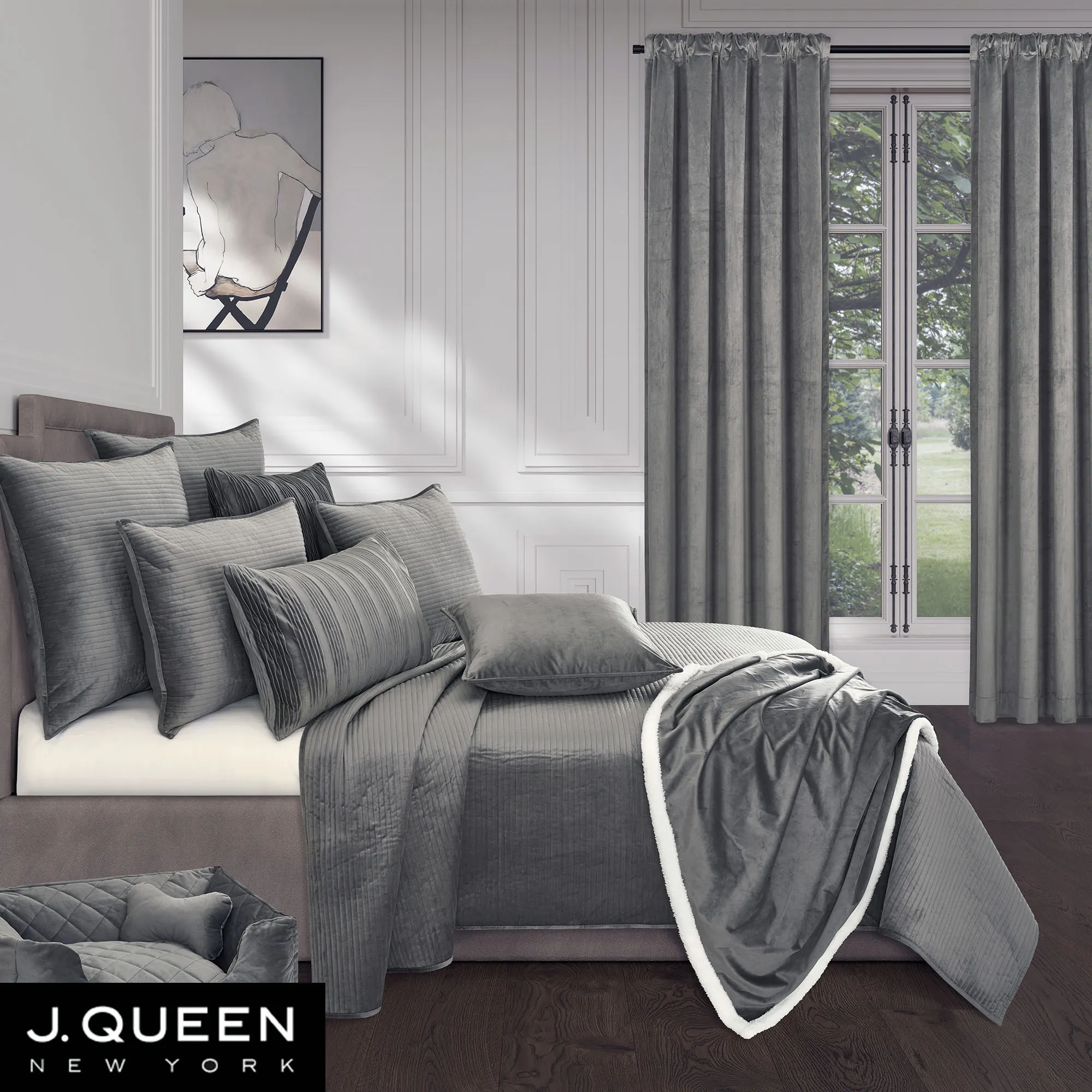 Townsend Solid Charcoal Velvet Quilt Set Luxury Bedding by J Queen New York