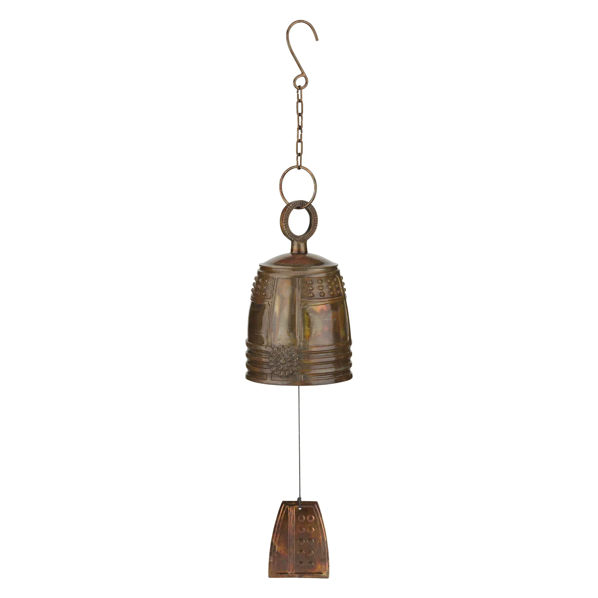 Traditional Flamed Copper Finished Embossed Metal Hanging Outdoor Wind Bell