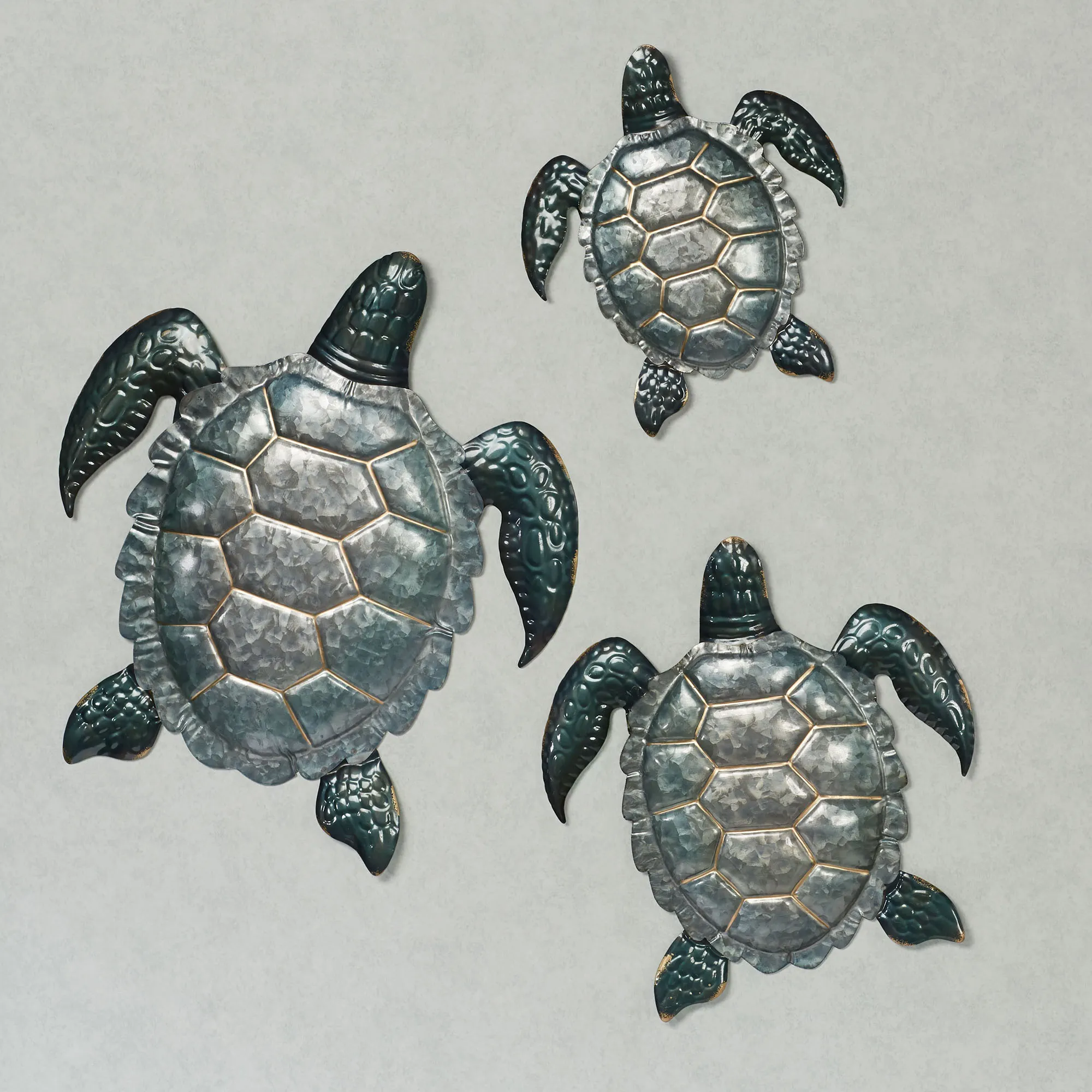 Tranquil Sea Turtle Indoor Outdoor Metal Wall Art Set