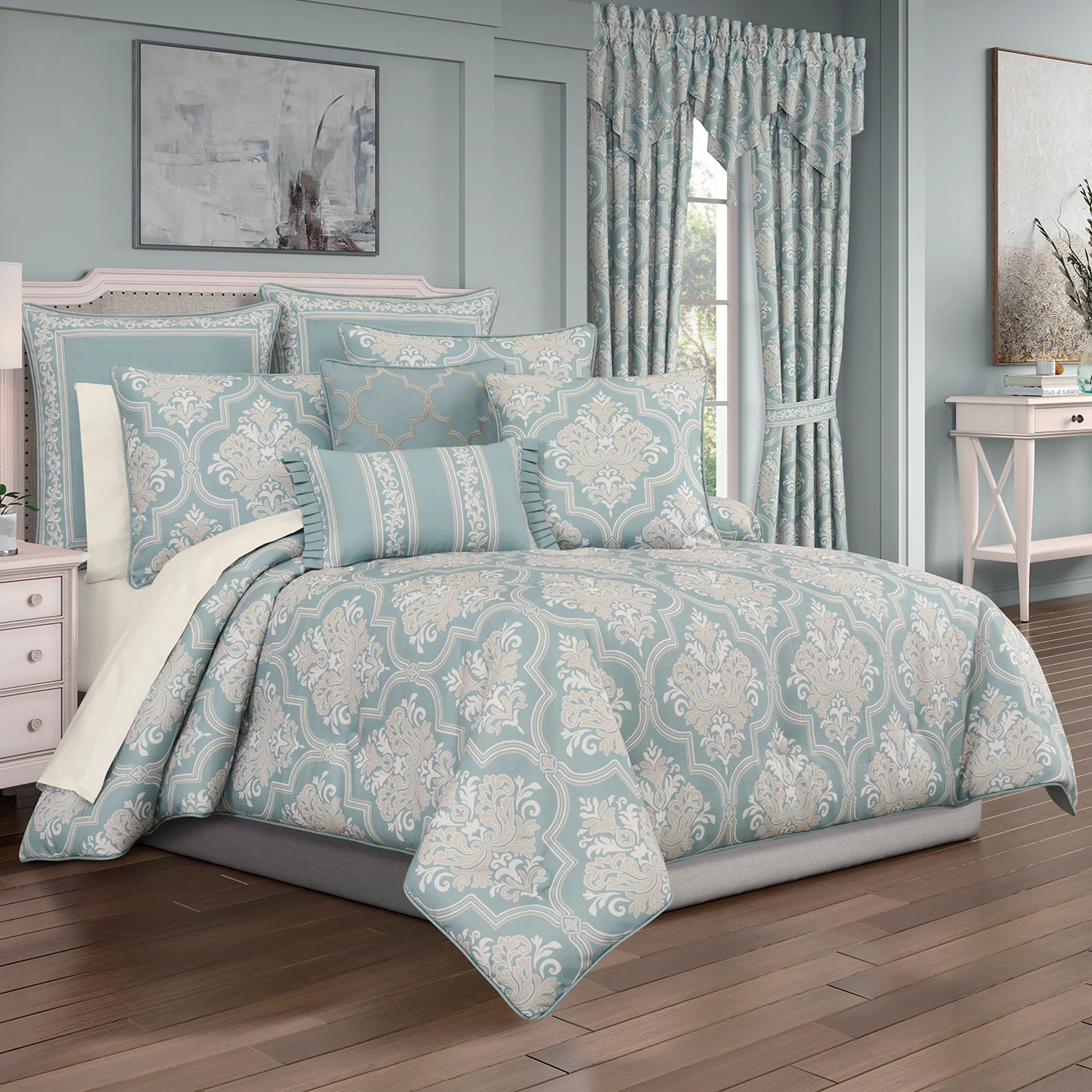 Tranquility Aqua Damask Comforter Set Bedding from Royal Court