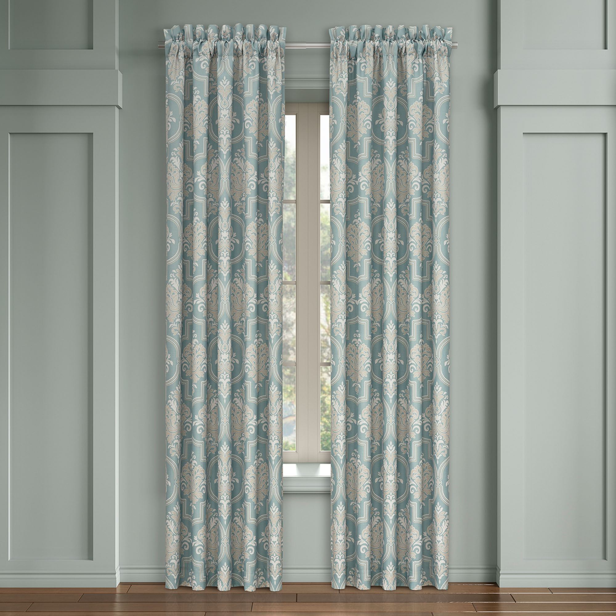 Lined Window Treatment has grand damask designs. The tailored Wide Curtain Pair has a 3" rod pocket and includes tiebacks. Each Ascot Valance has a tassel on the end and a 3.25" rod pocket.