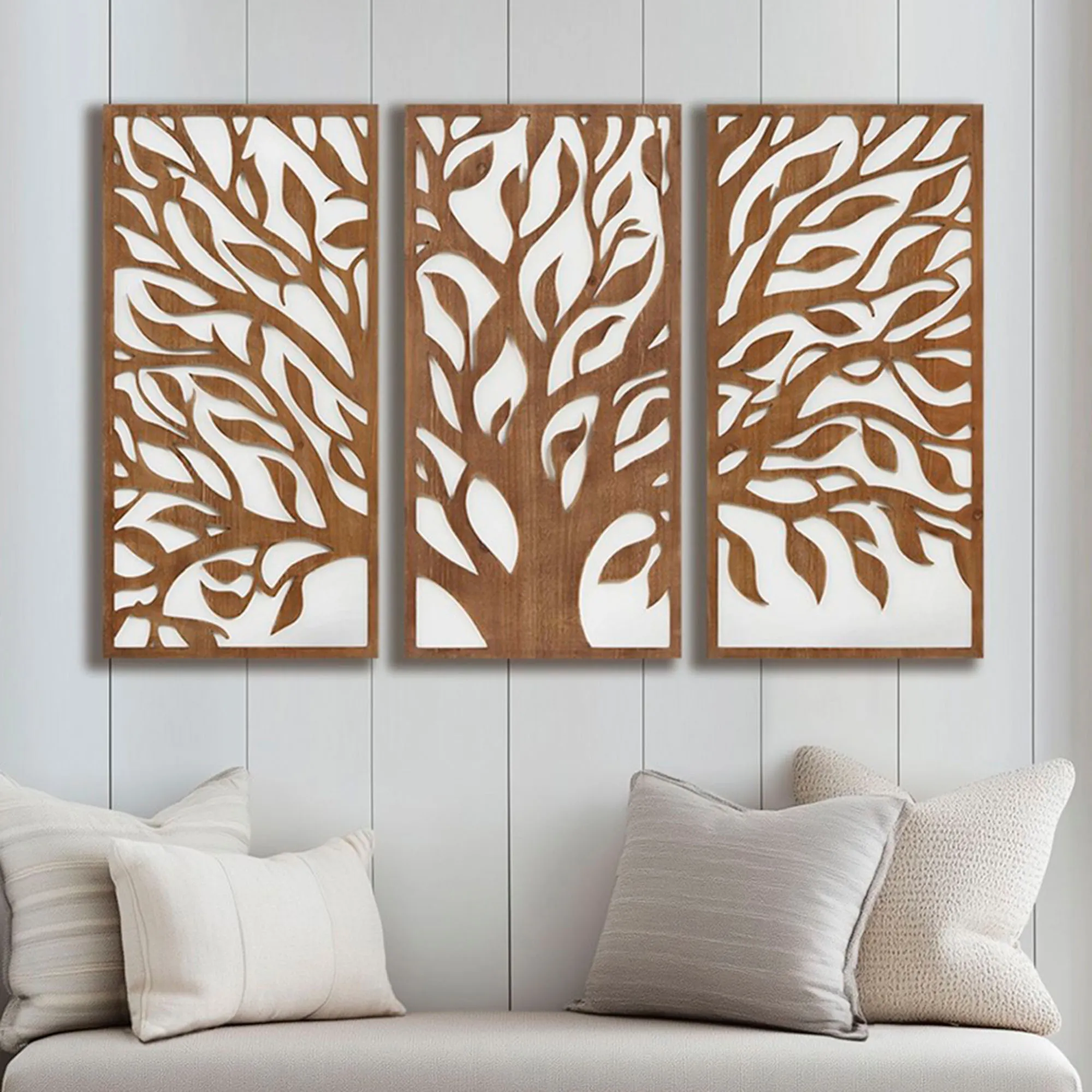 Tree of Life Triptych Wooden Wall Art Panel Decor Set