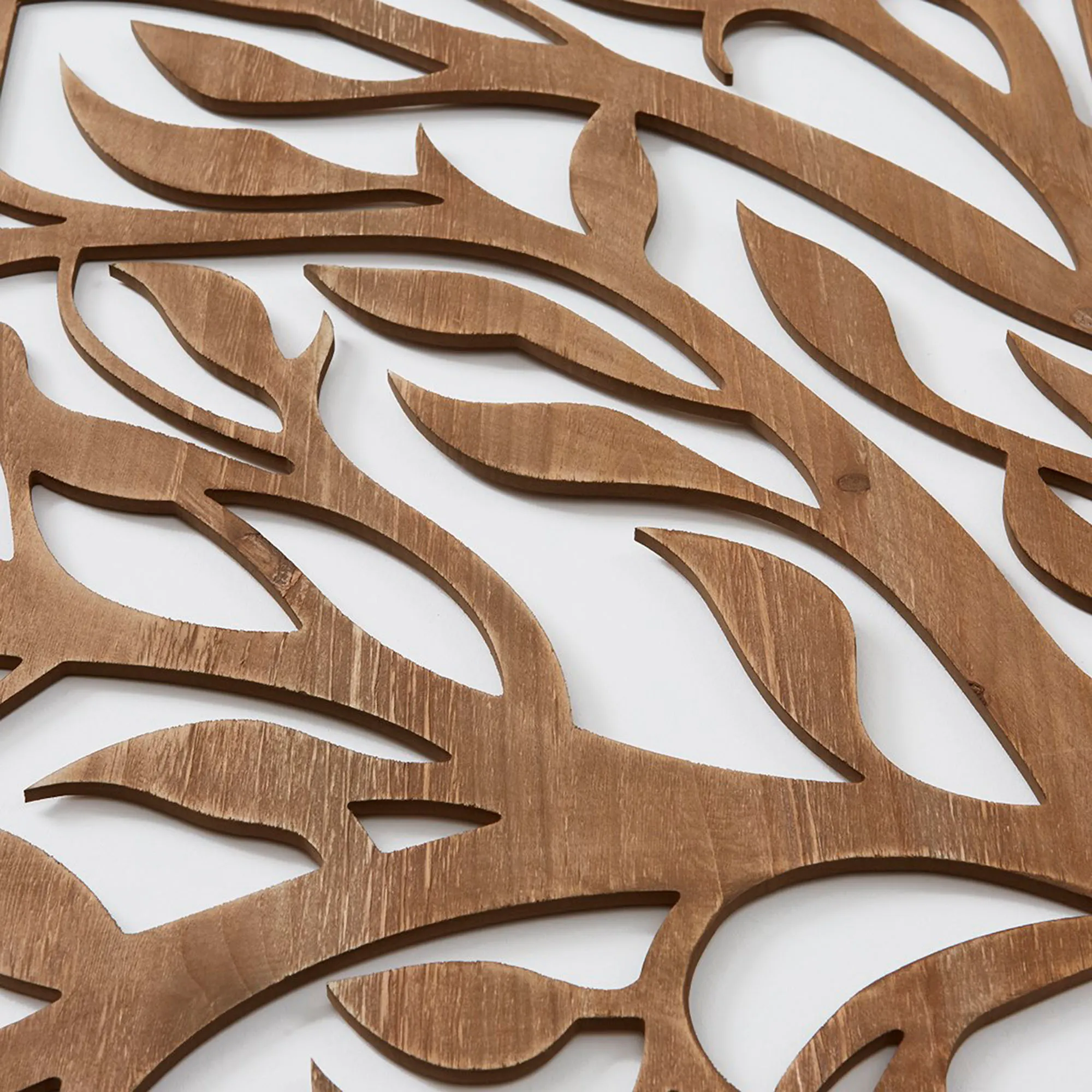 Nature's beauty fans out among us like the Tree of Life. This stunning wooden wall art set features a tree in a natural walnut wood tone on a contrasting white background. This dimensional wall panel set transforms any space with elegance. Each section measures 16"Wx1"Dx32"H.