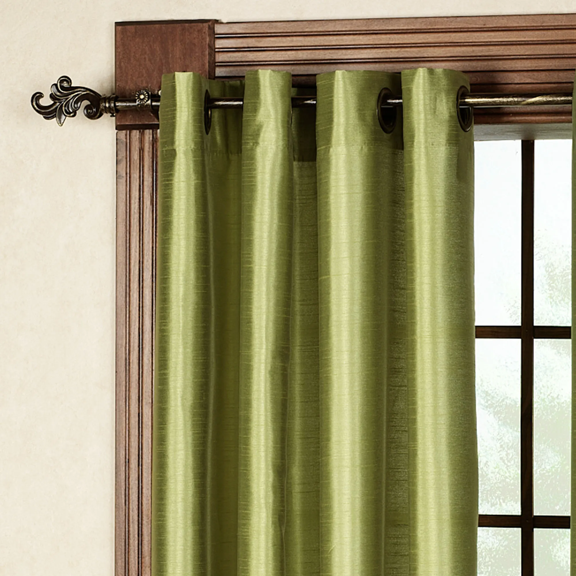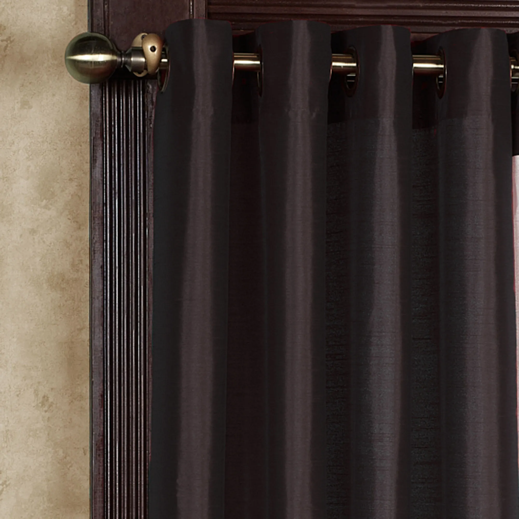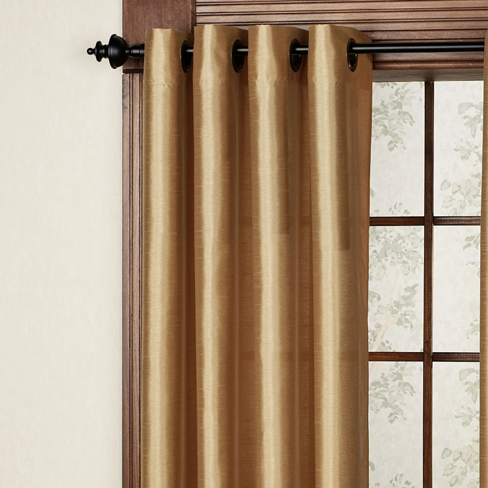 The Tribeca Tailored Grommet Curtain Panel will give your room a stunning new look. Curtain panel is polyester faux silk and has 1.5" dia. metal grommets with an antique bronze finish. Panels are sold individually; each is 56"W. Machine washable. Imported.