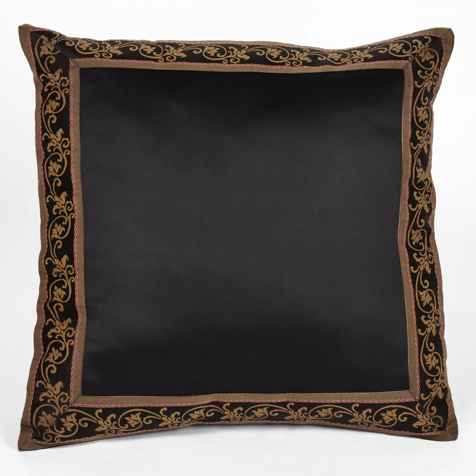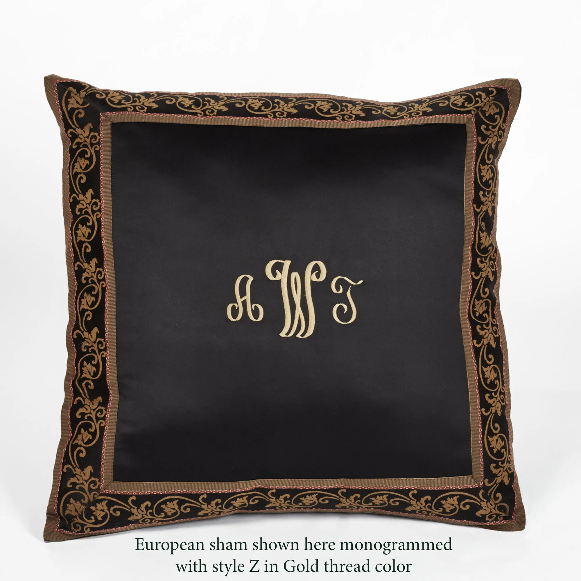 • Black European sham has a gold scroll border