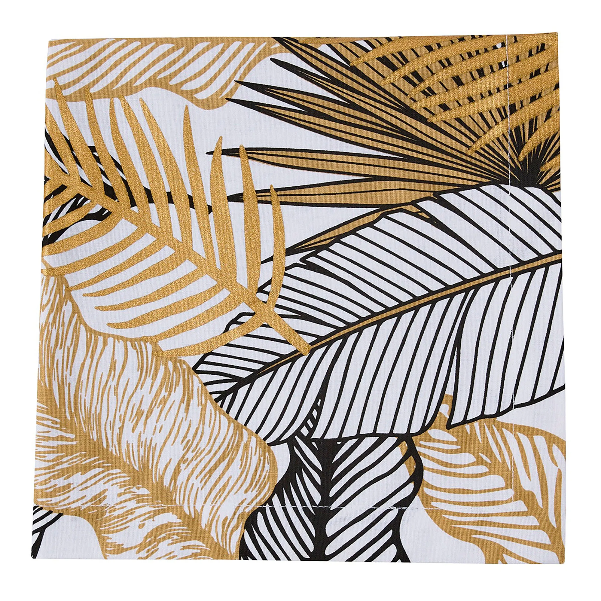 Tropical Essence Black and Gold Fern and Palm Leaf Cotton Table Linens