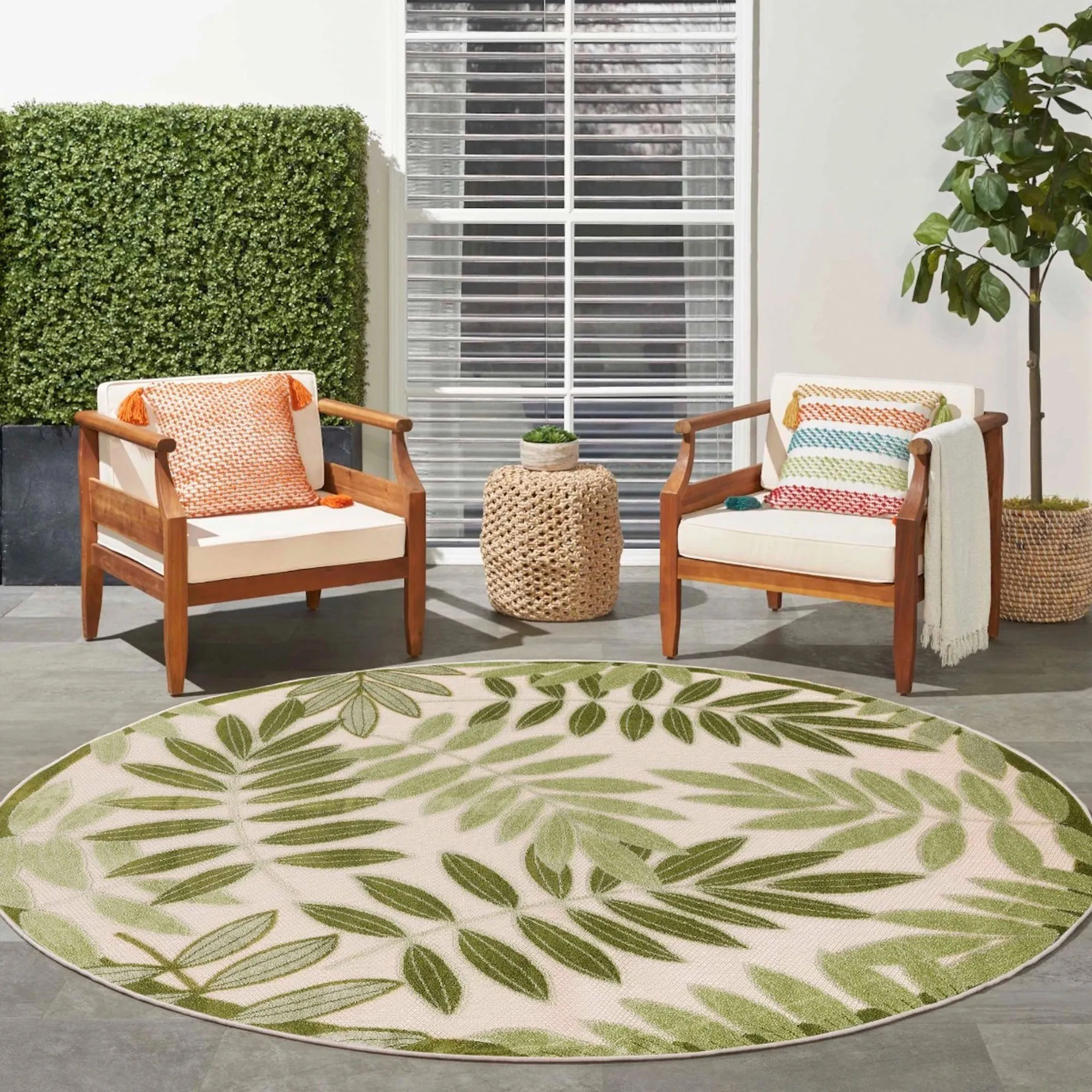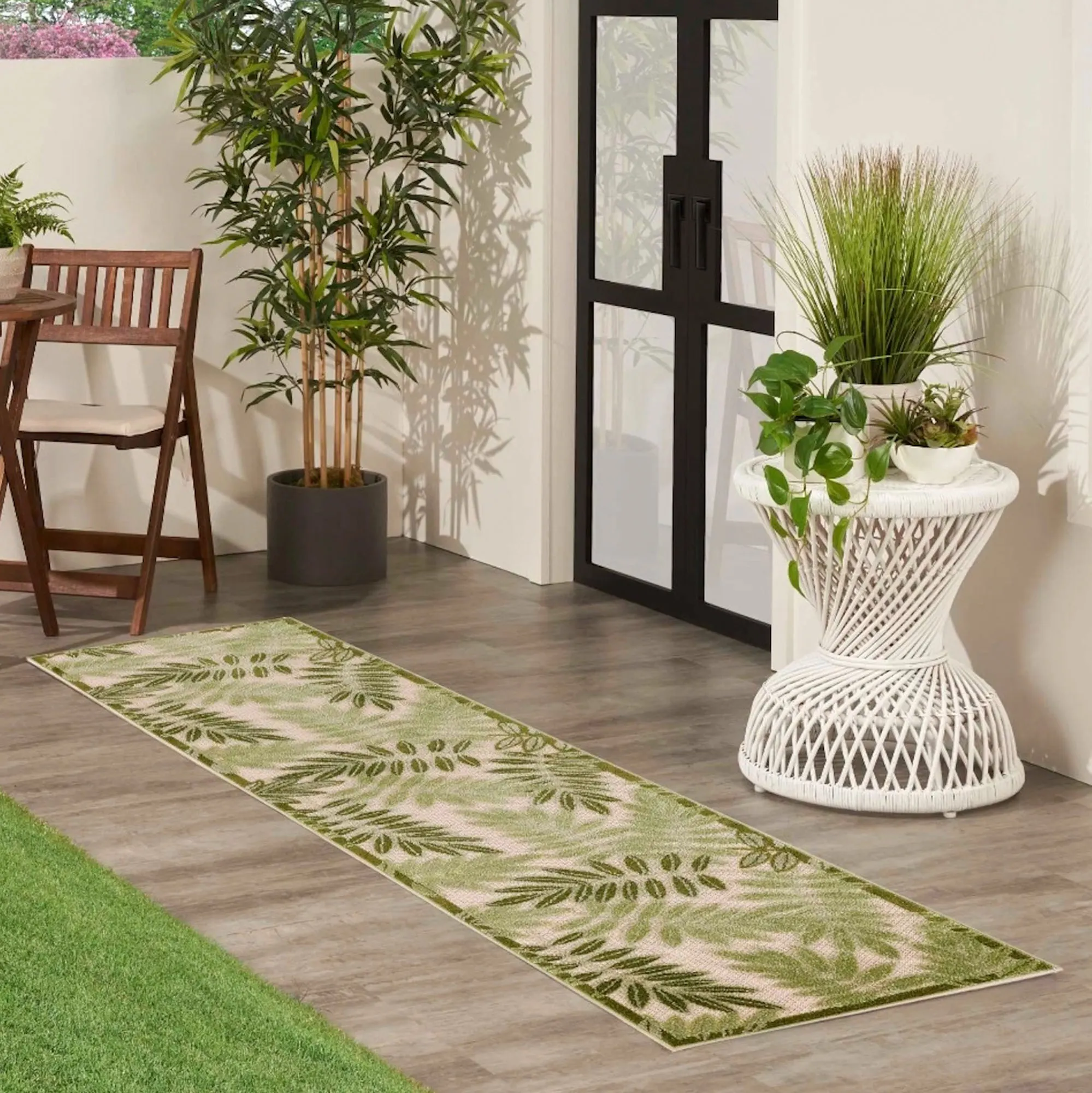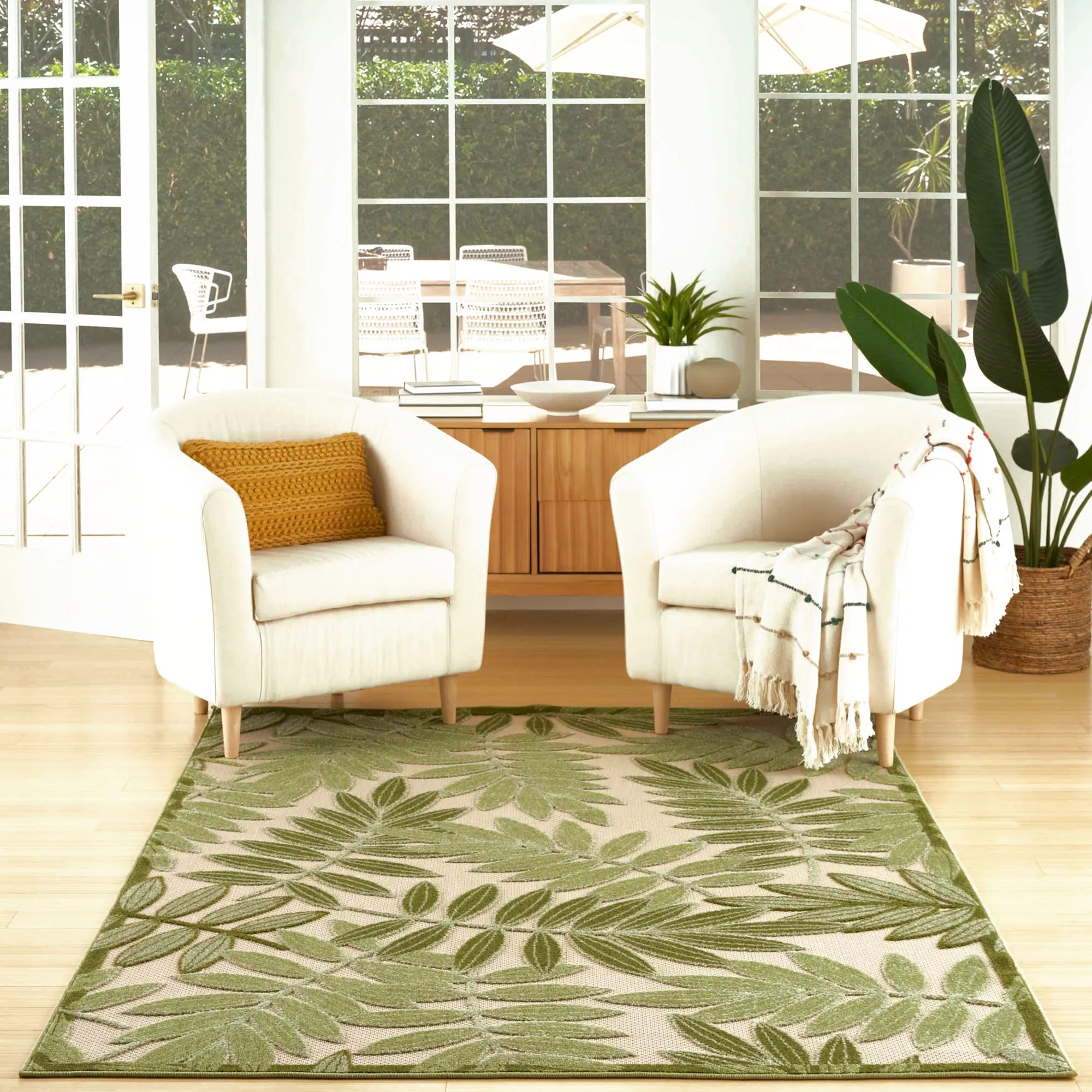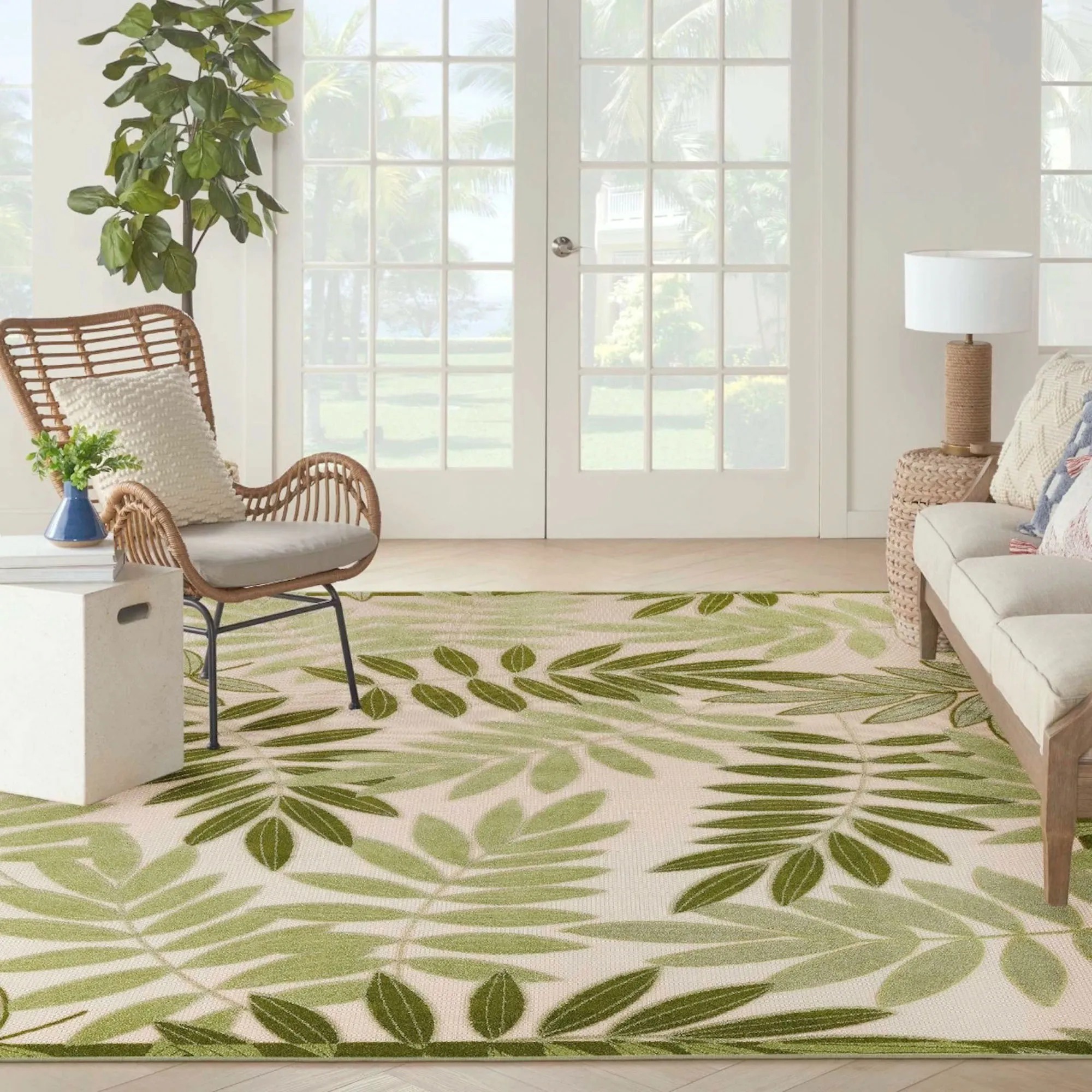 Tropical Foliage Stain Resistant Green Palm Frond Indoor Outdoor Rugs