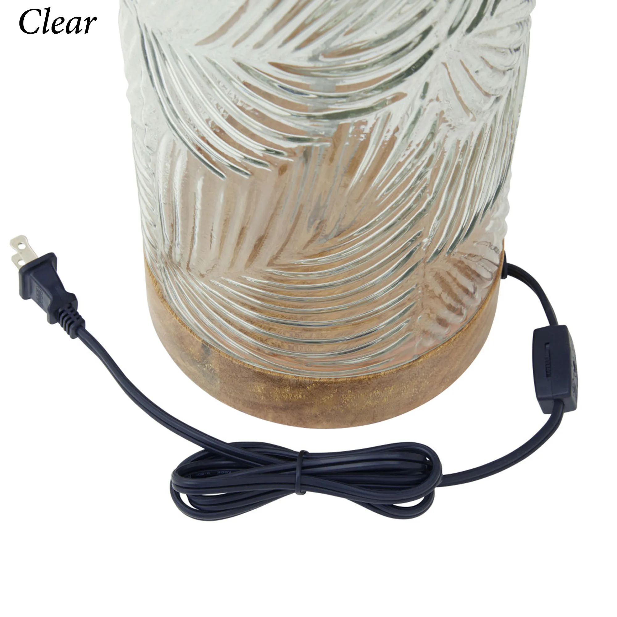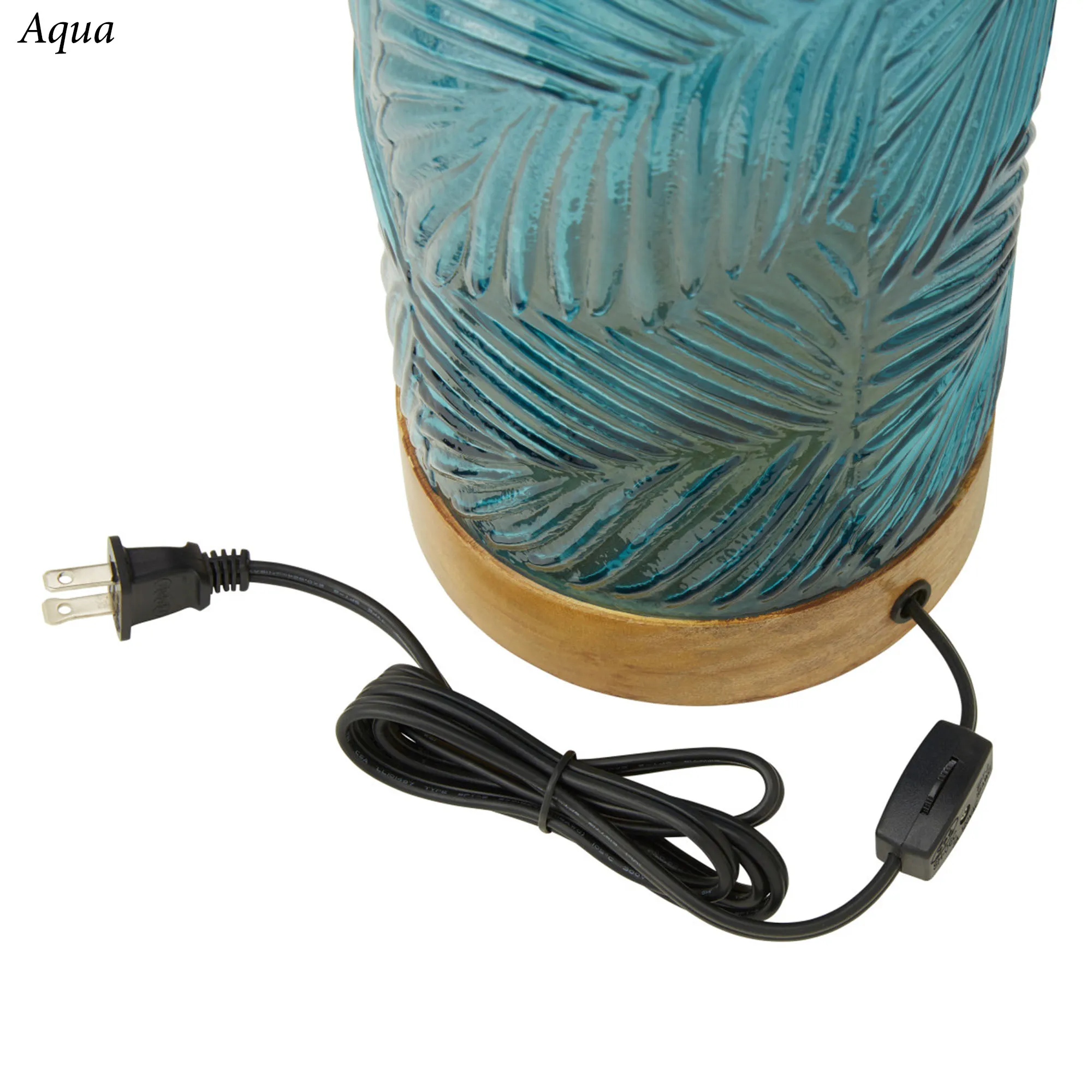 Tropical Impressions Mango Wood and Glass Palm Leaf Table Lamp